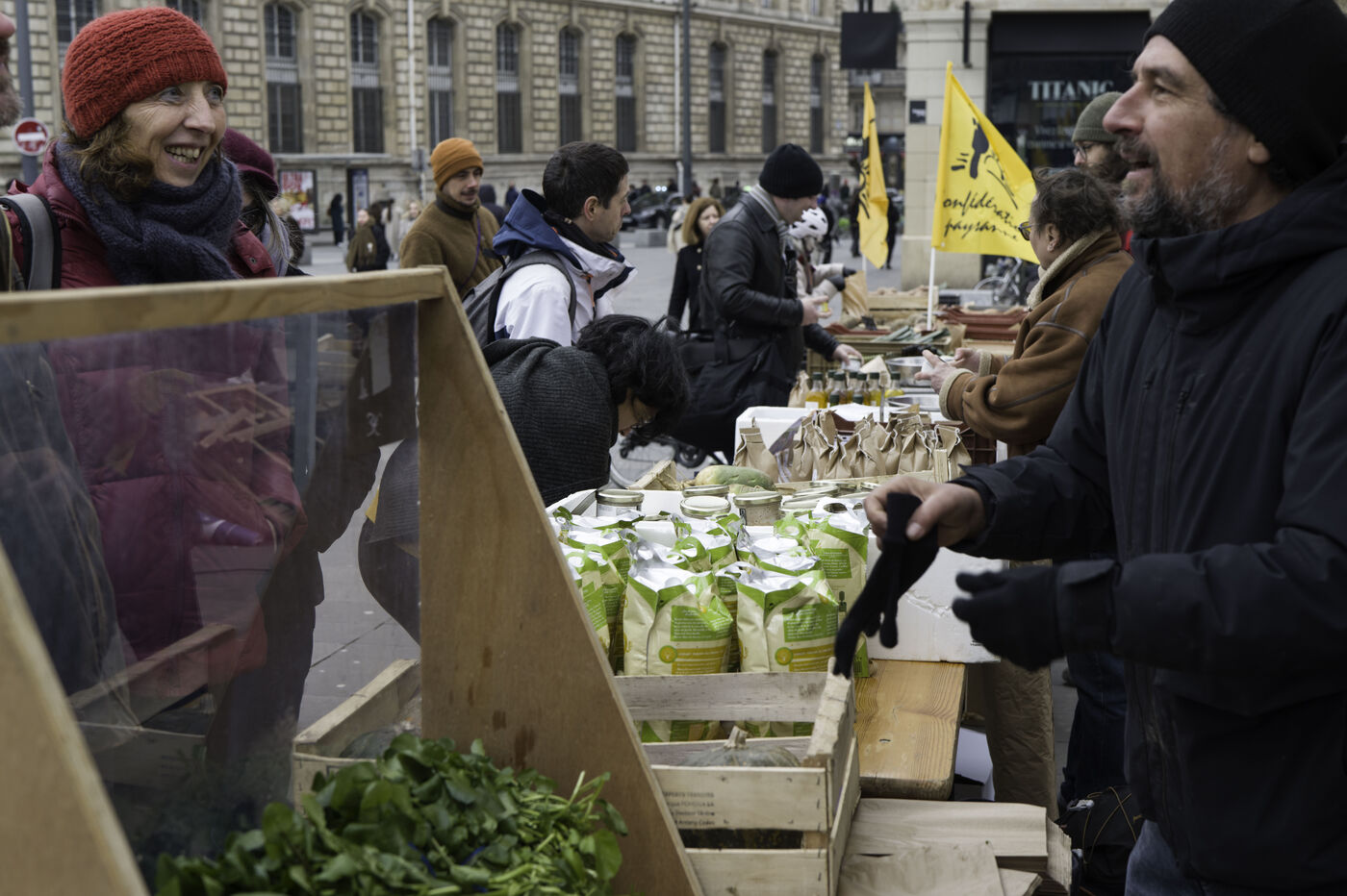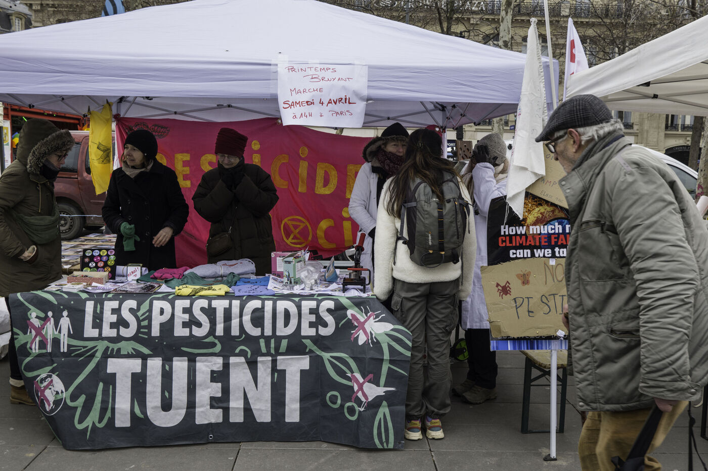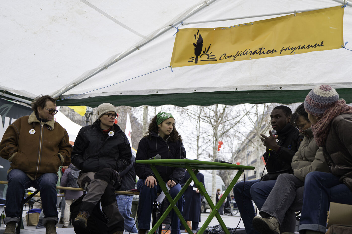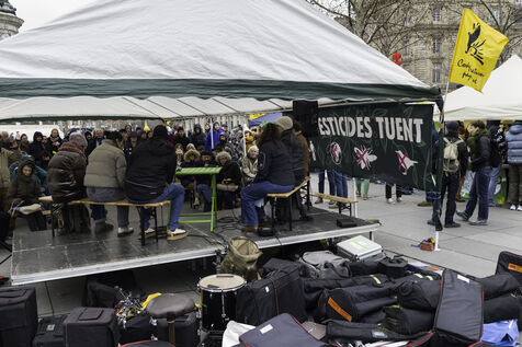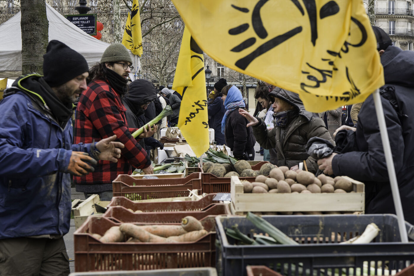 Une fête paysanne est organisée par la Confédération paysanne Ile de France sur la place de la République pour débattre des enjeux agricoles et alimentaires liées à la transition écologique.