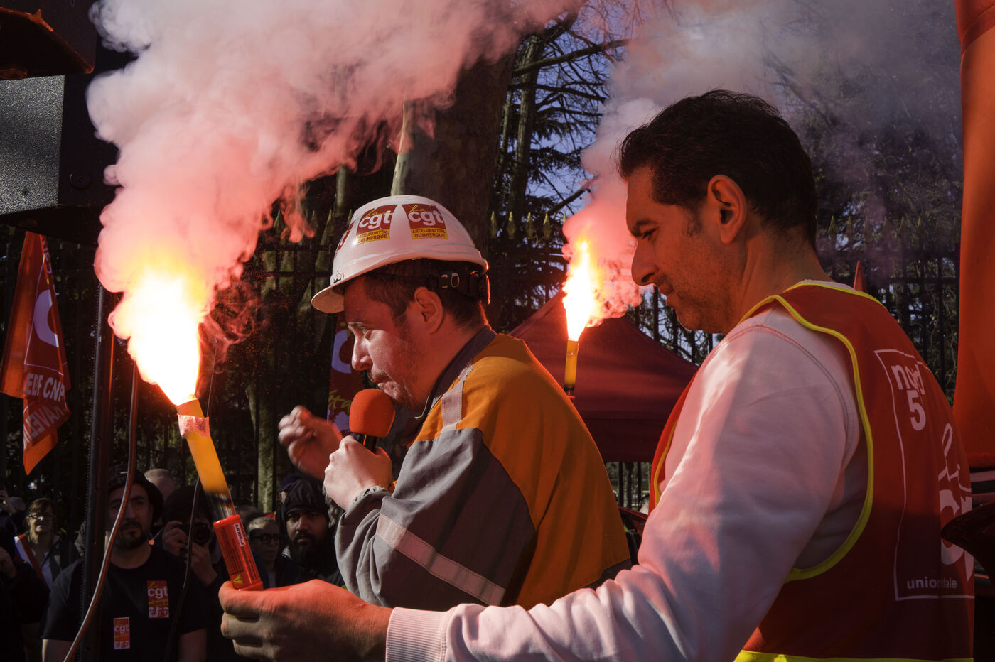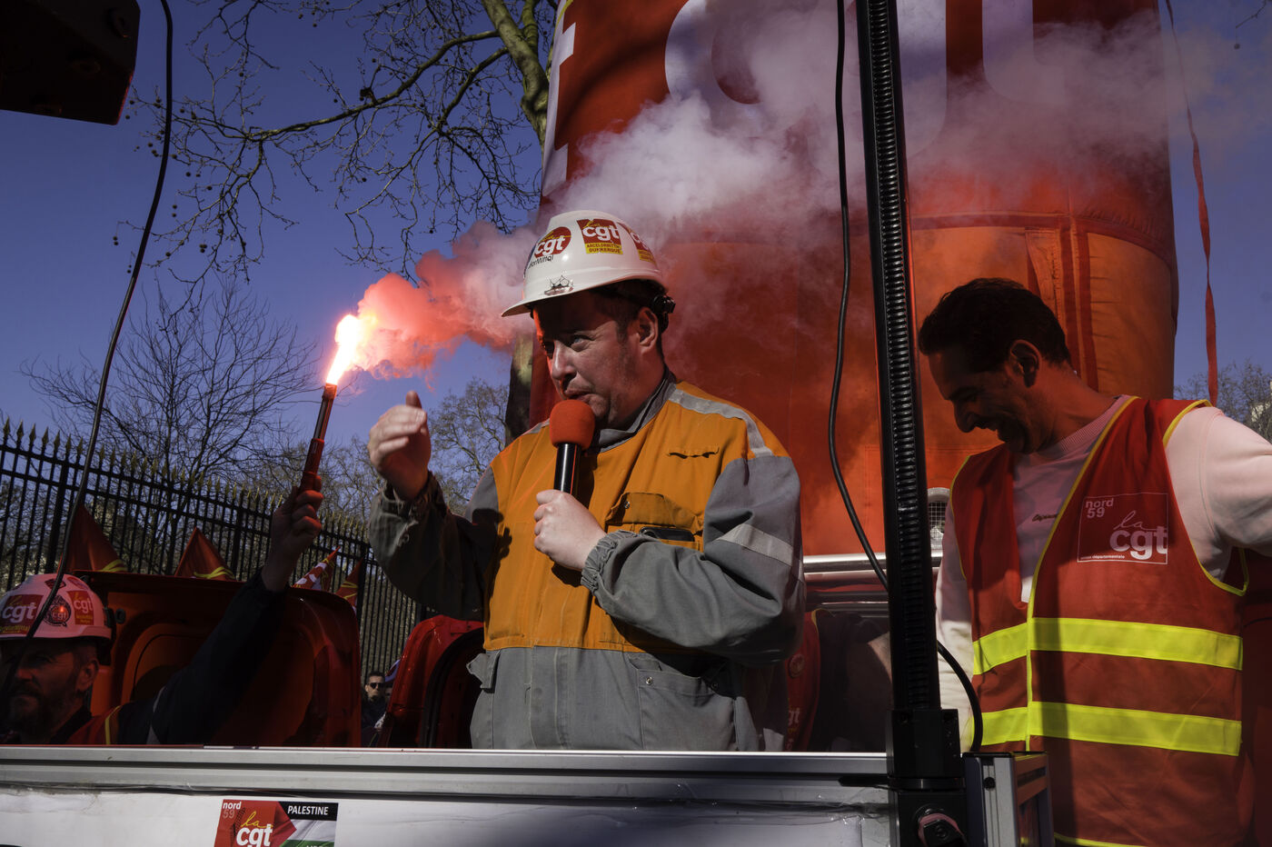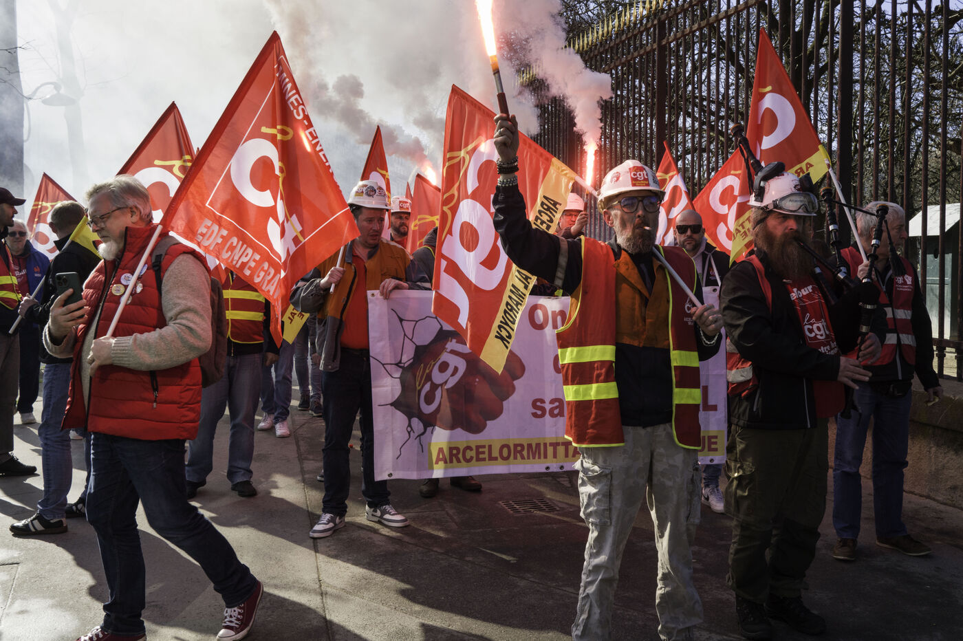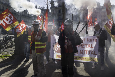 Les sidérurgistes se sont rassemblés devant le Sénat pour maintenir la pression pour la nationalisation d’Arcelor Mittal.