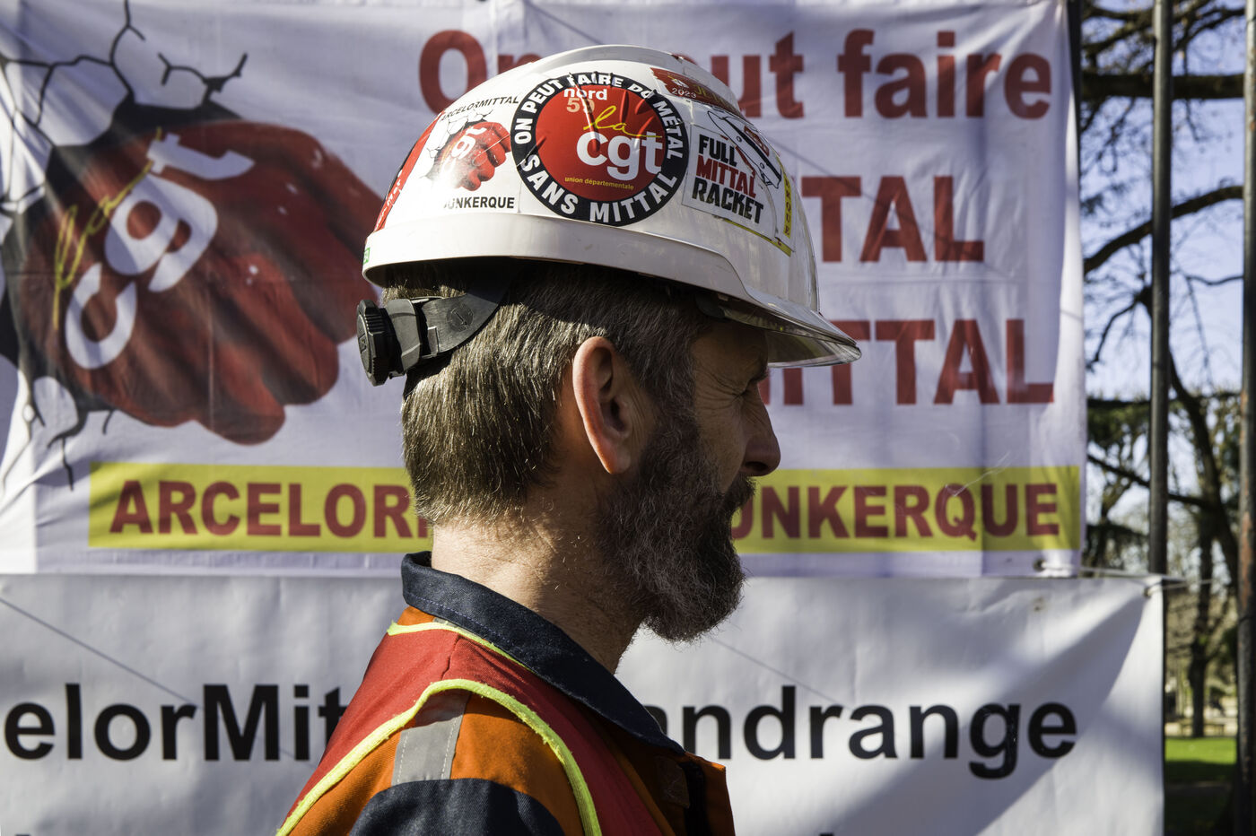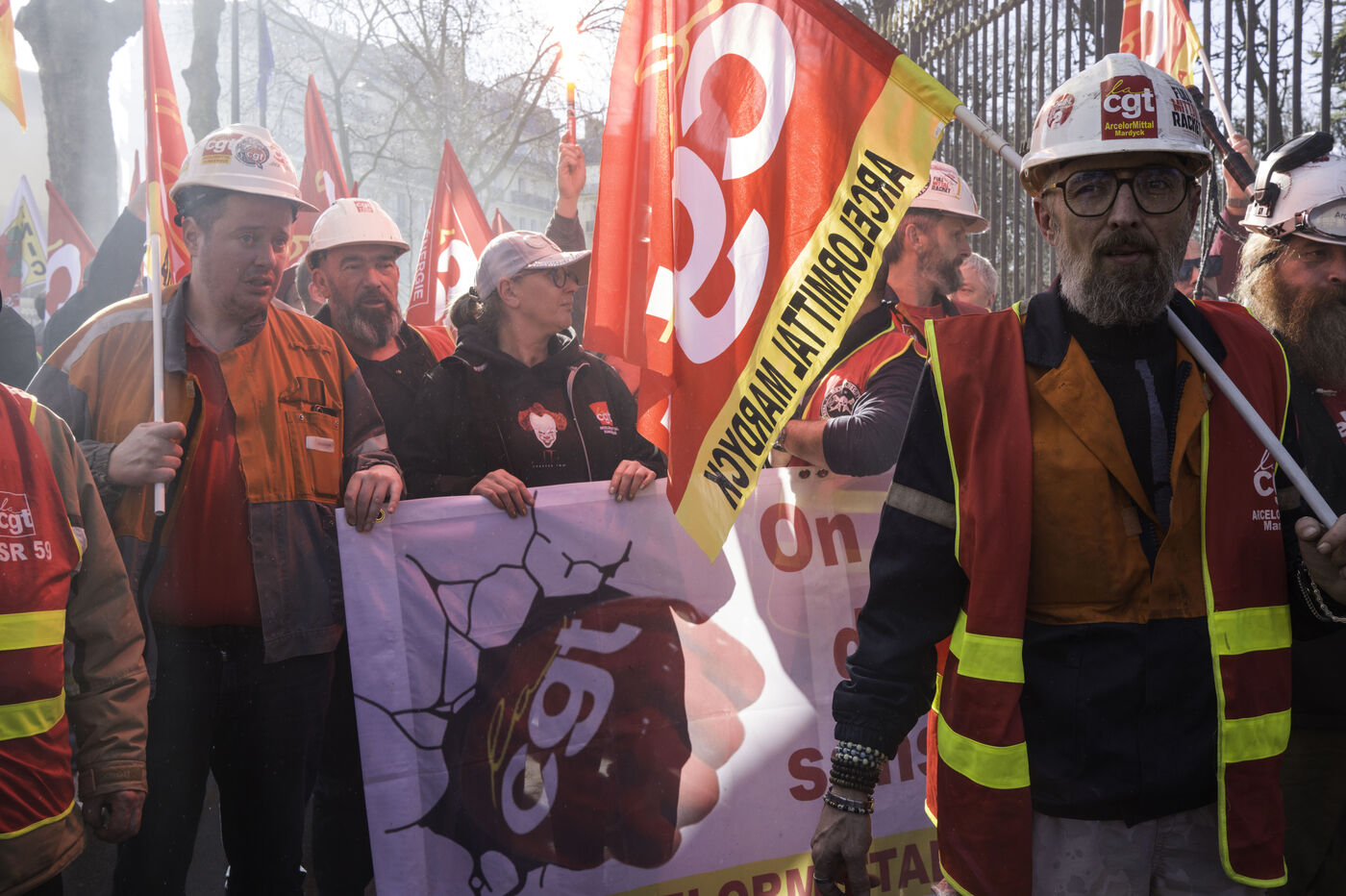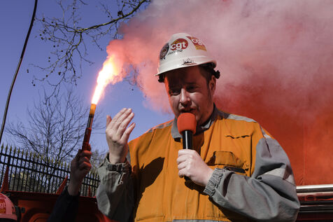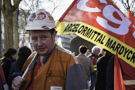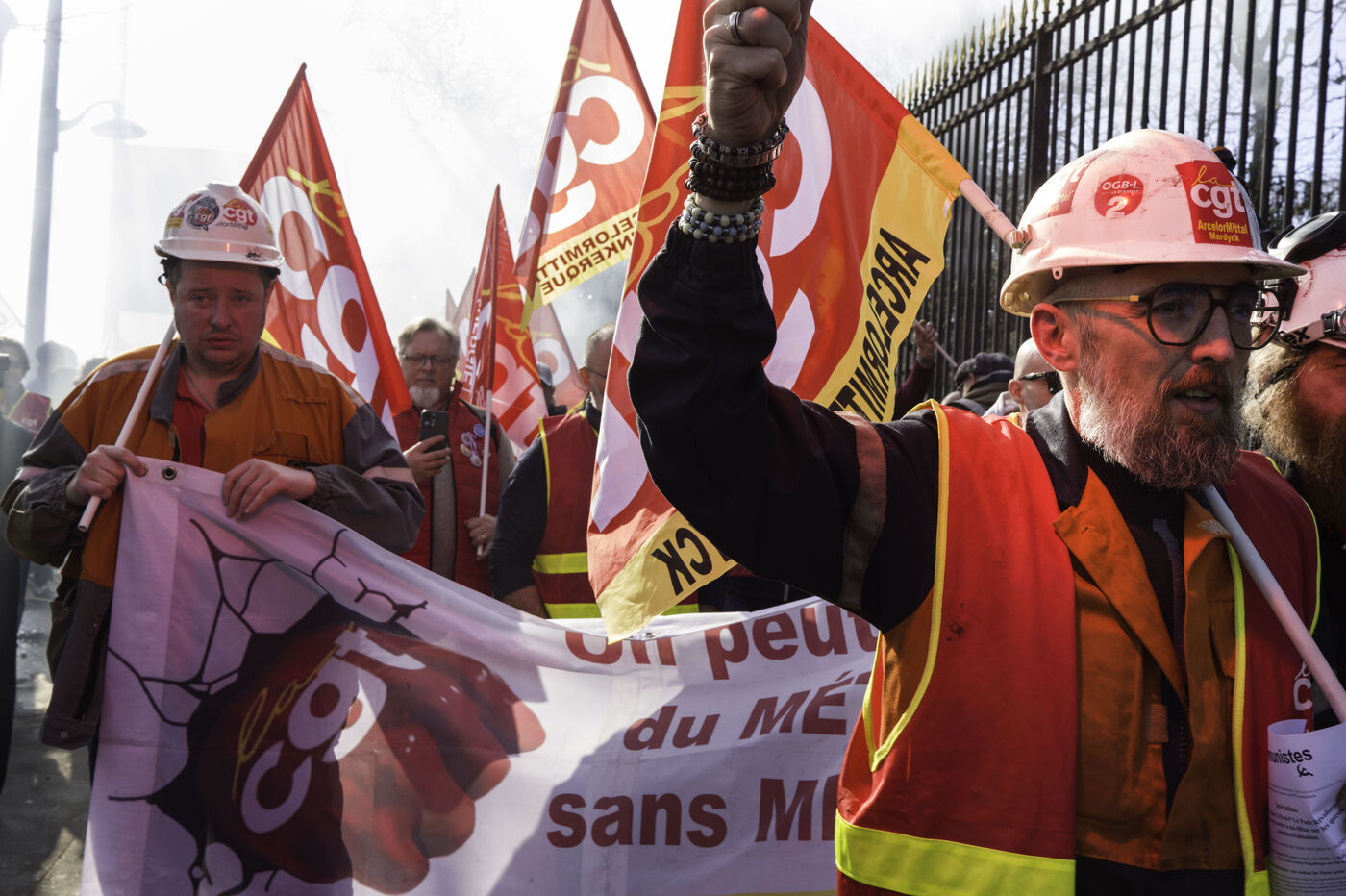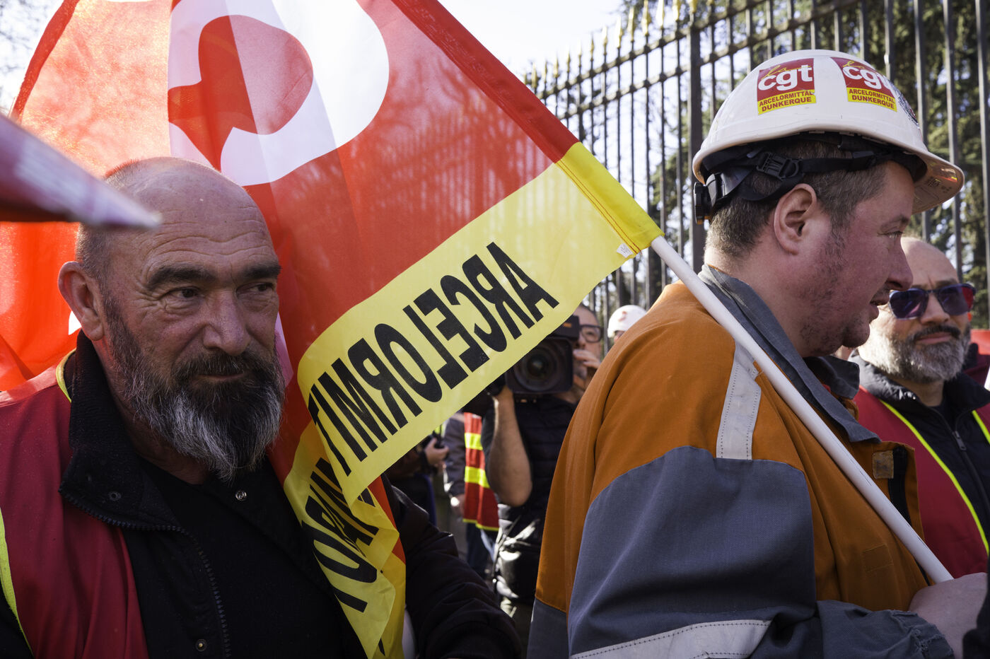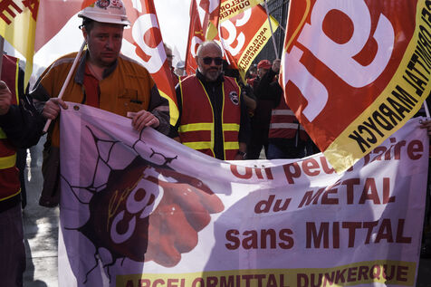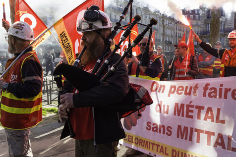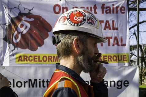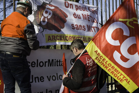 Steelworkers gathered in front of the Senate to keep up the pressure for the nationalisation of Arcelor Mittal.