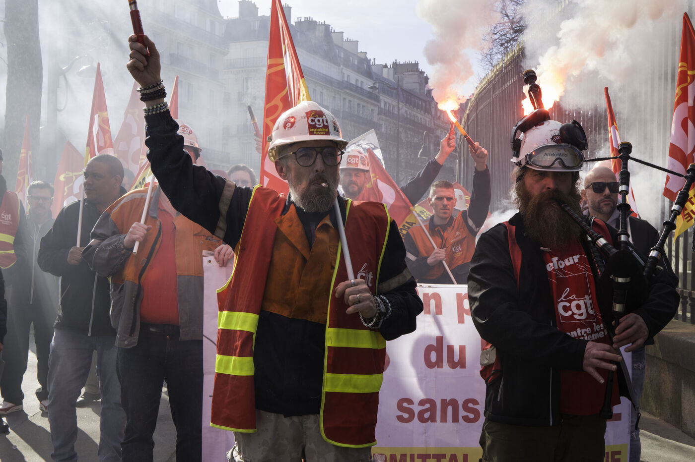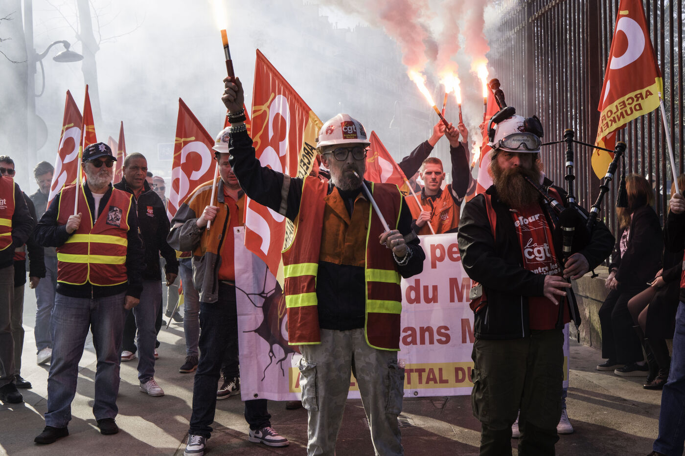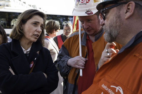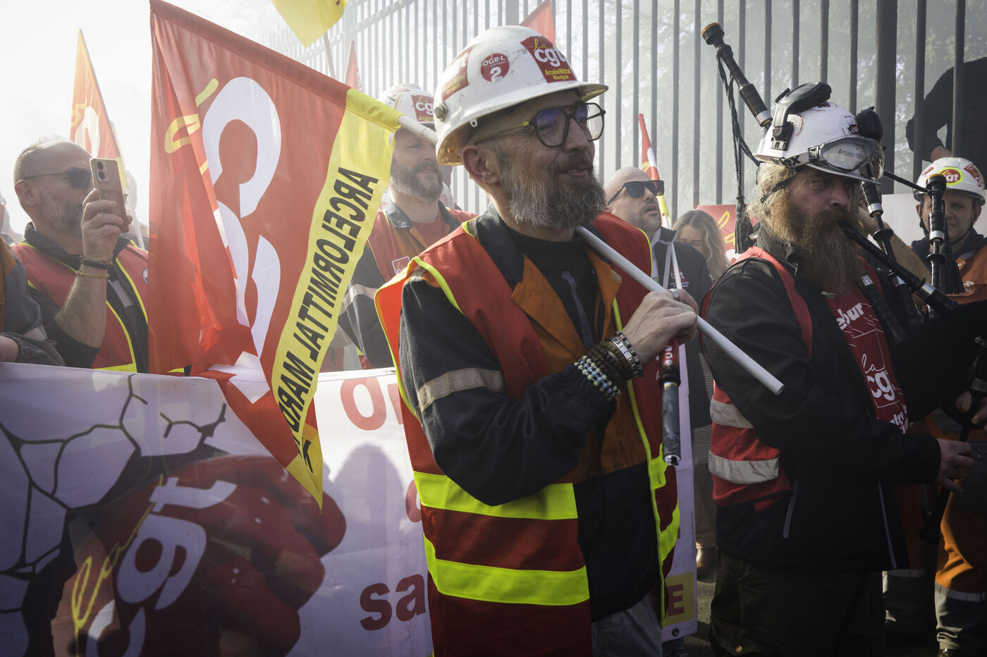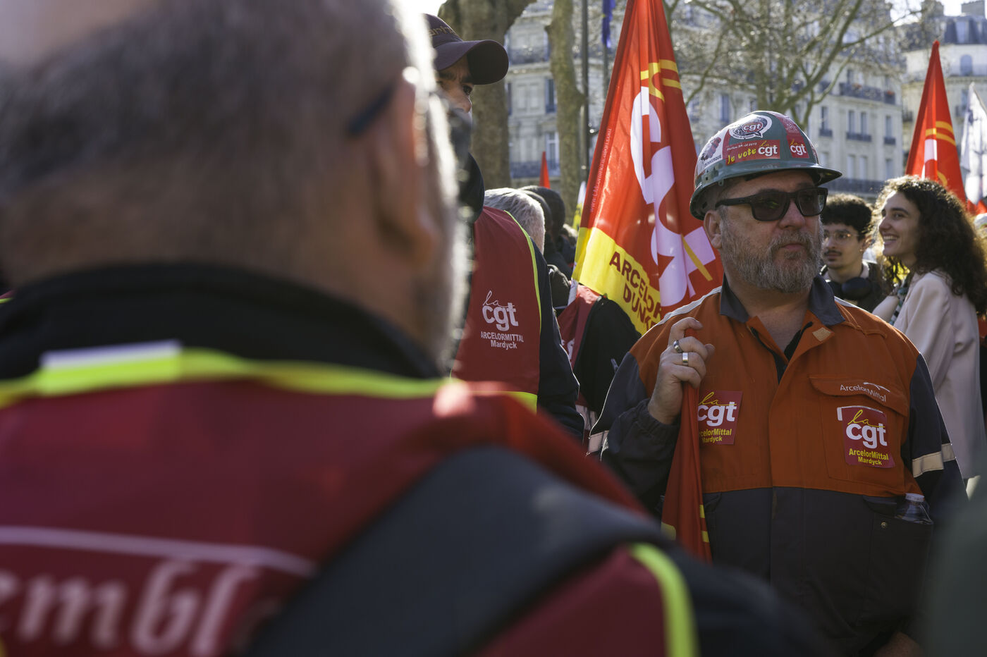 Steelworkers gathered in front of the Senate to keep up the pressure for the nationalisation of Arcelor Mittal.