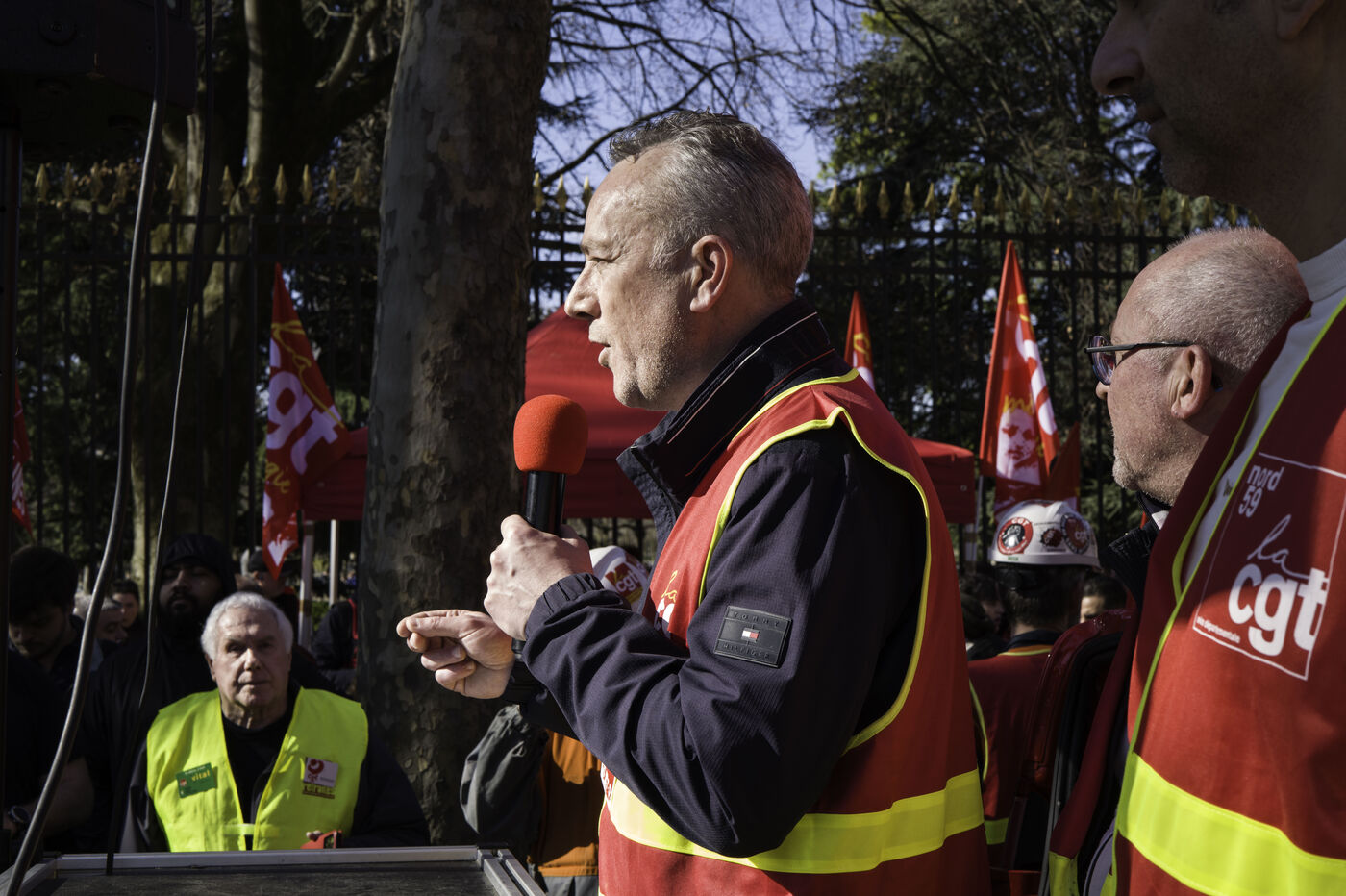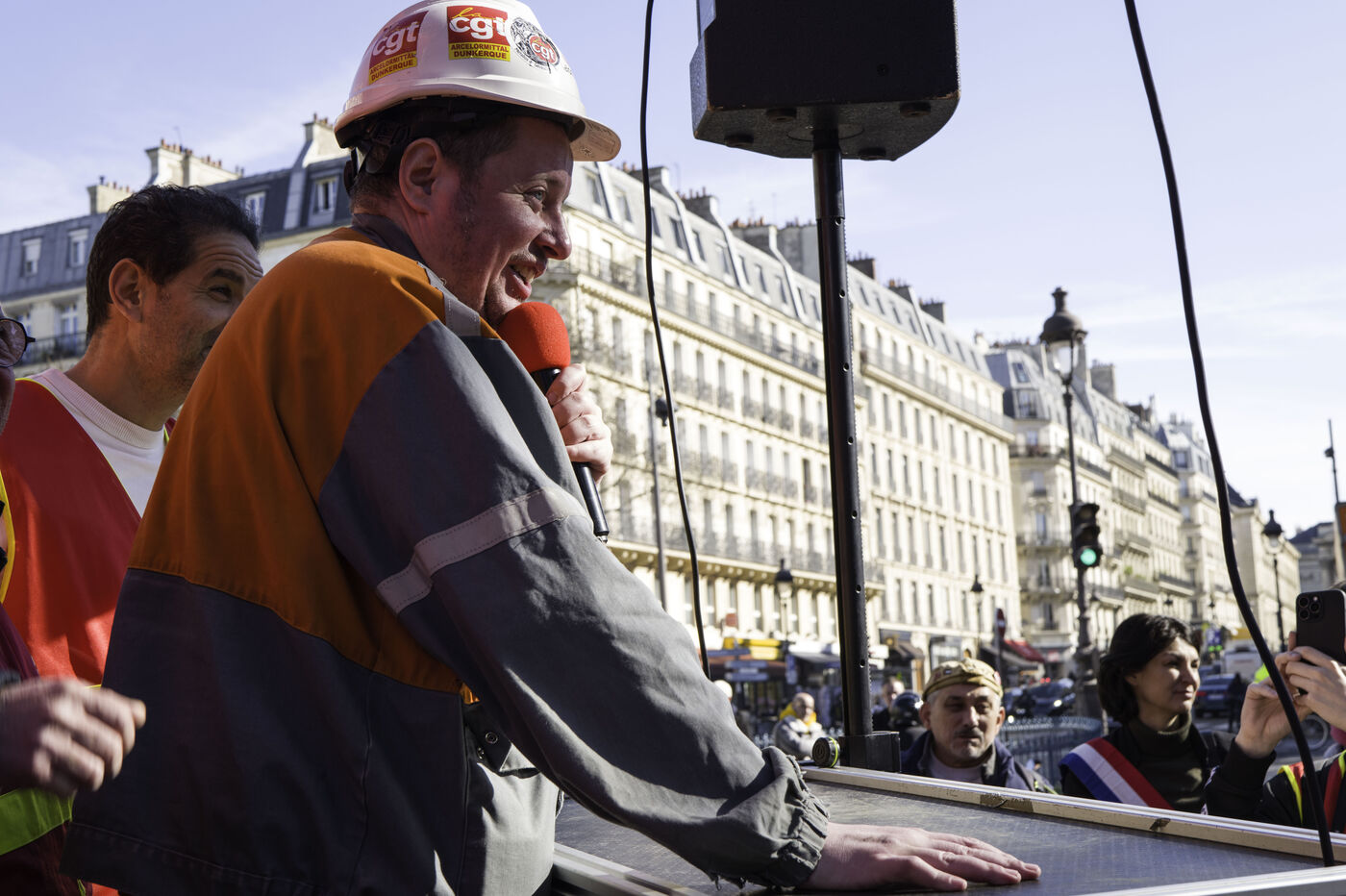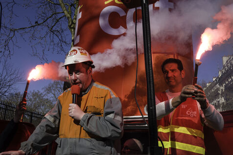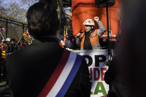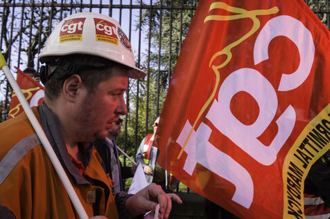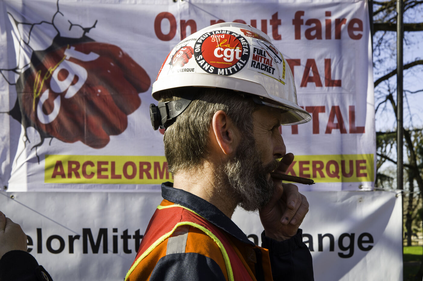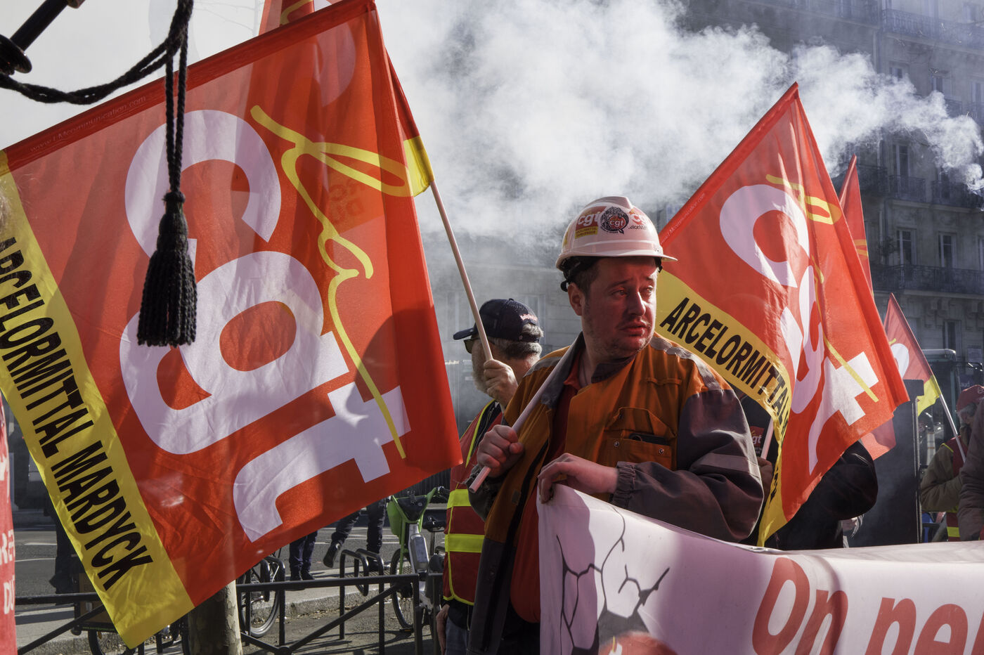 Steelworkers gathered in front of the Senate to keep up the pressure for the nationalisation of Arcelor Mittal.