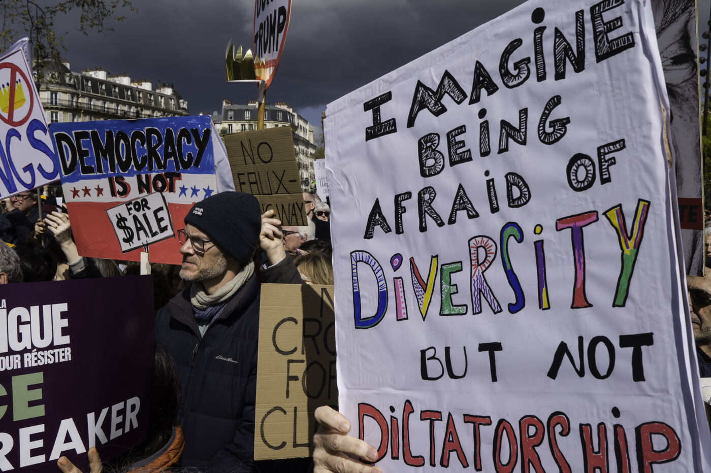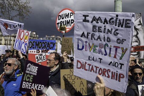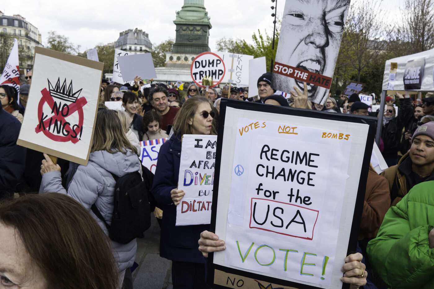 In Place de la Bastille, the collective ‘La Digue’ is organising a demonstration against the far right and the Trump administration’s policies, in solidarity with the ‘No Kings’ protests taking place in the United States.