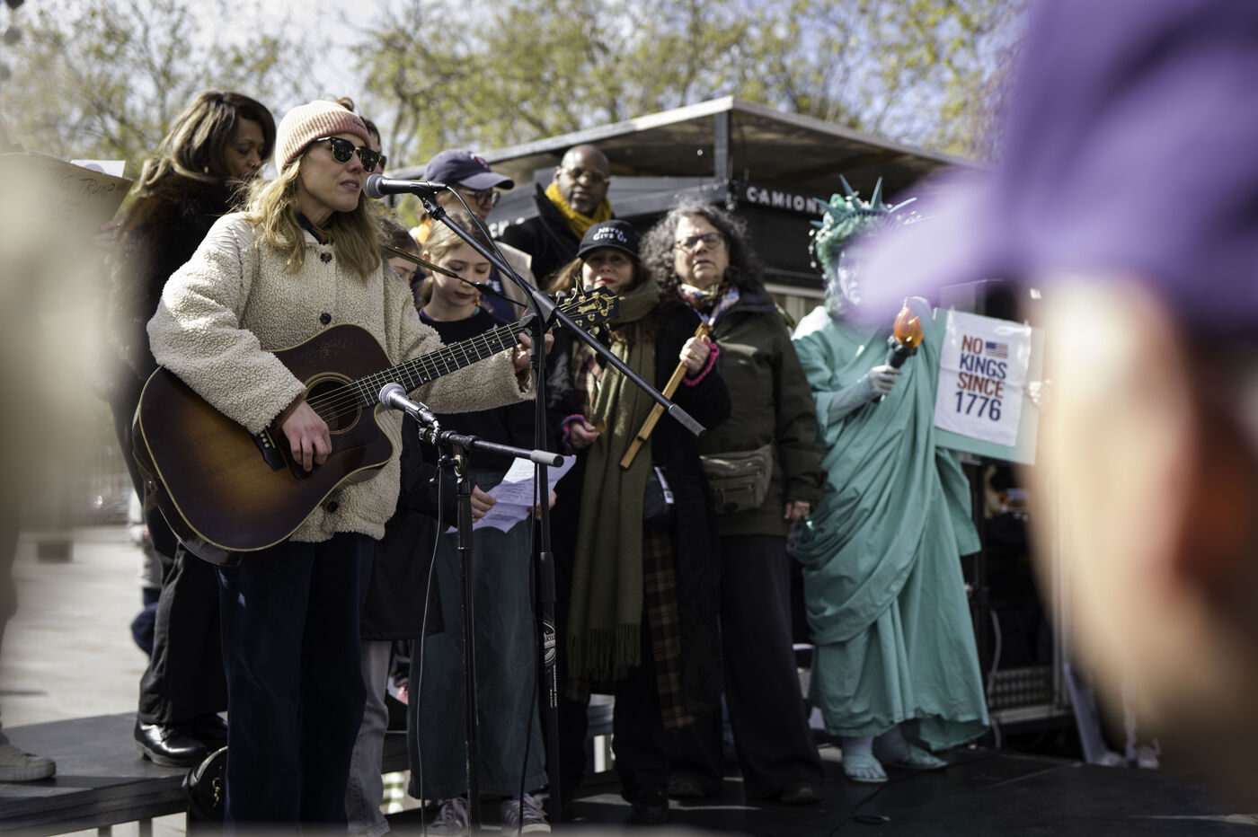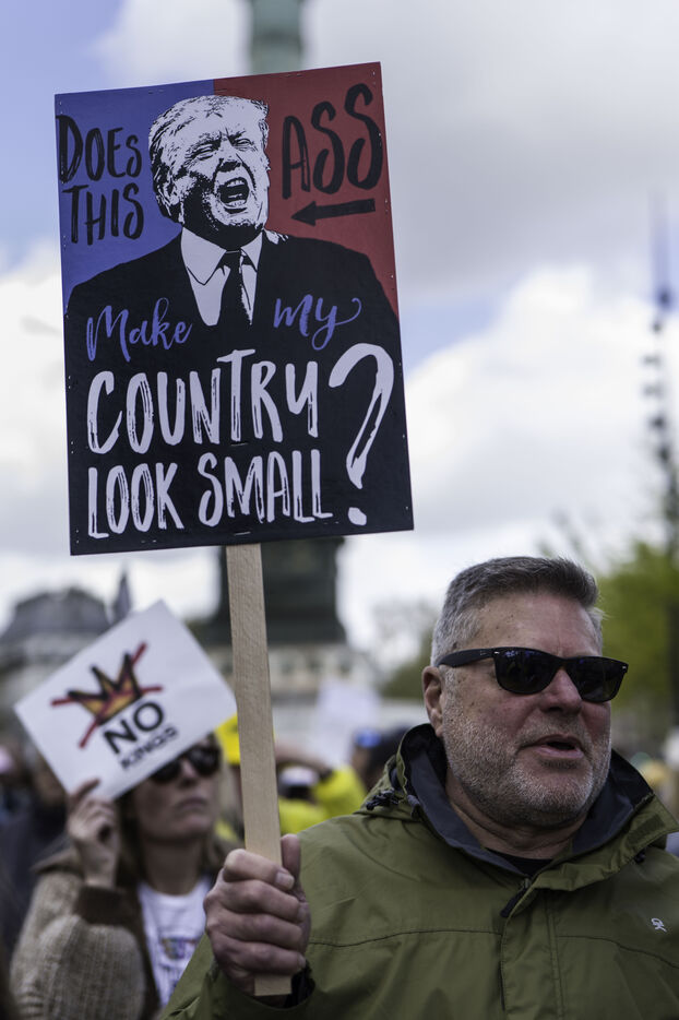 Sur la place de la Bastille, Le collectif «La Digue» organise un rassemblement contre l’extrême droite et les politiques du gouvernement Trump en liaison avec les protestations «No Kings» qui ont lieu aux Etats-Unis.