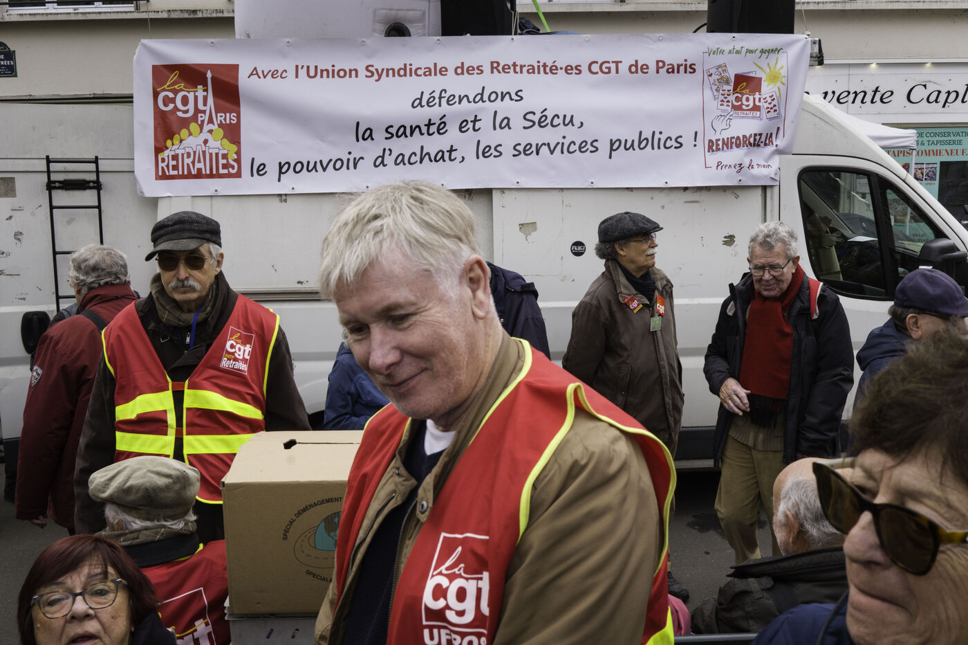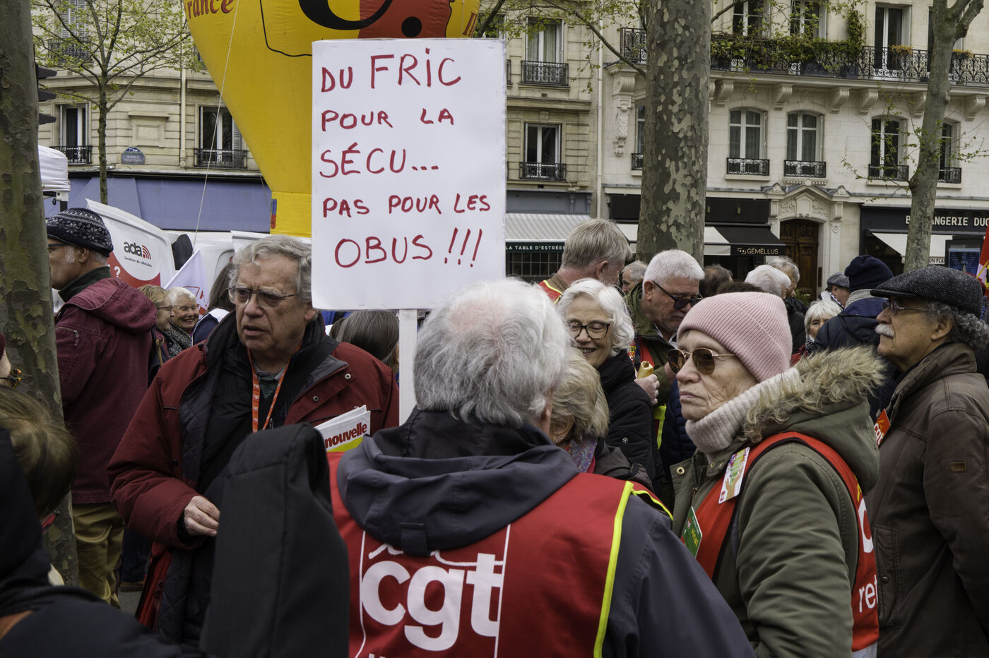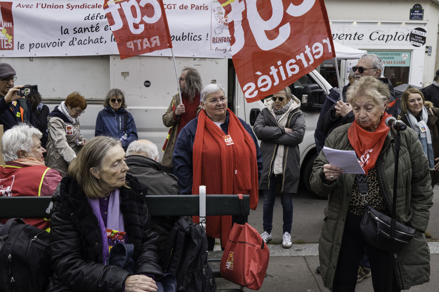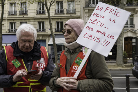 Pensioners’ organisations (FSU, FGR-FP, CGT, CFE-CGC, Solidaires, LSR, Ensemble et solidaires) are gathering outside the Ministry of Health to defend access to healthcare and higher pensions.