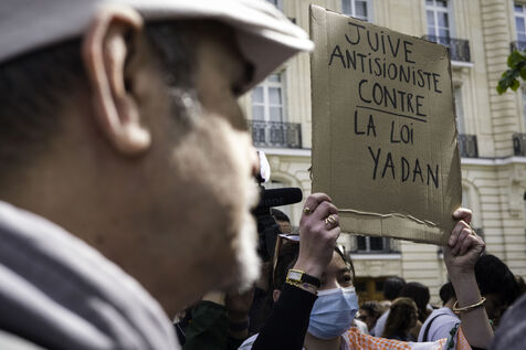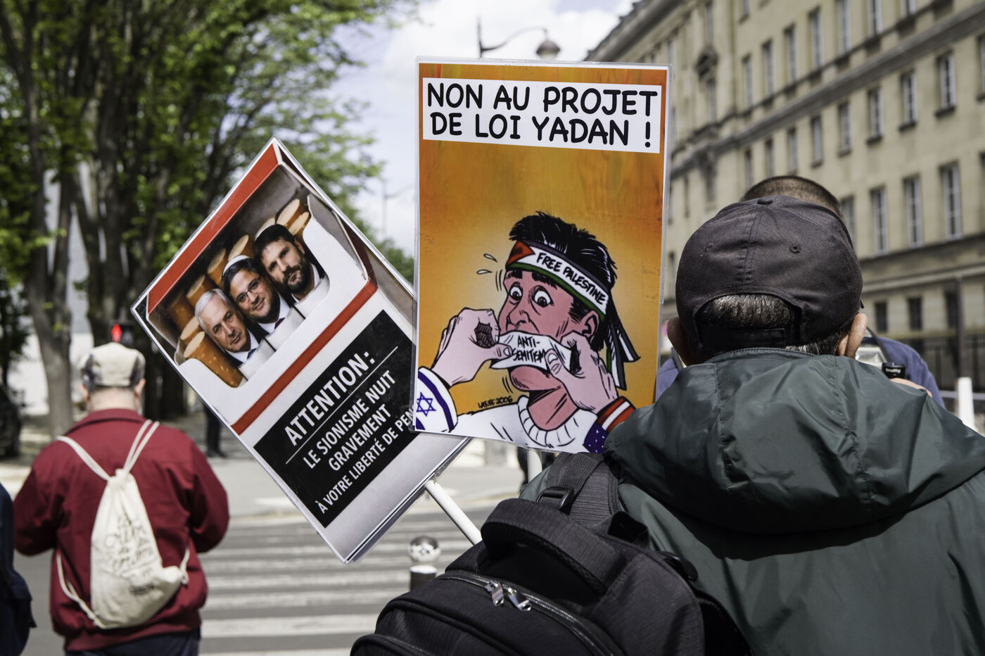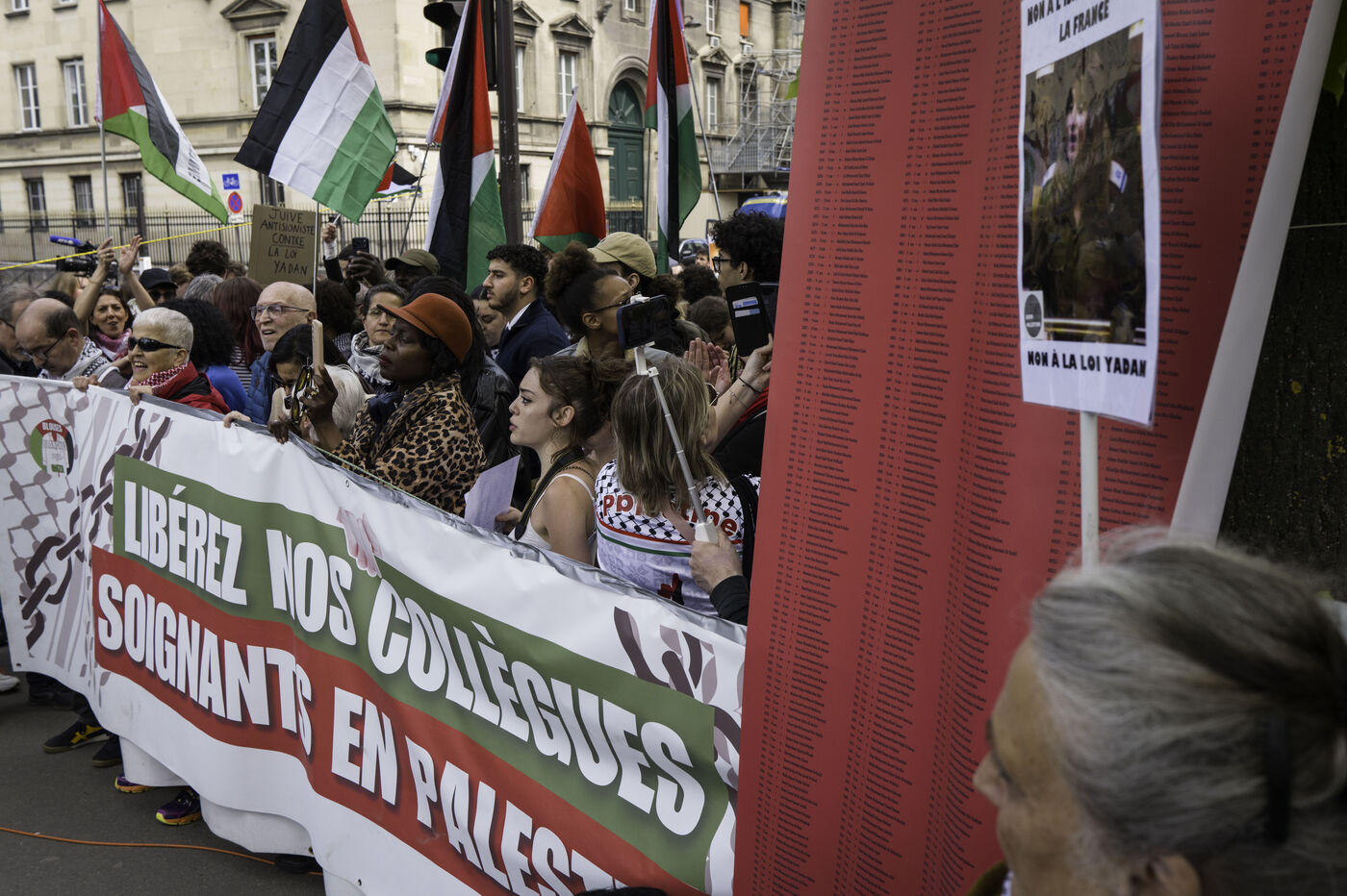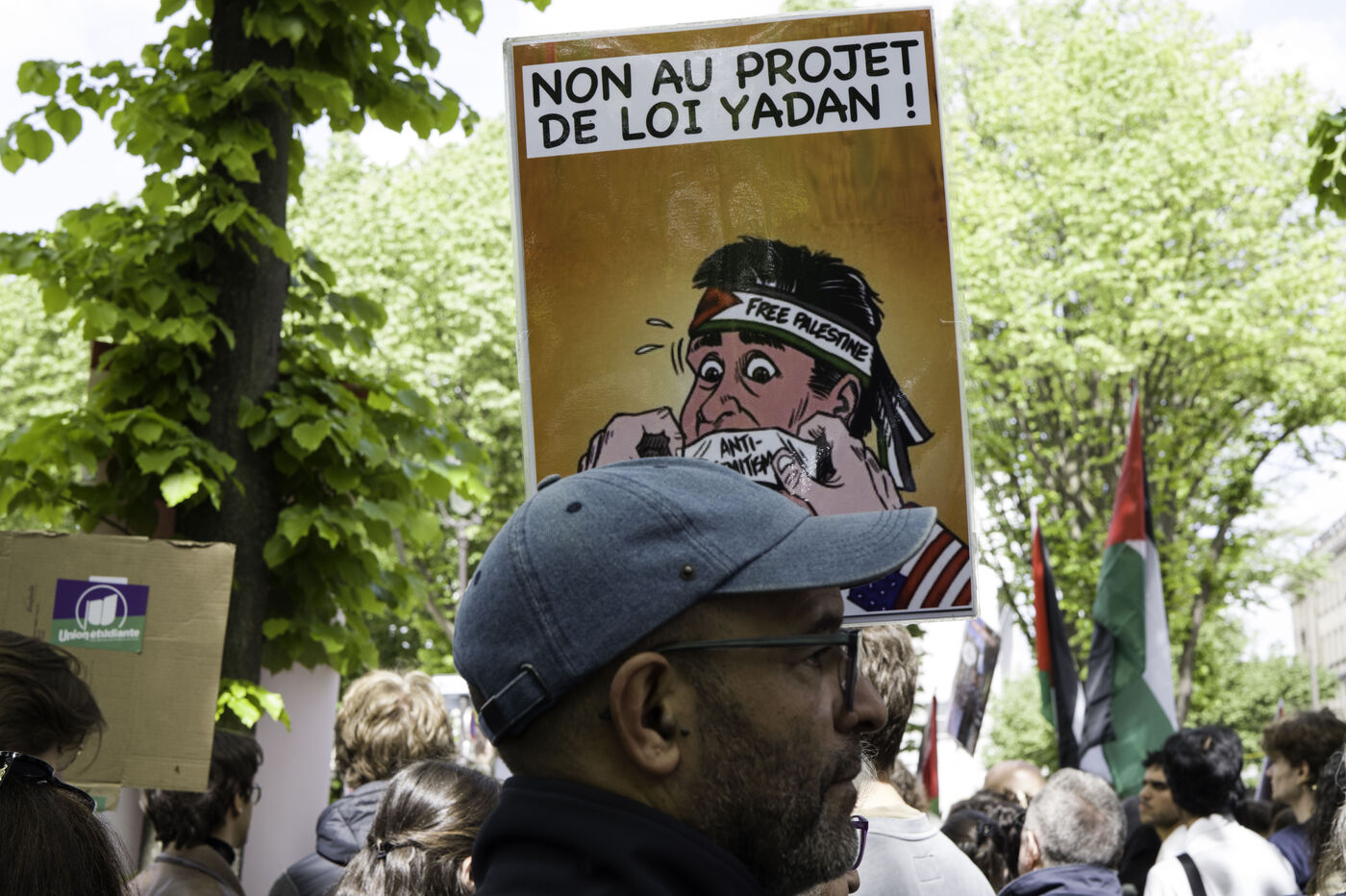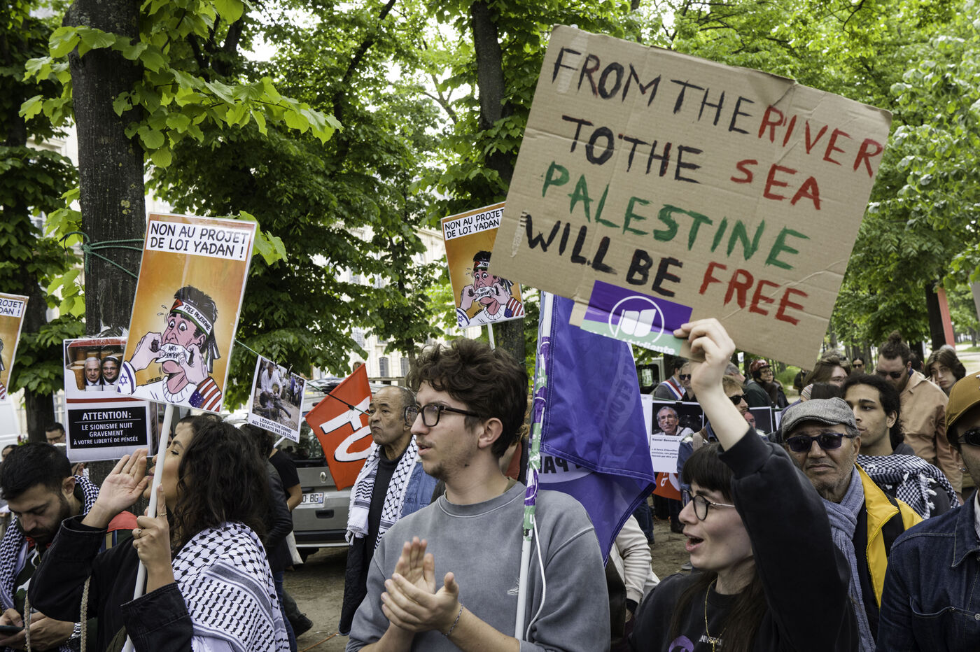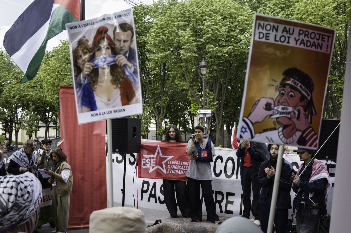 As the Yadan Bill reaches the National Assembly, a rally has been called by various groups, trade unions, movements and political parties not far from the Assembly. Photograph by Eric Broncard/Hans Lucas