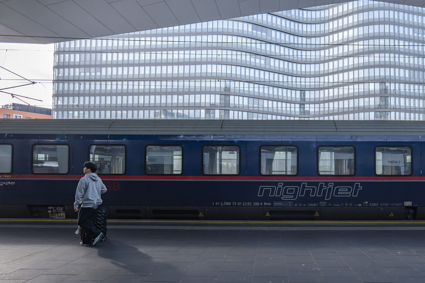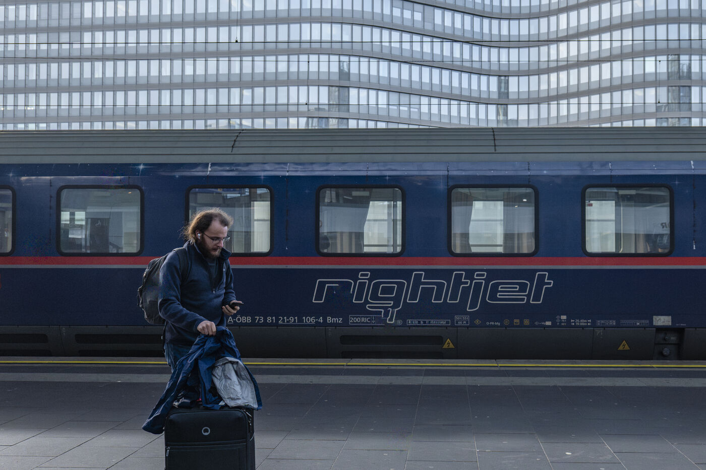 Illustrations de l'un des derniers voyages en train de nuit entre Paris gare de l'Est et Vienne Hauptbahnhof. En effet, depuis le 14 décembre 2025, les lignes de train de nuit Nightjet Paris–Berlin et Paris–Vienne, ouvertes respectivement en 2021 et 2023, sont fermées. Si la ligne Paris-Berlin va être relancée par la coopérative European Sleeper à partir du 26 mars 2026, le train de nuit pour rejoindre Paris à Vienne est définitivement arrêté. Une décision qui va à l'encontre des promesses écologiques tenues par le gouvernement pour la relance des trains de nuit.