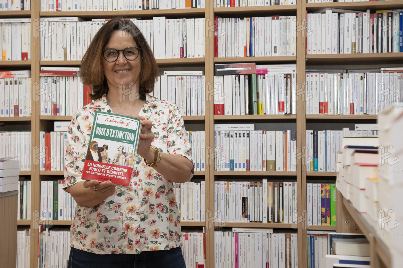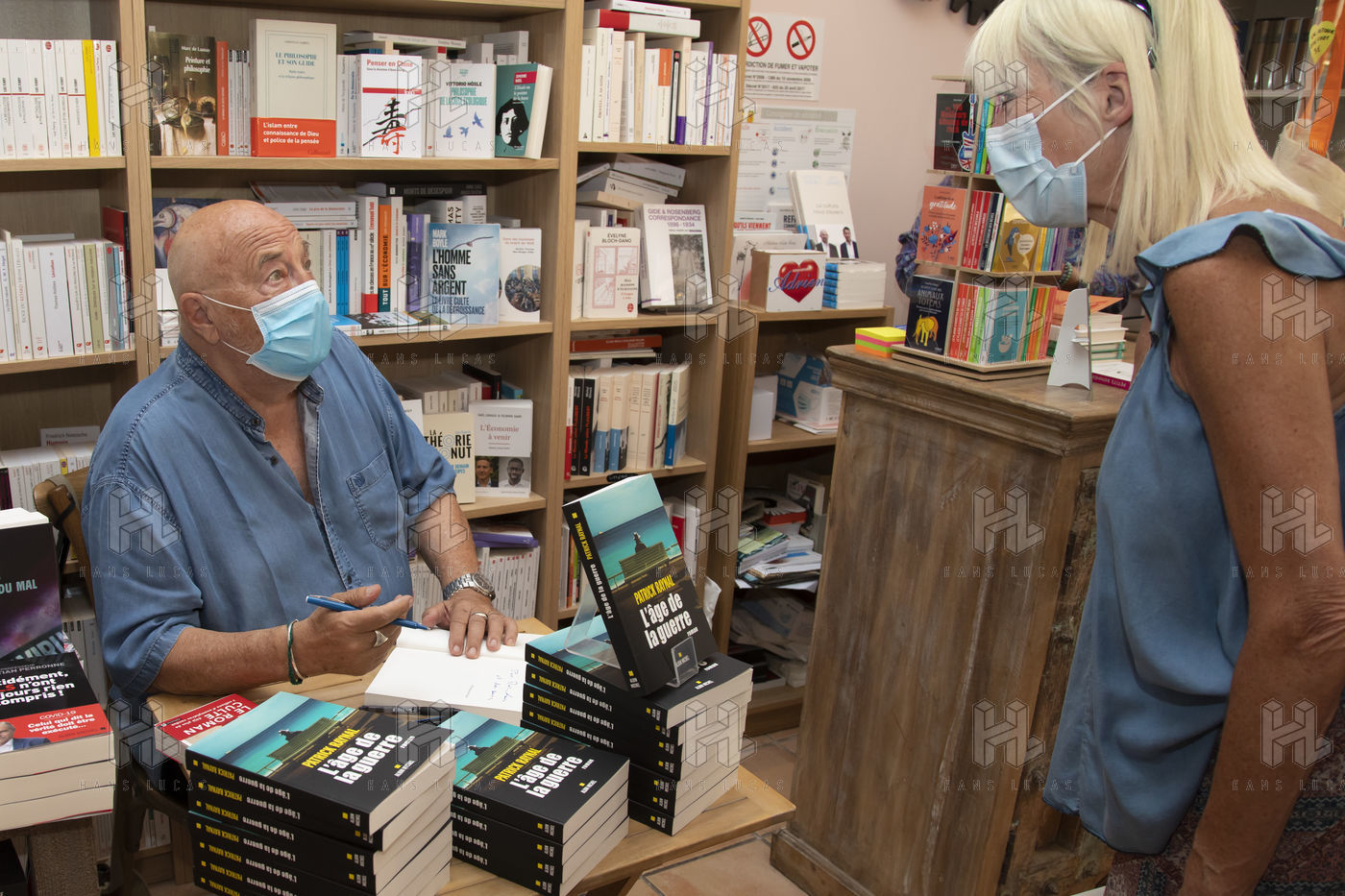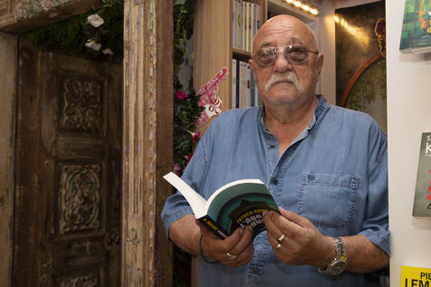 Portrait of different authors during book festivals, or bookstore dedication sessions.