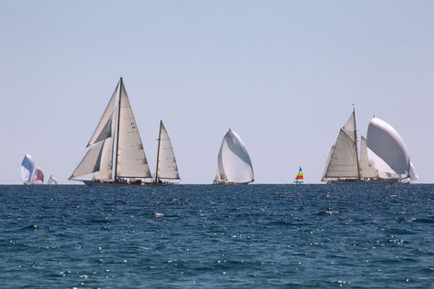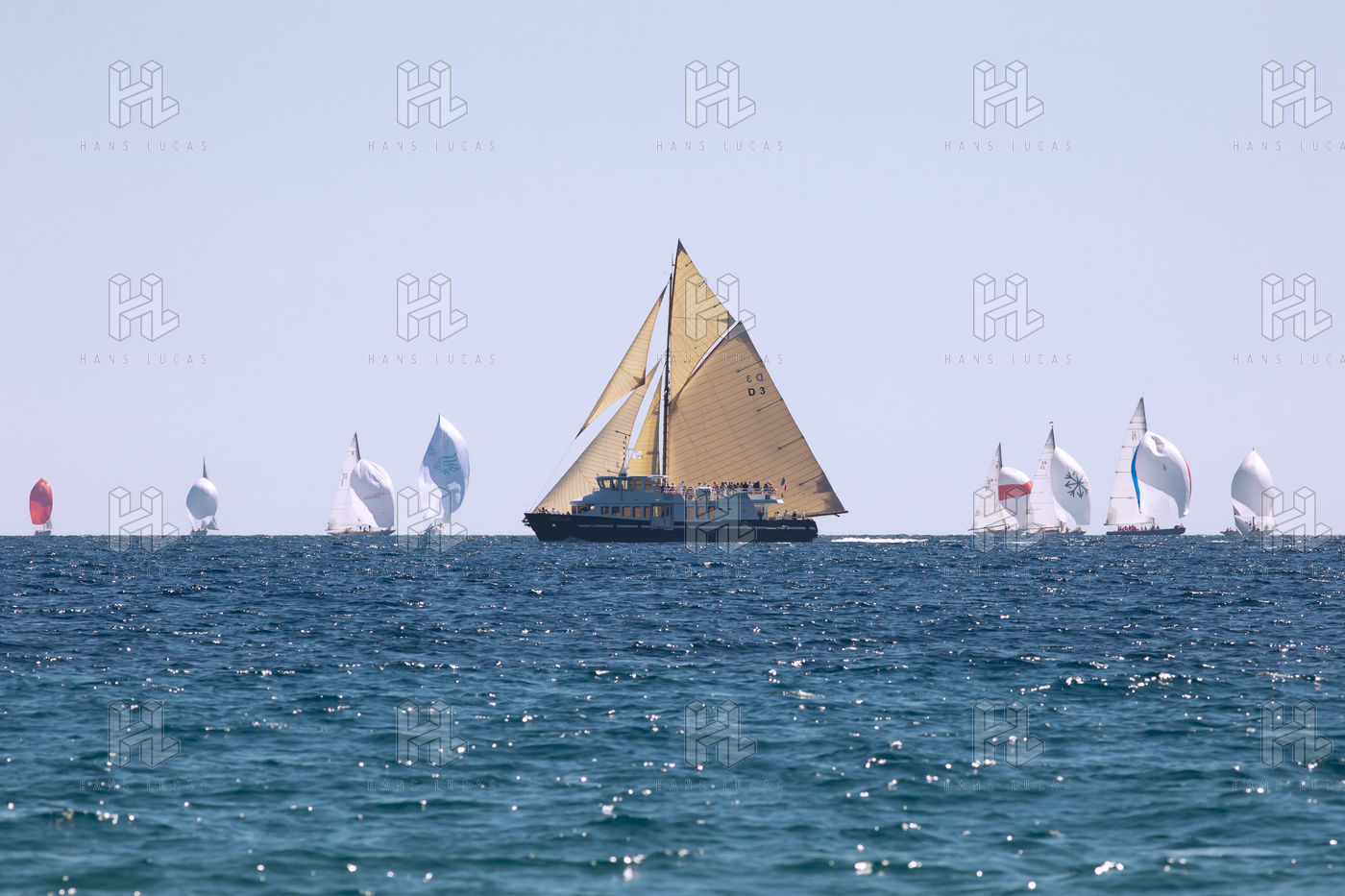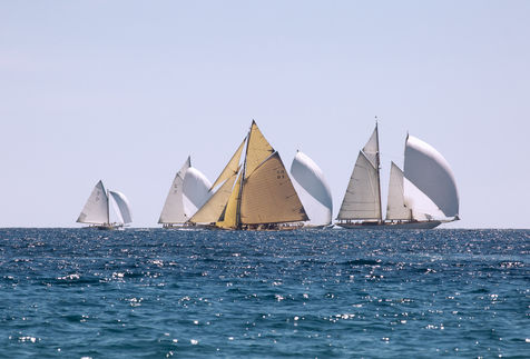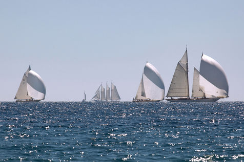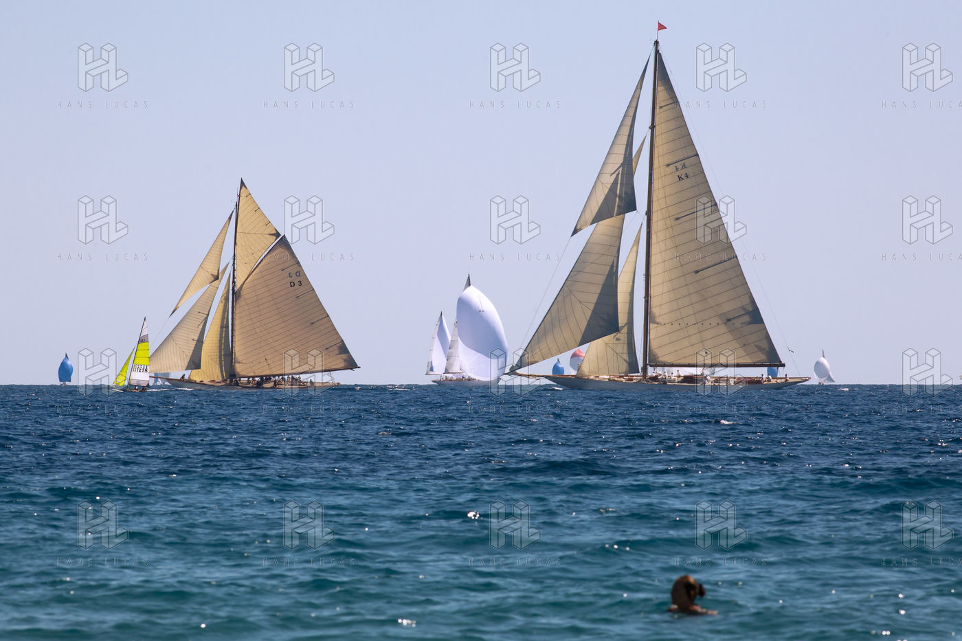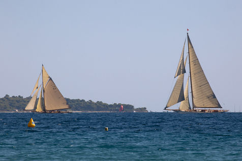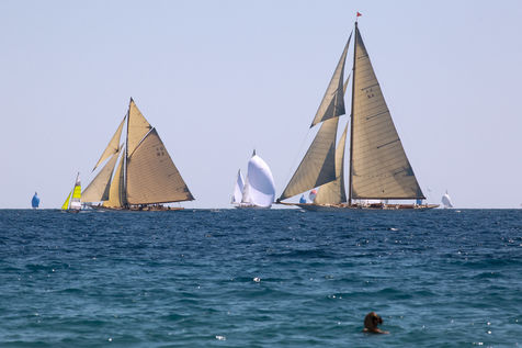Les équipages s affrontent sur des voiliers de tradition lors des 43e Regates Royales dans la baie de Cannes.