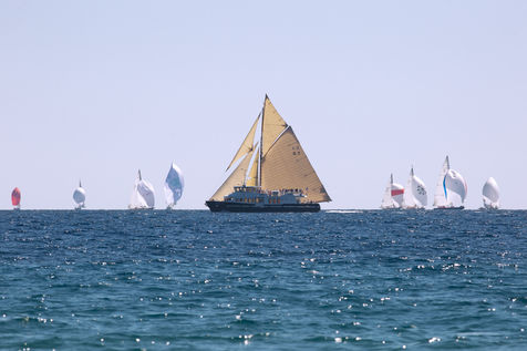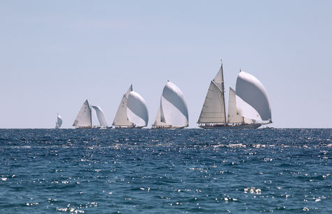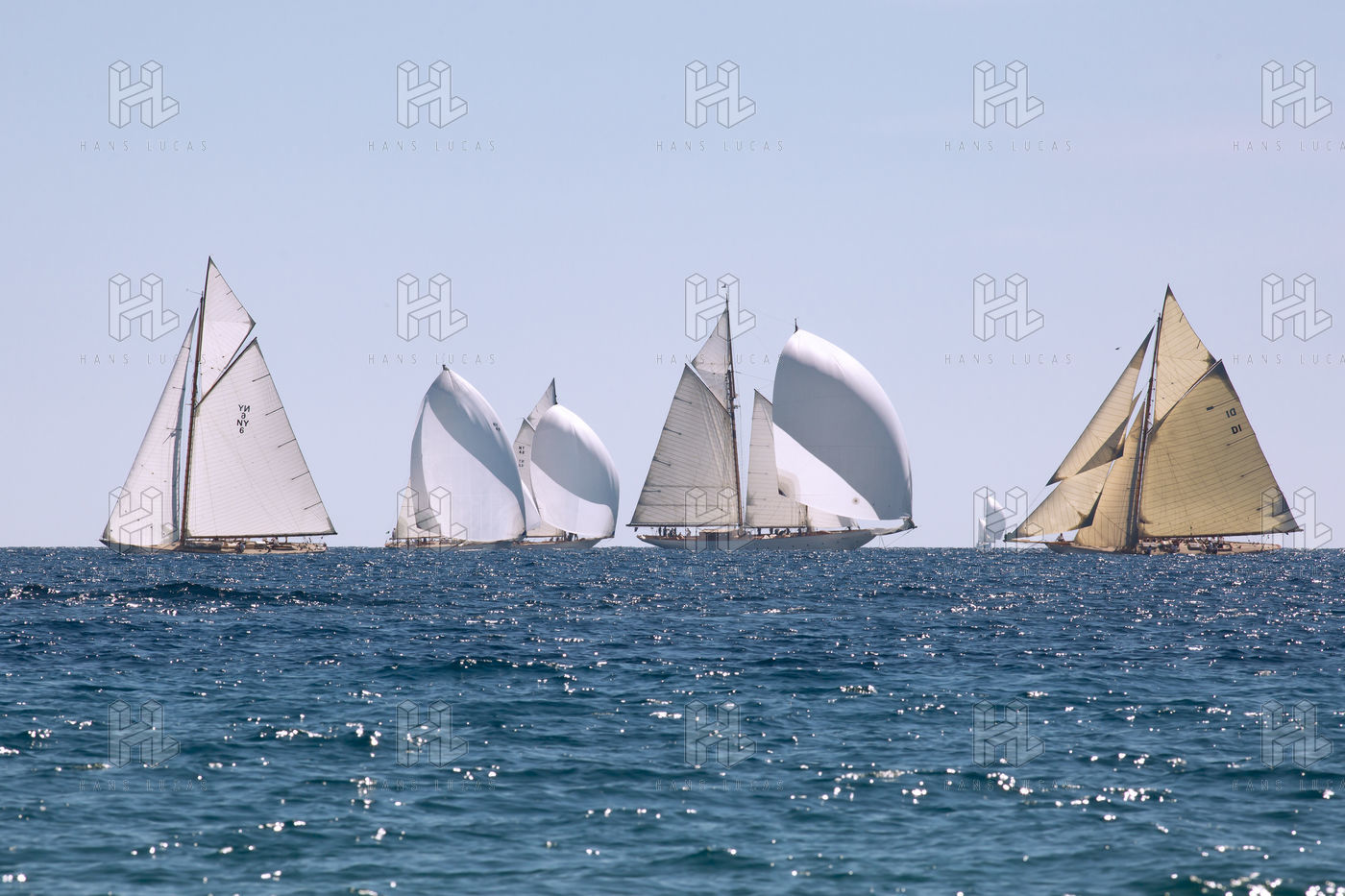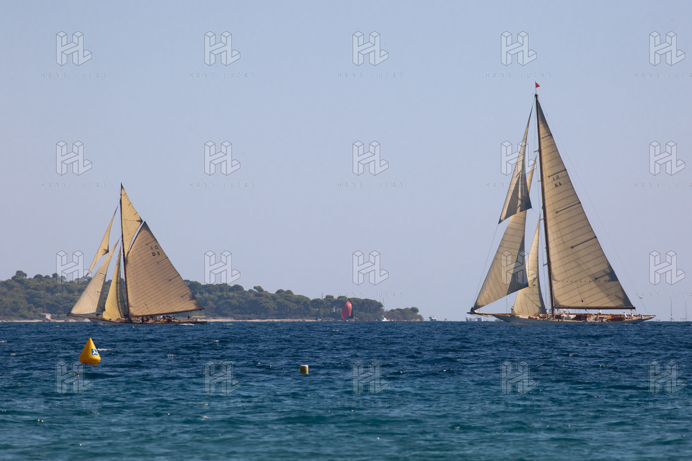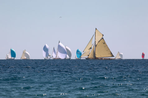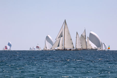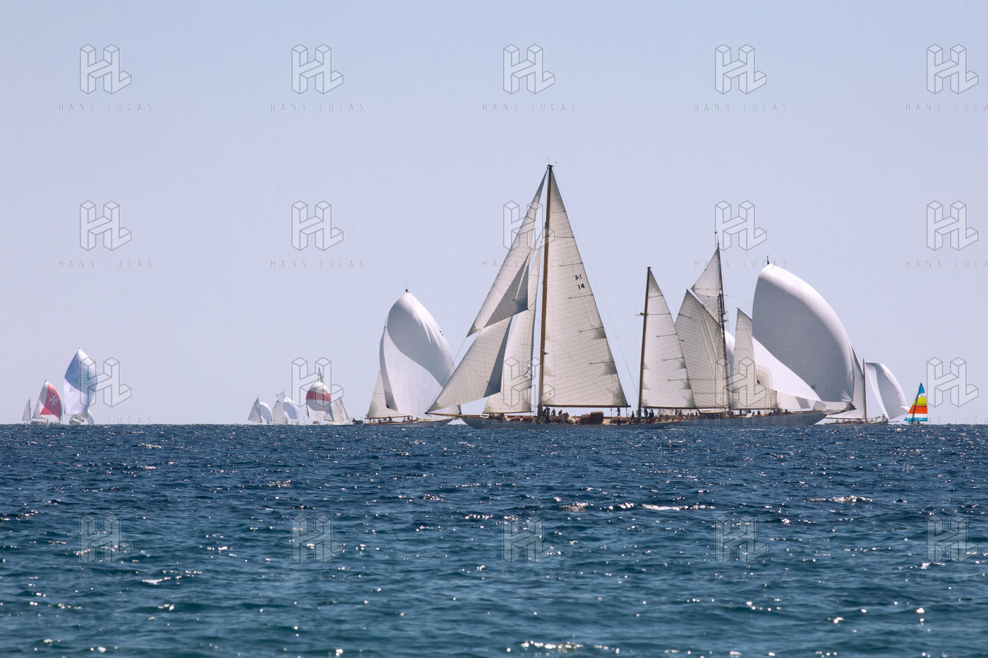 Les équipages s affrontent sur des voiliers de tradition lors des 43e Regates Royales dans la baie de Cannes.