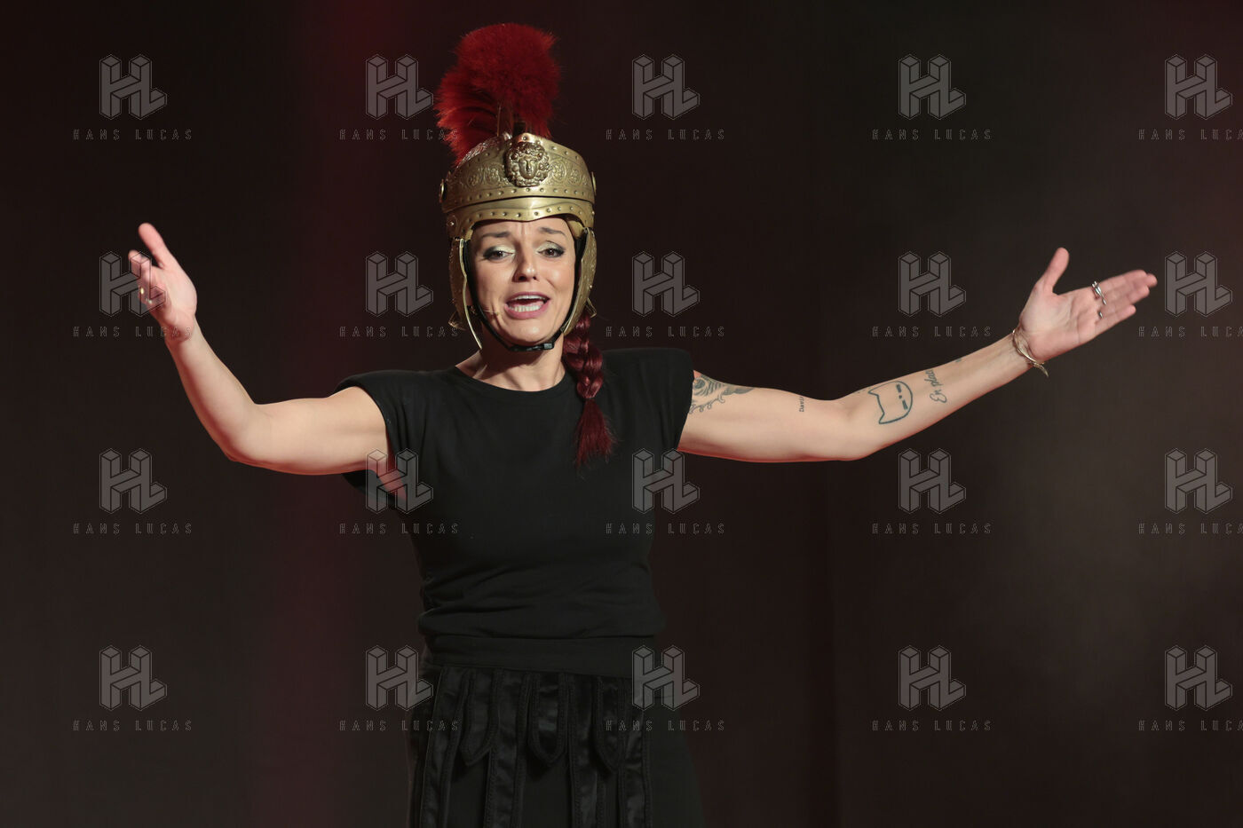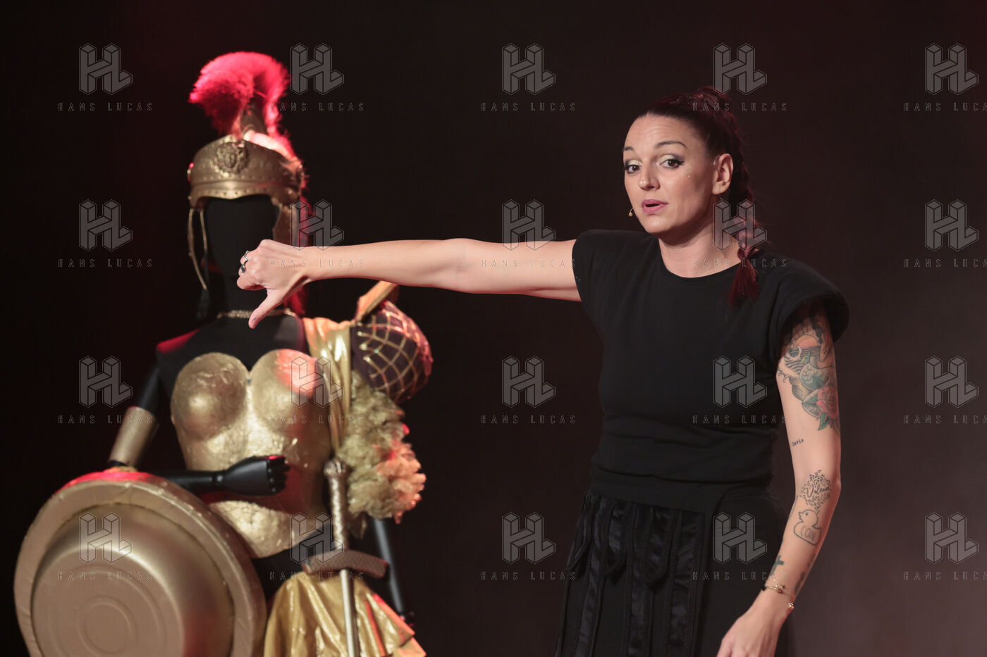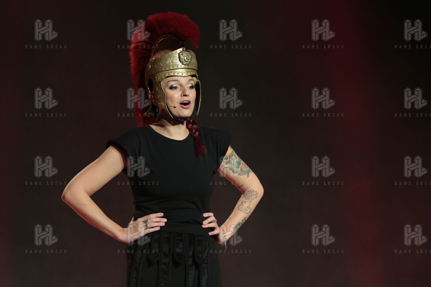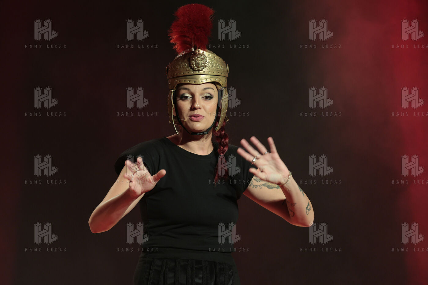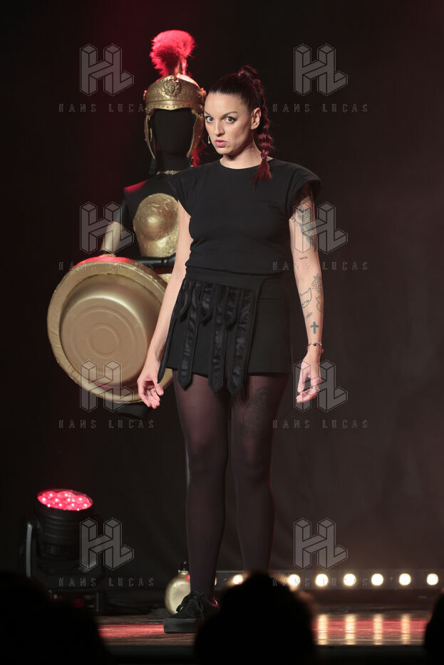 Actress and comedian Laura Calu performs on stage at the "Les Royals du Rire" Festival at the Joa Casino in Mandelieu.