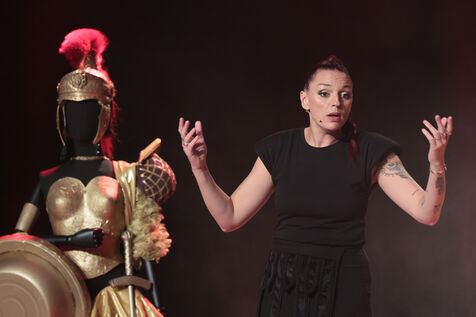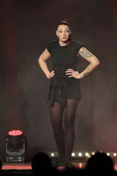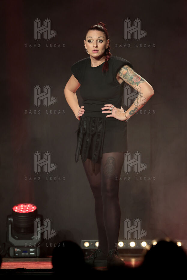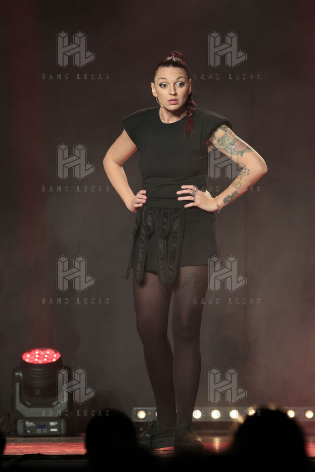 La comédienne et humoriste Laura Calu se produit sur la scène du Festival "Les Royals du Rire" au casino Joa de Mandelieu.