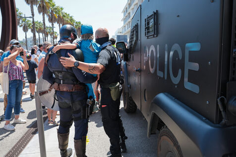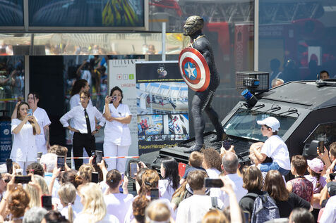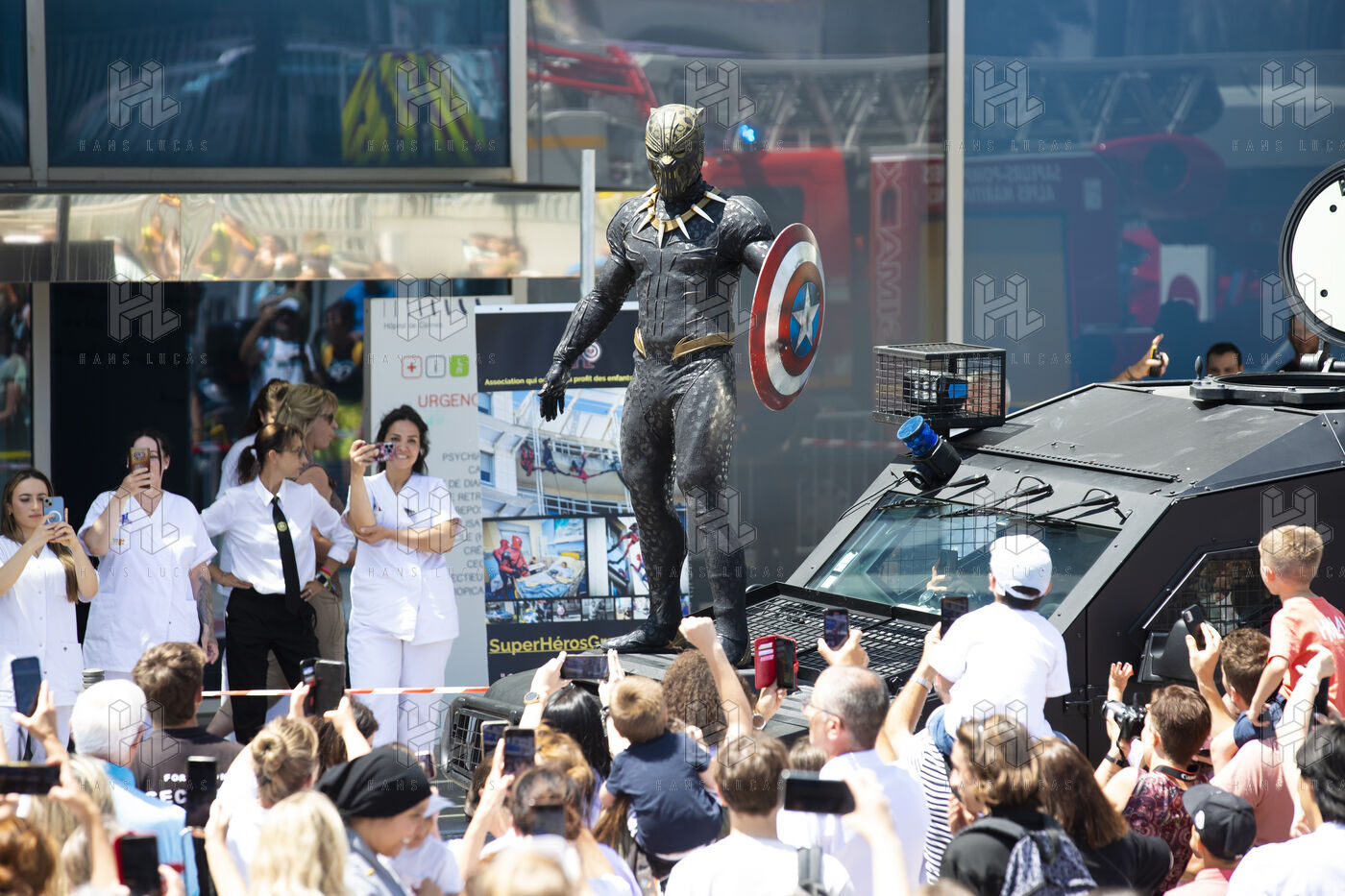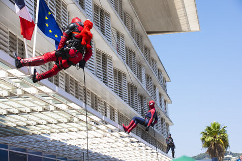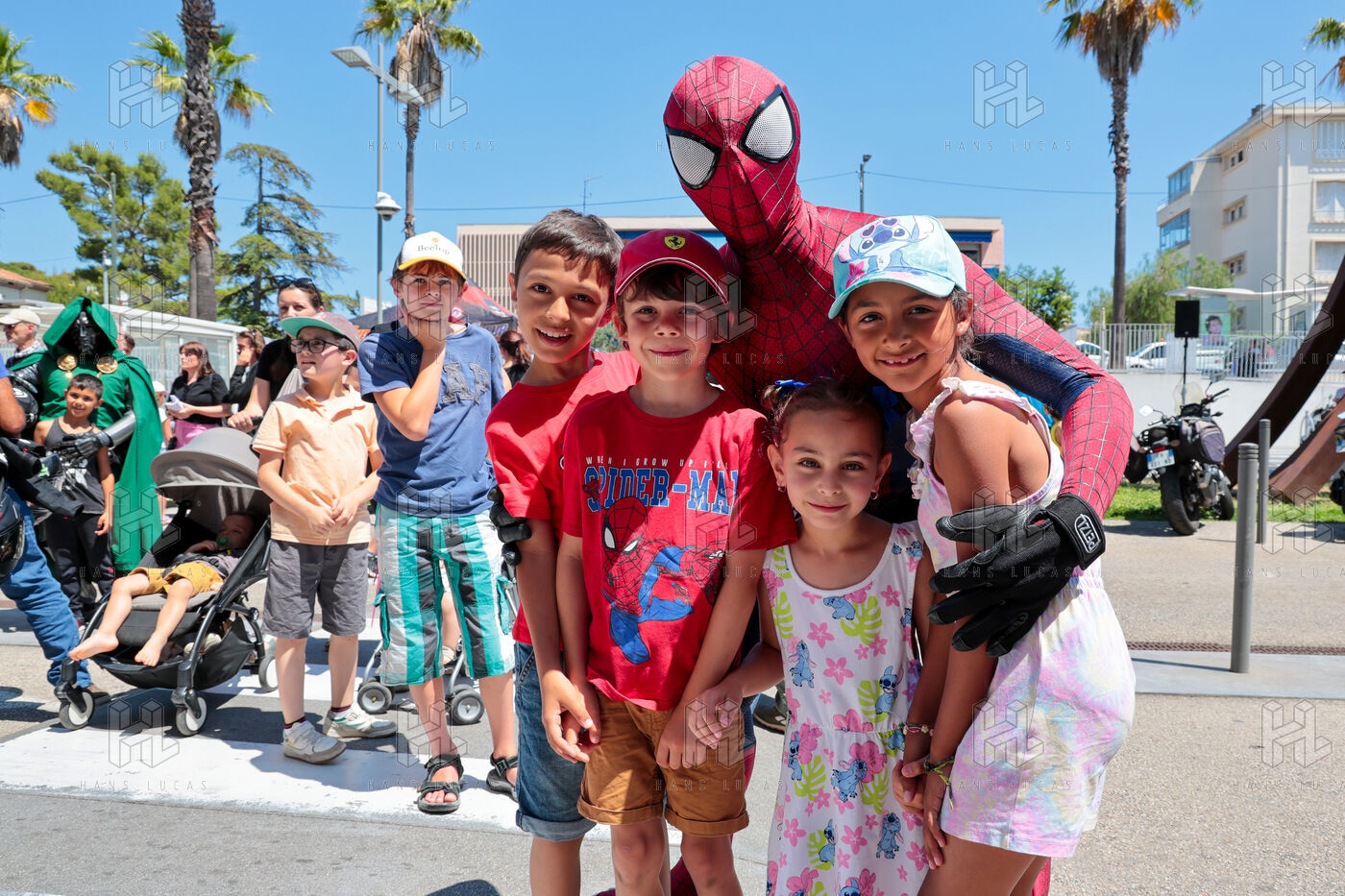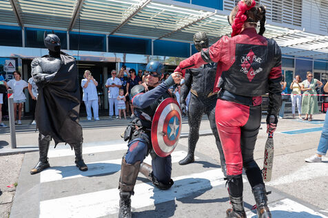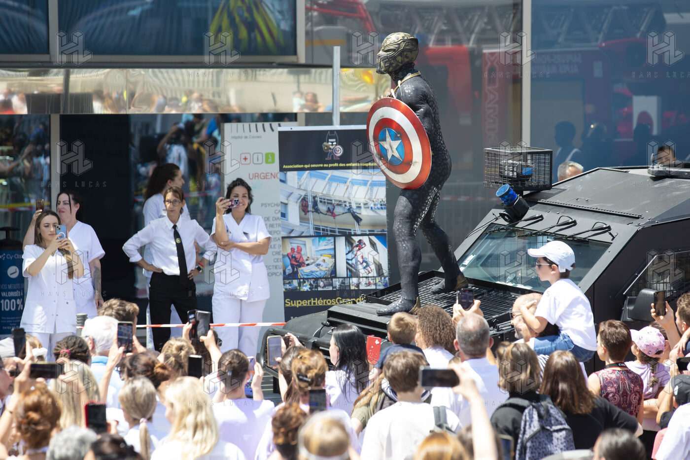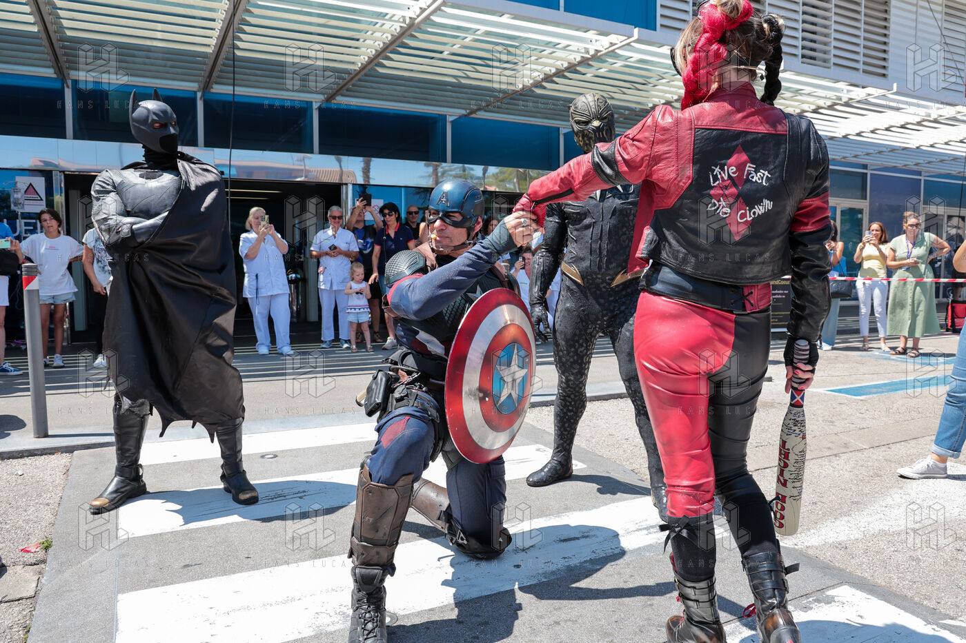 L association Super Héros Grand Cœur présente un spectacle pour des enfants malades, hospitalisés ou handicapés à l hopital de Cannes. Les membres de l'association se déguisent en personnages de films "Marvel" et "DC Comics". Les super-vilains arrivent en Harley Davidson, suivis par des héros qui descendent de la façade et interviennent pour sauver l hôpital.