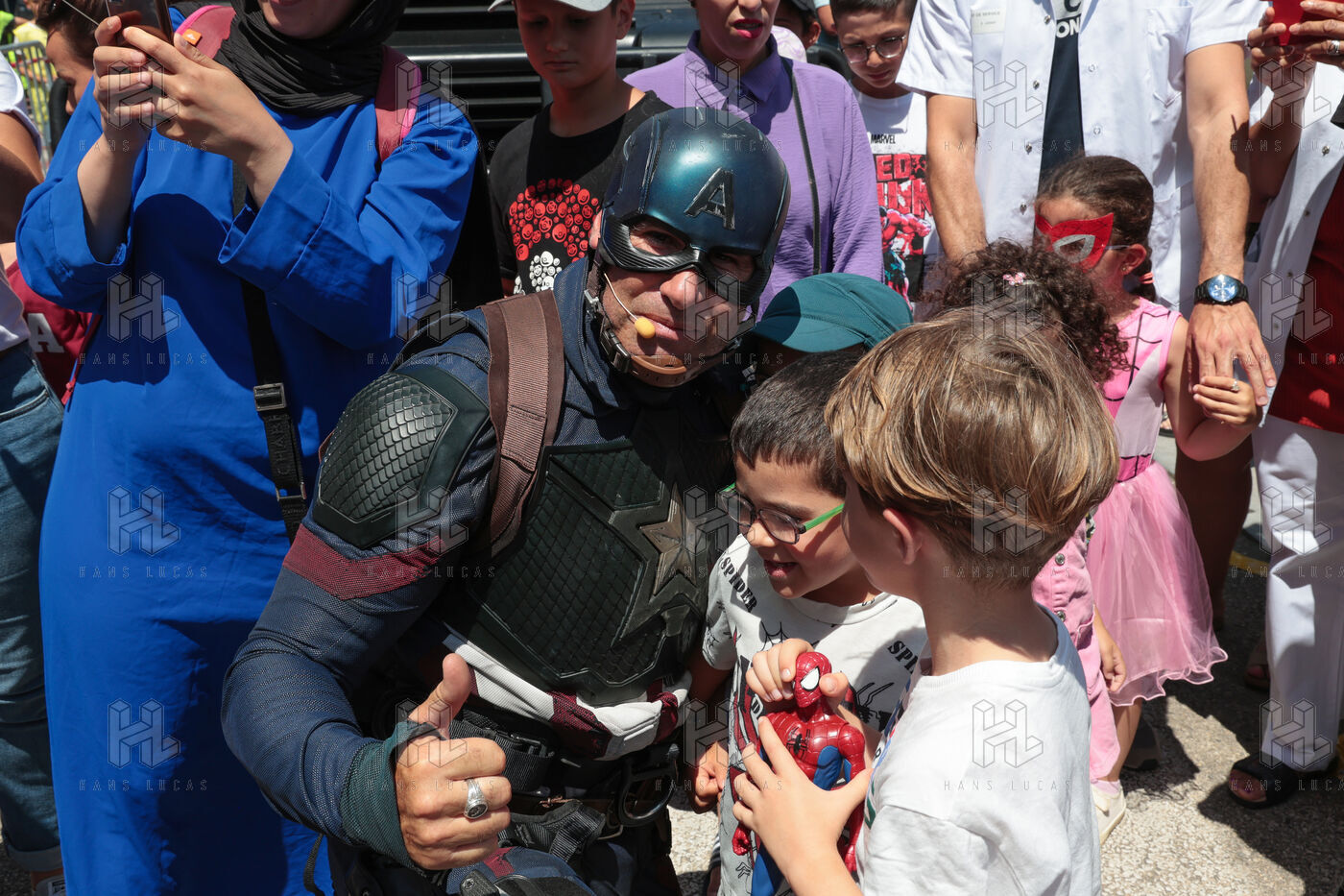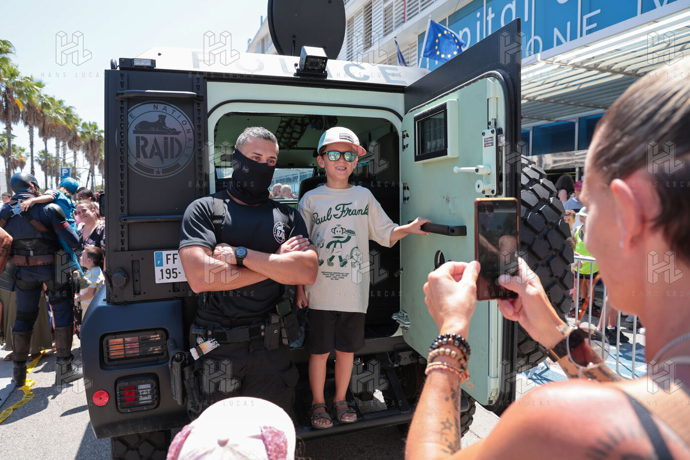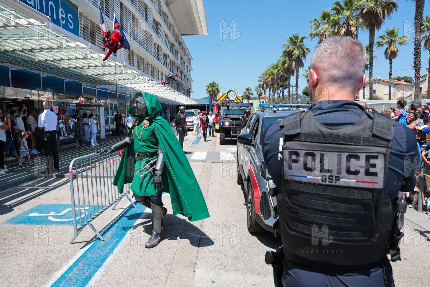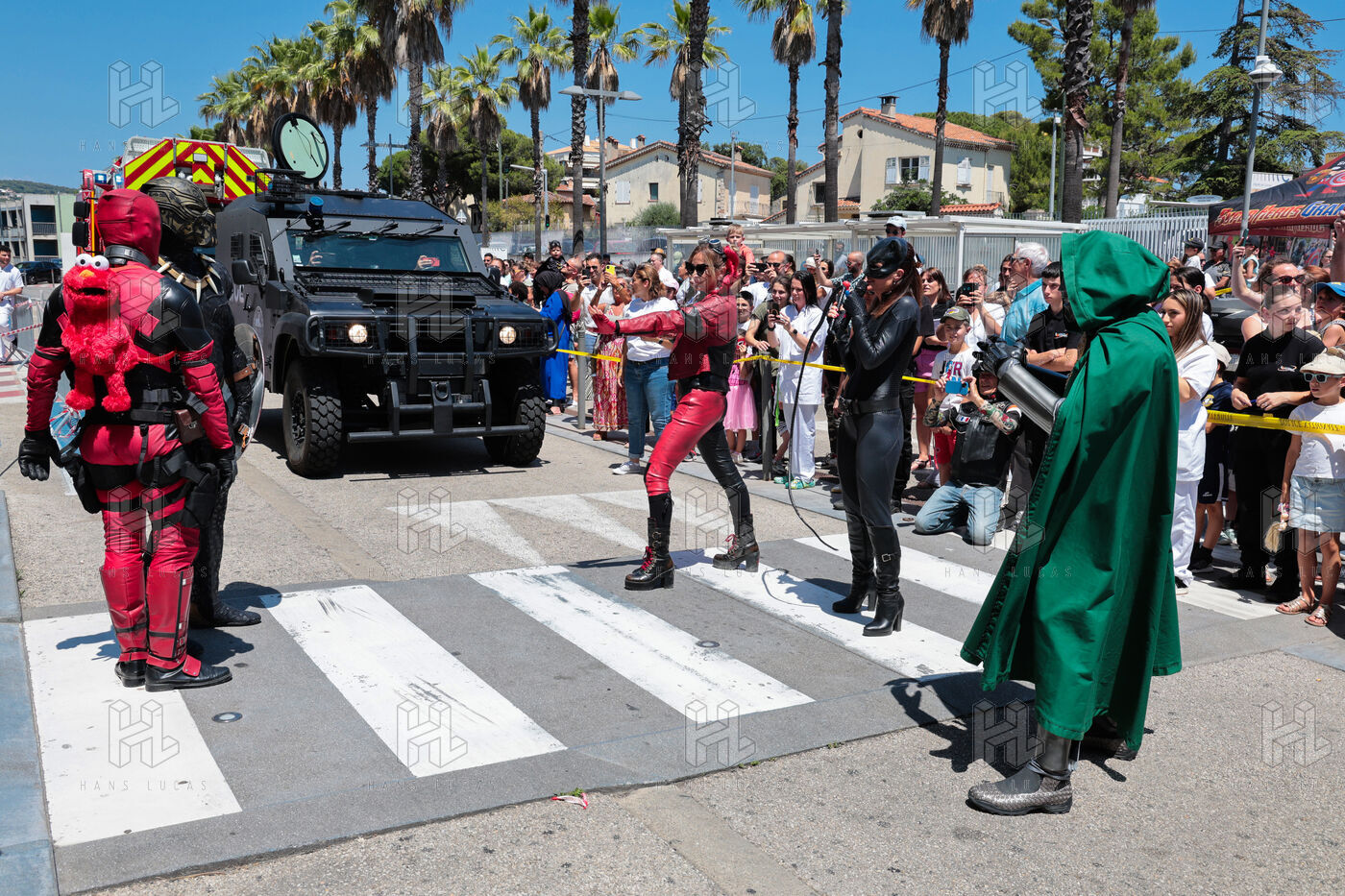 The Superhero Big Heart association presents a show for sick, hospitalized, or disabled children at the Cannes hospital. The association s members dress up as characters from Marvel and DC Comics movies. The supervillains arrive on Harley Davidsons, followed by heroes who descend from the facade and intervene to save the hospital.