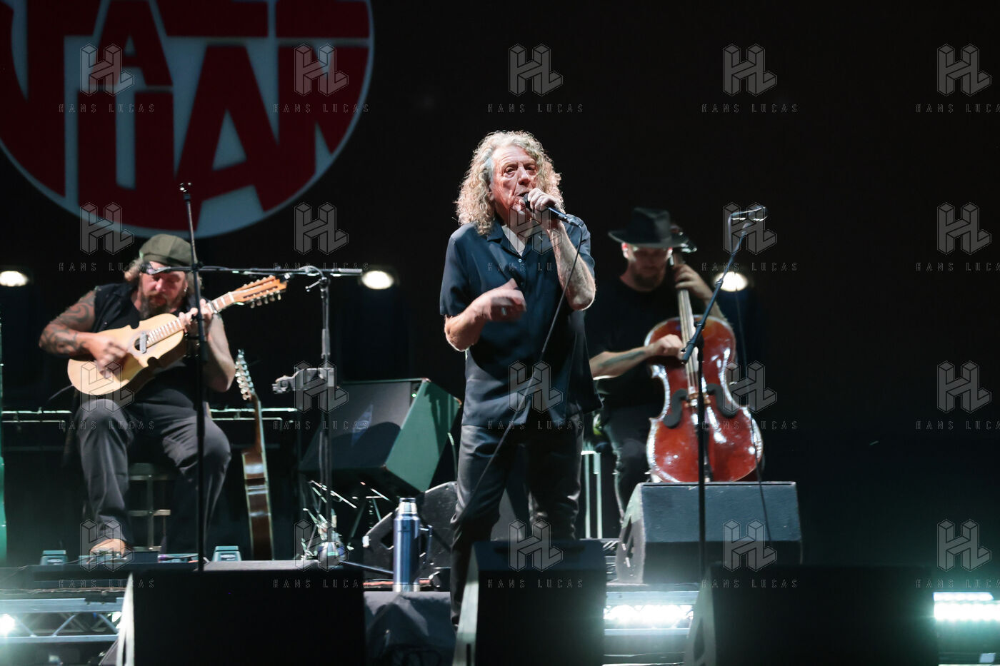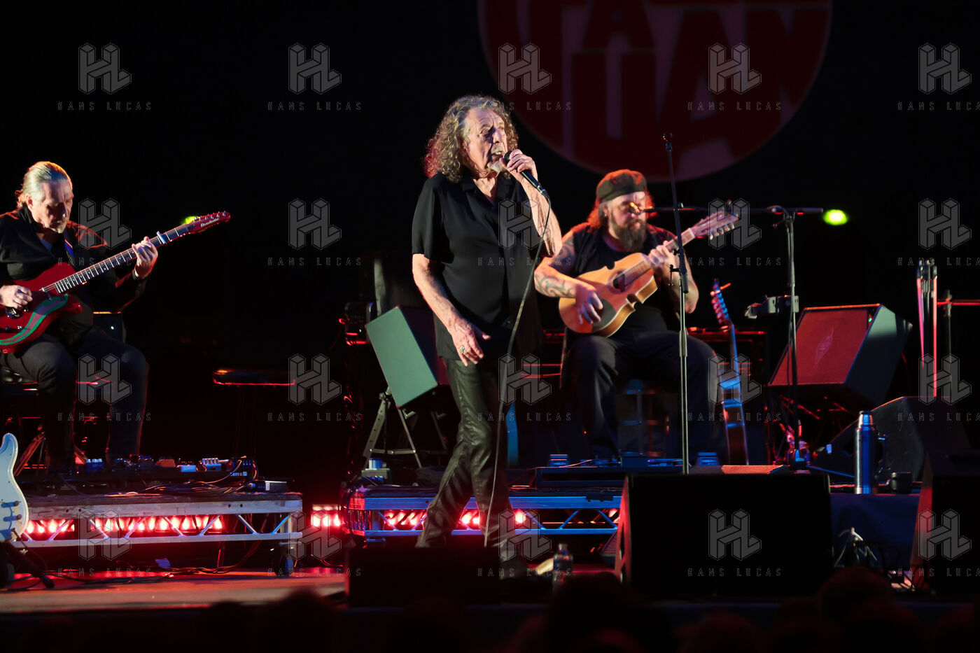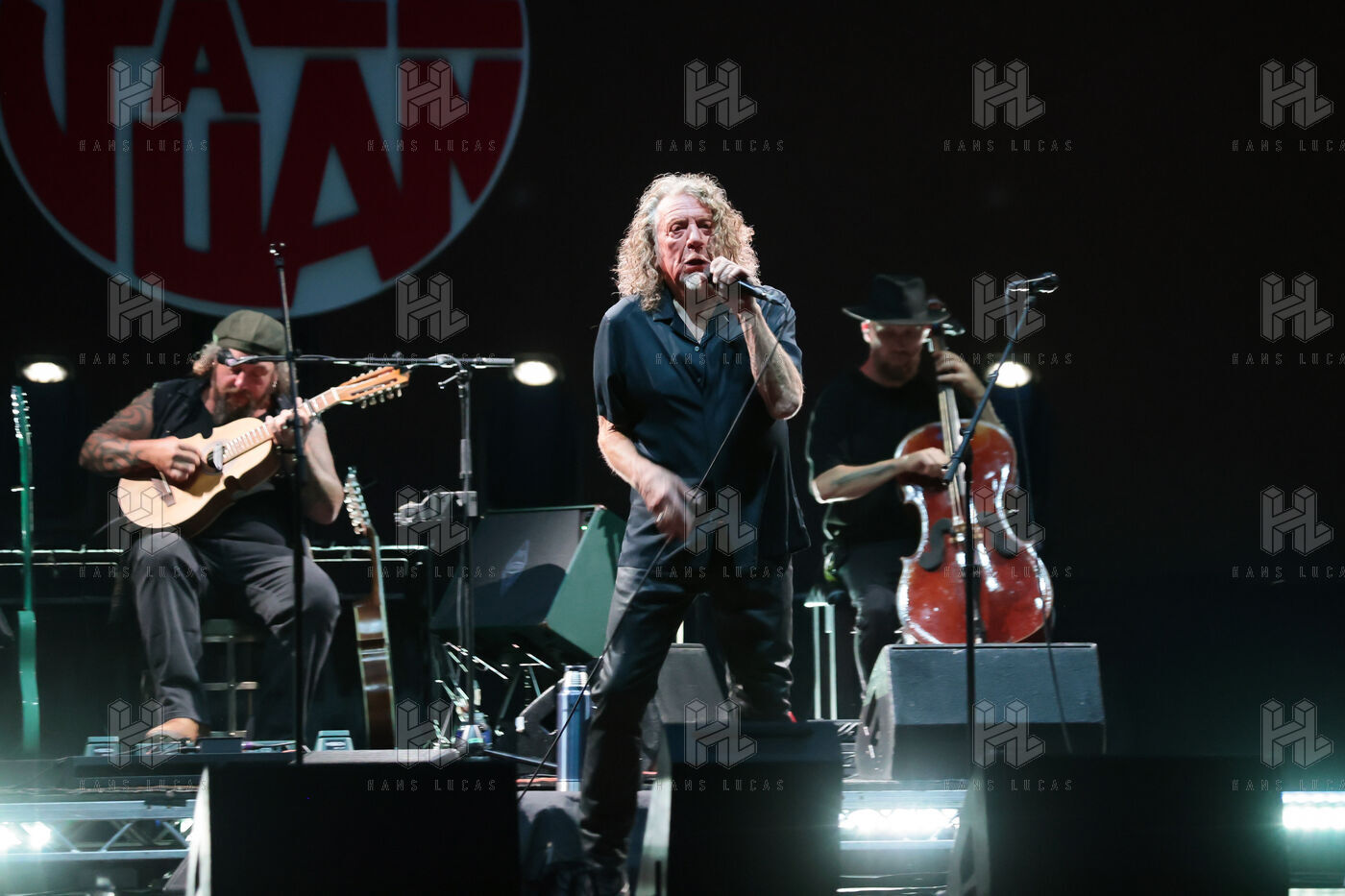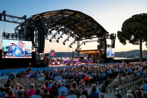 Robert Plant se produit avec son groupe Saving Grace et Suzi Dian sur la scène du festival Jazz à Juan 2025.