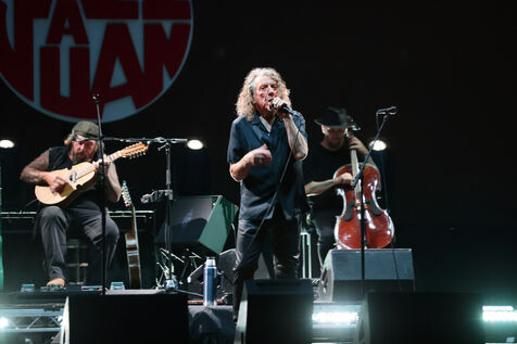 Robert Plant performs with his band Saving Grace feat Suzi Dian on stage at the Jazz a Juan 2025 festival.