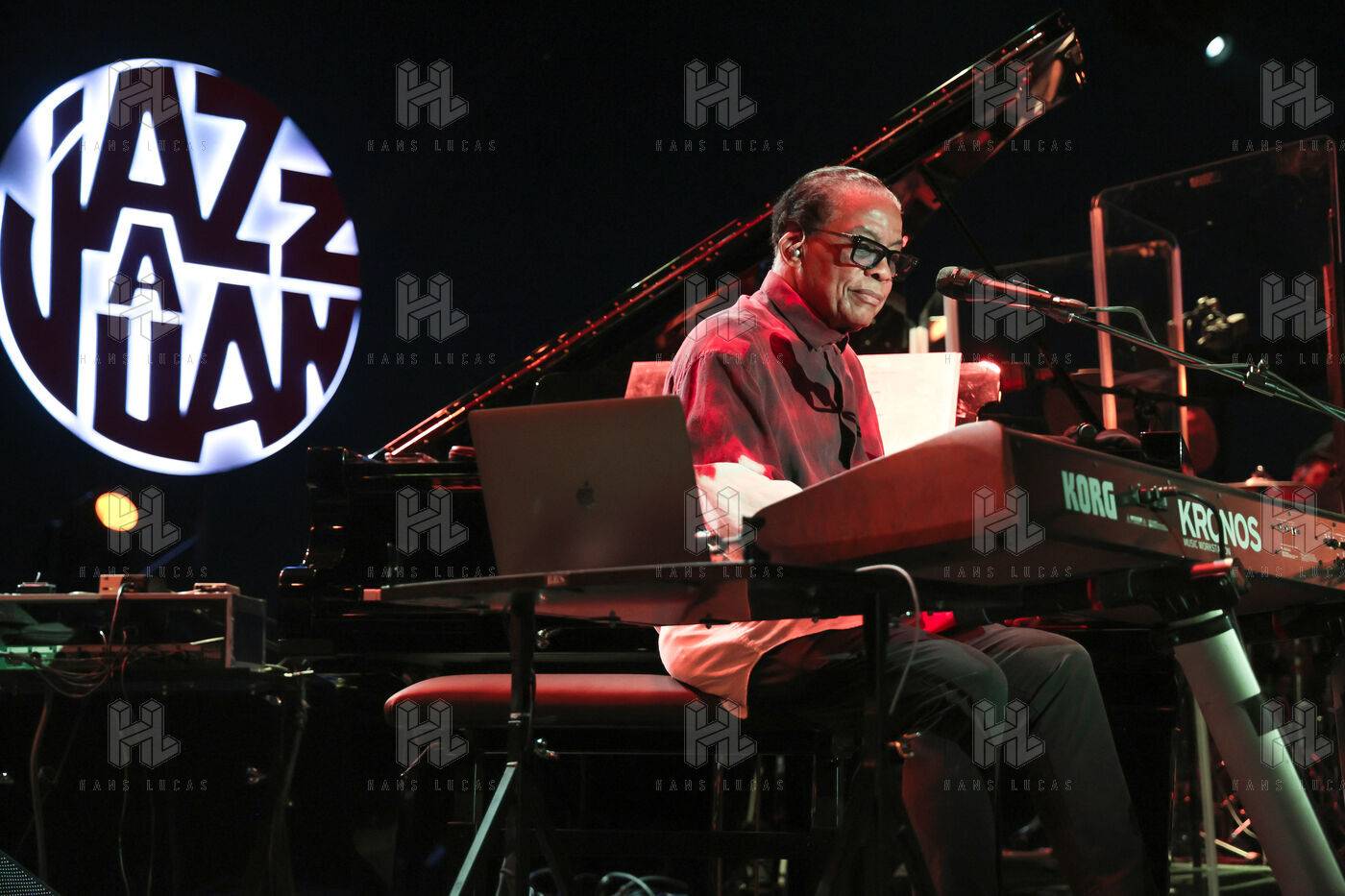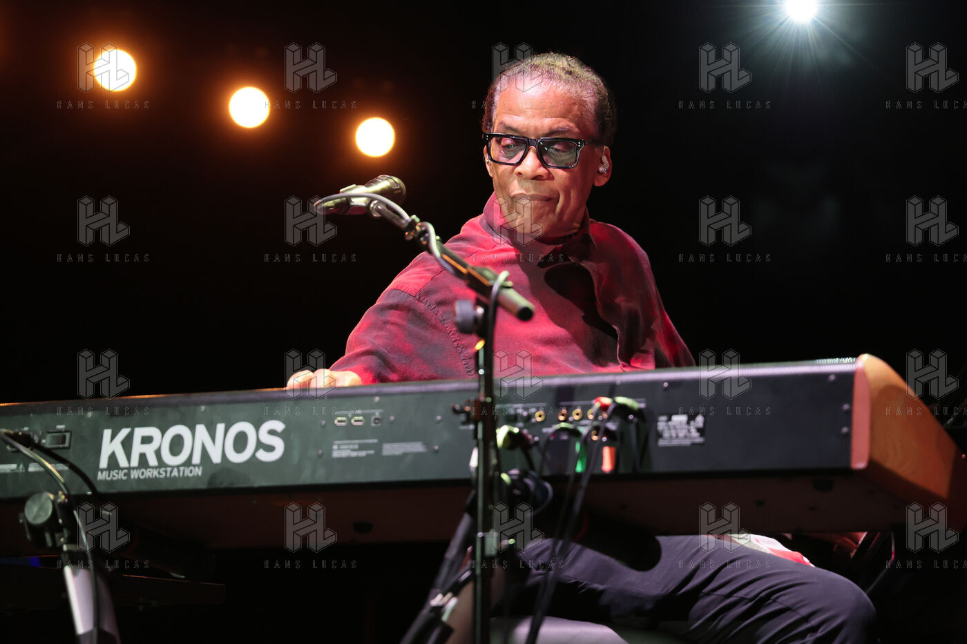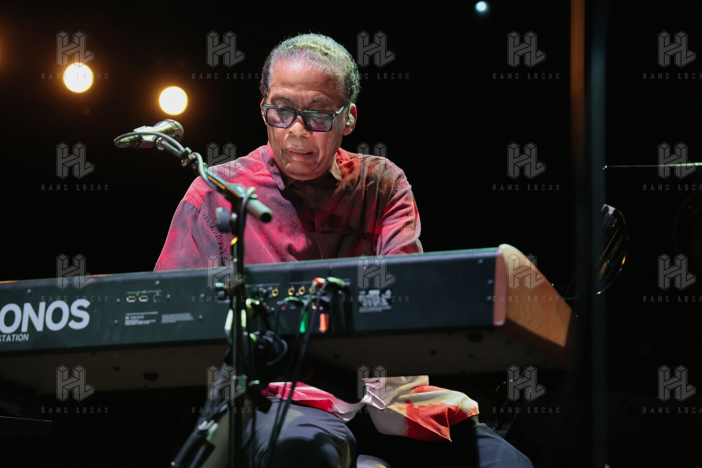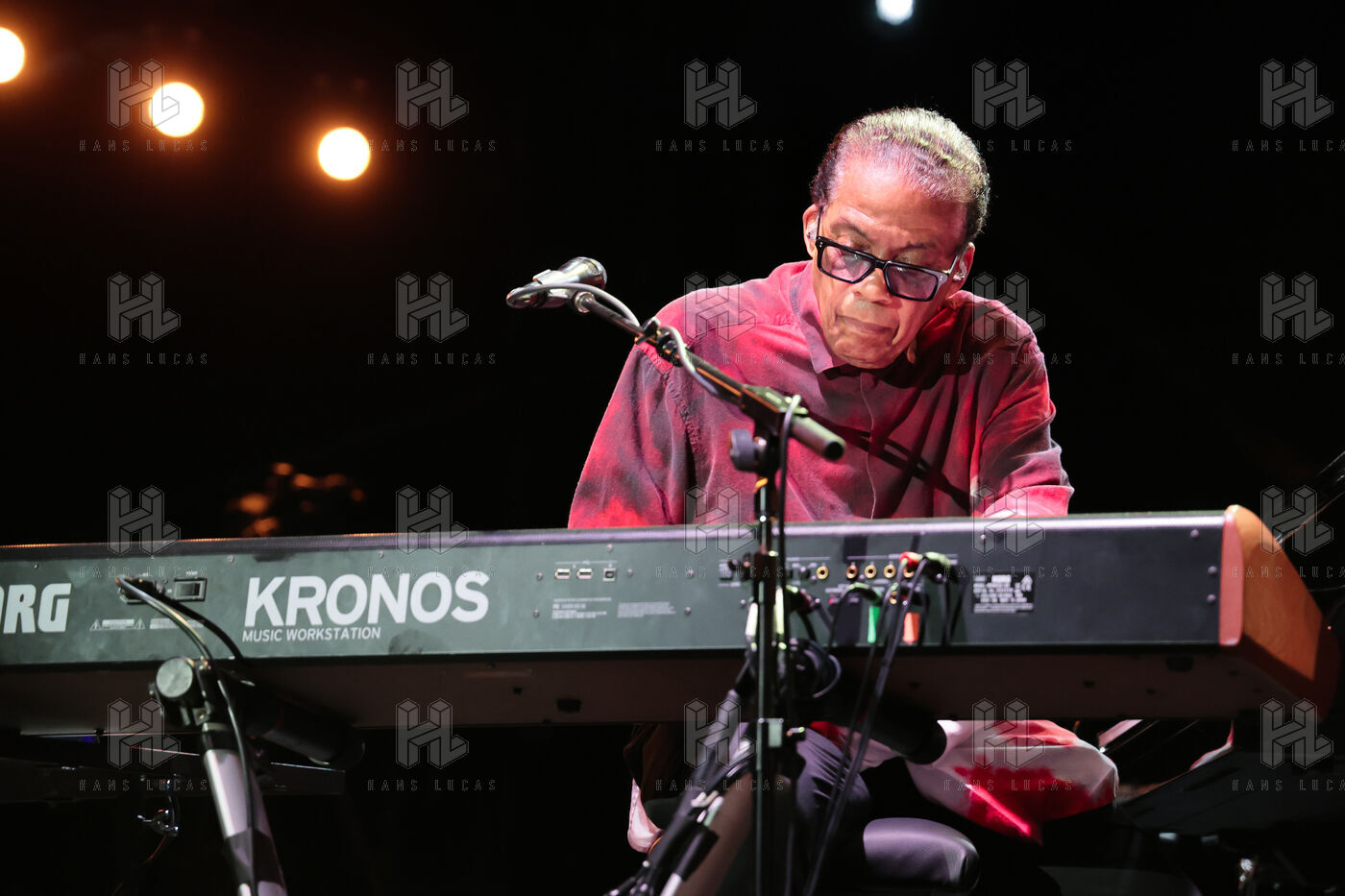 Herbie Hancock, pianiste, clavieriste et compositeur americain de jazz se produit sur la scene du festival Jazz a Juan 2025.