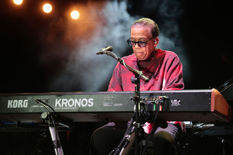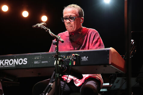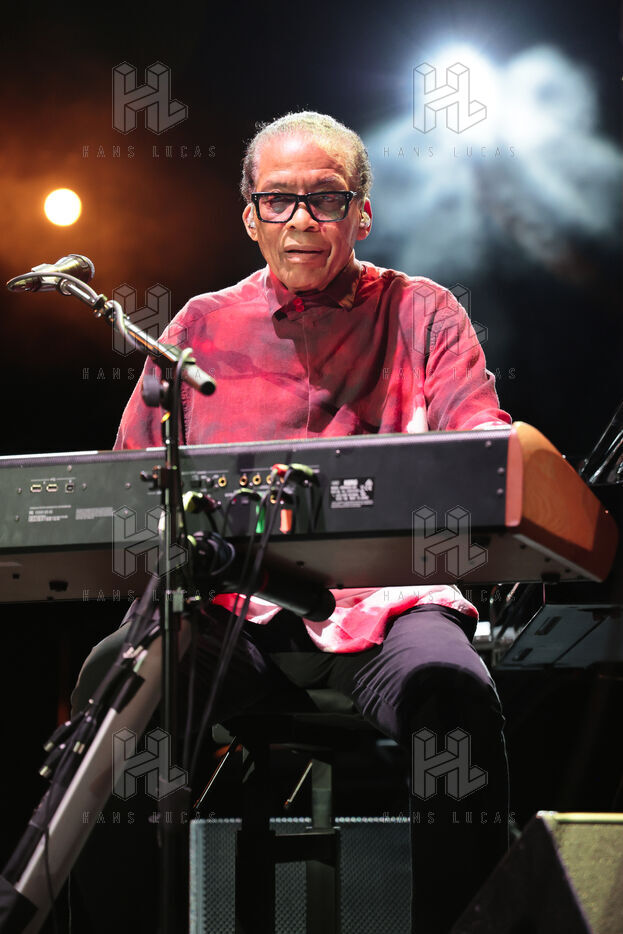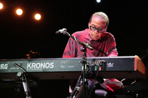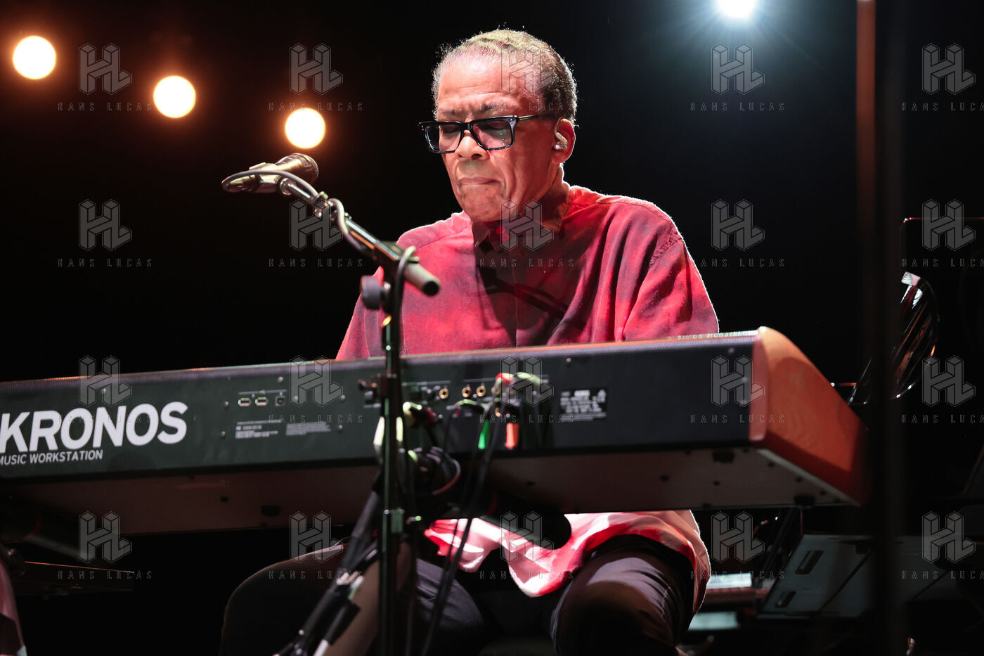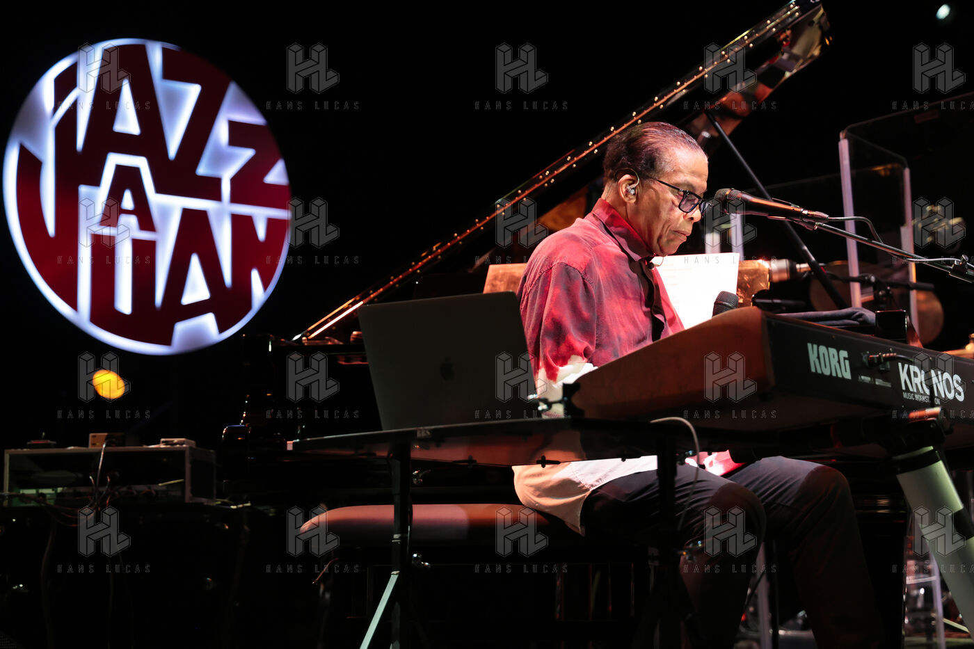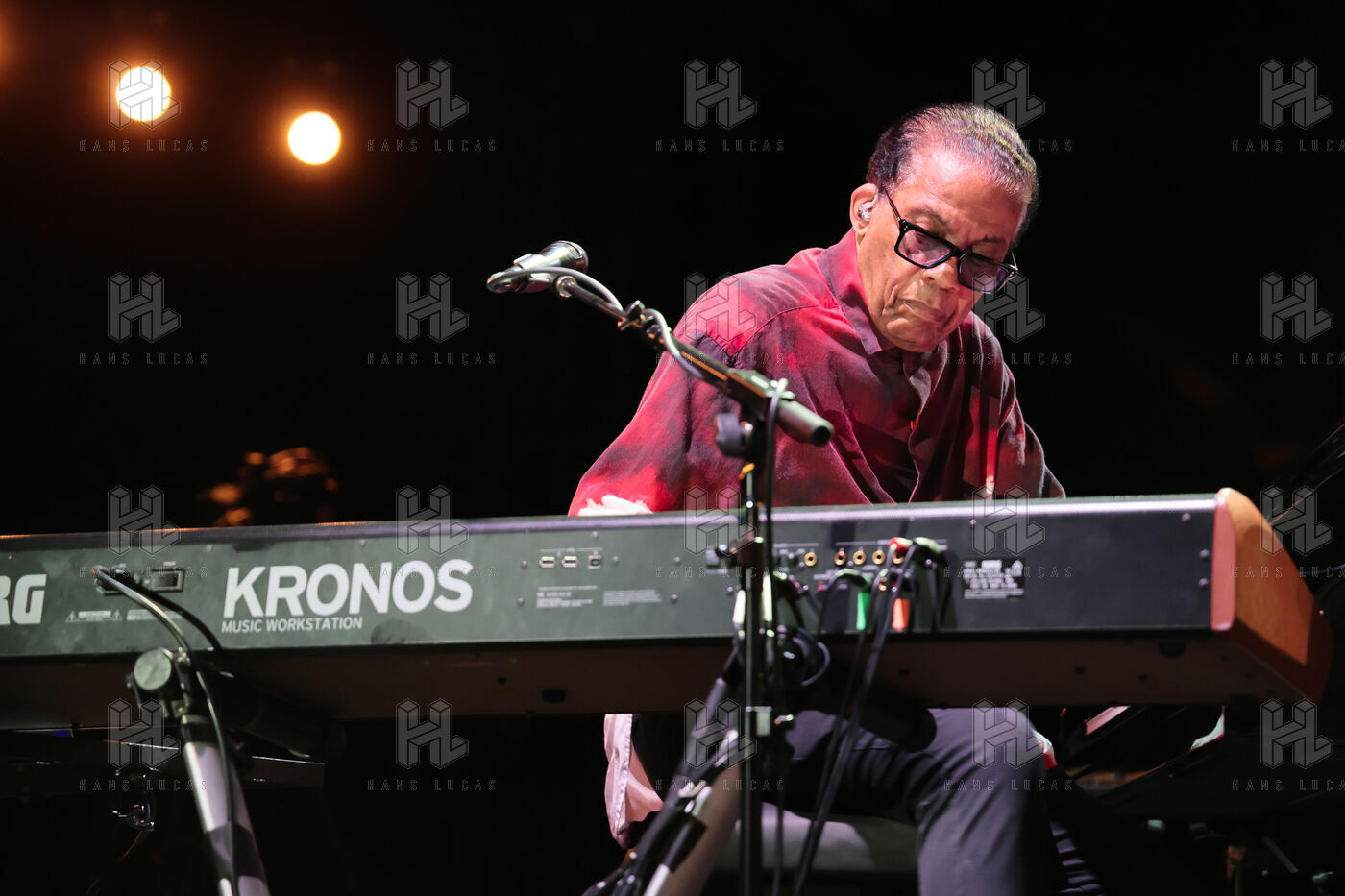 Herbie Hancock, pianiste, clavieriste et compositeur americain de jazz se produit sur la scene du festival Jazz a Juan 2025.