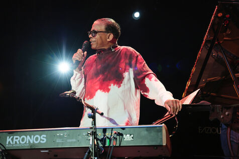 American jazz pianist, keyboardist, and composer Herbie Hancock performs at the 2025 Jazz à Juan Festival.