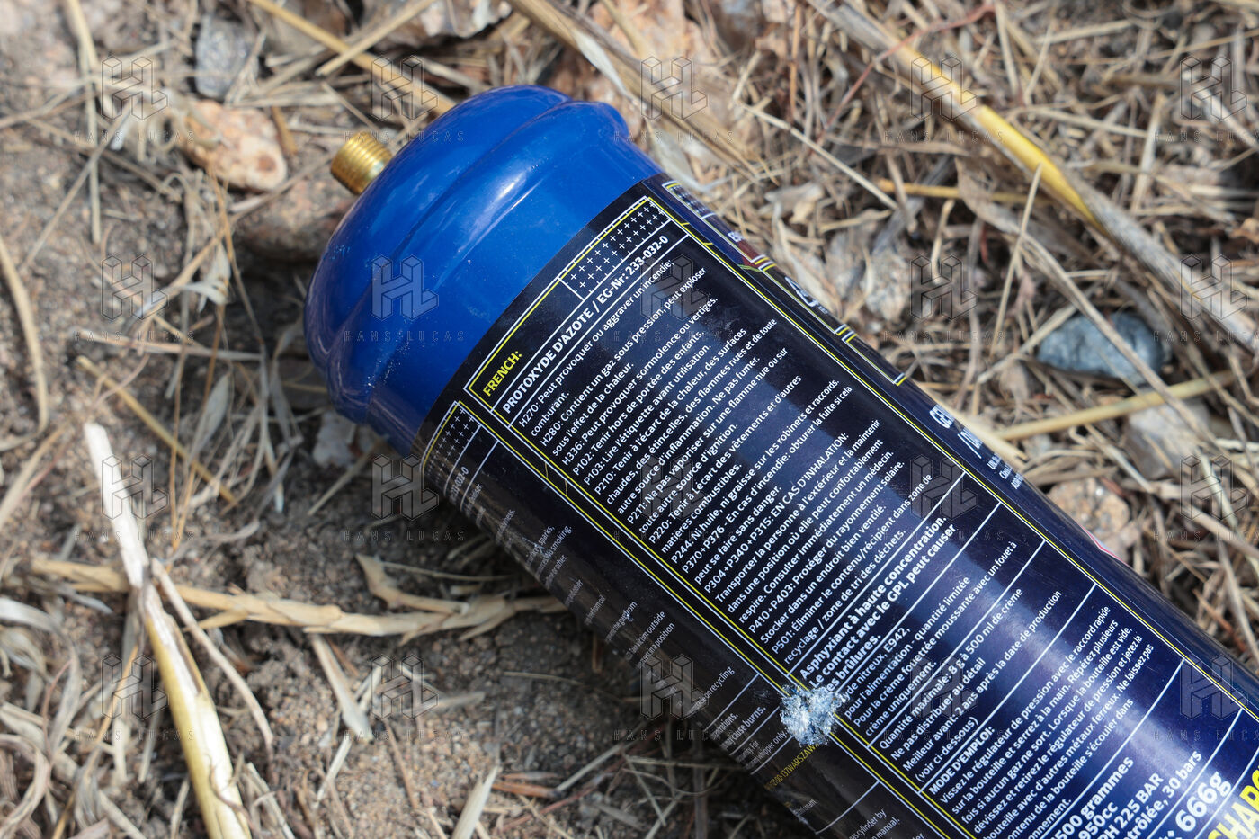 Bouteille de protoxyde d azote abandonnée dans la nature après avoir était consommé