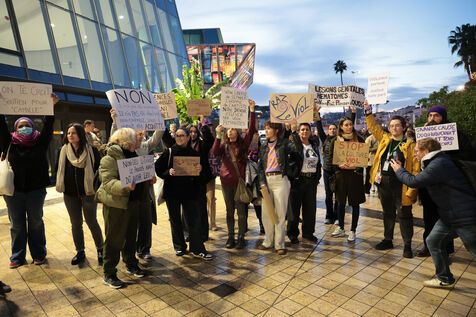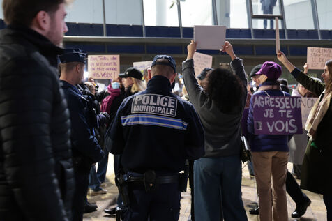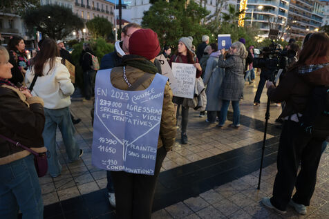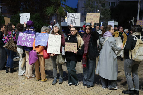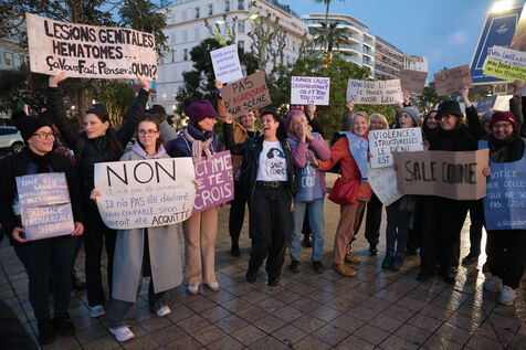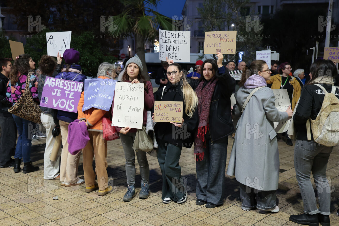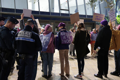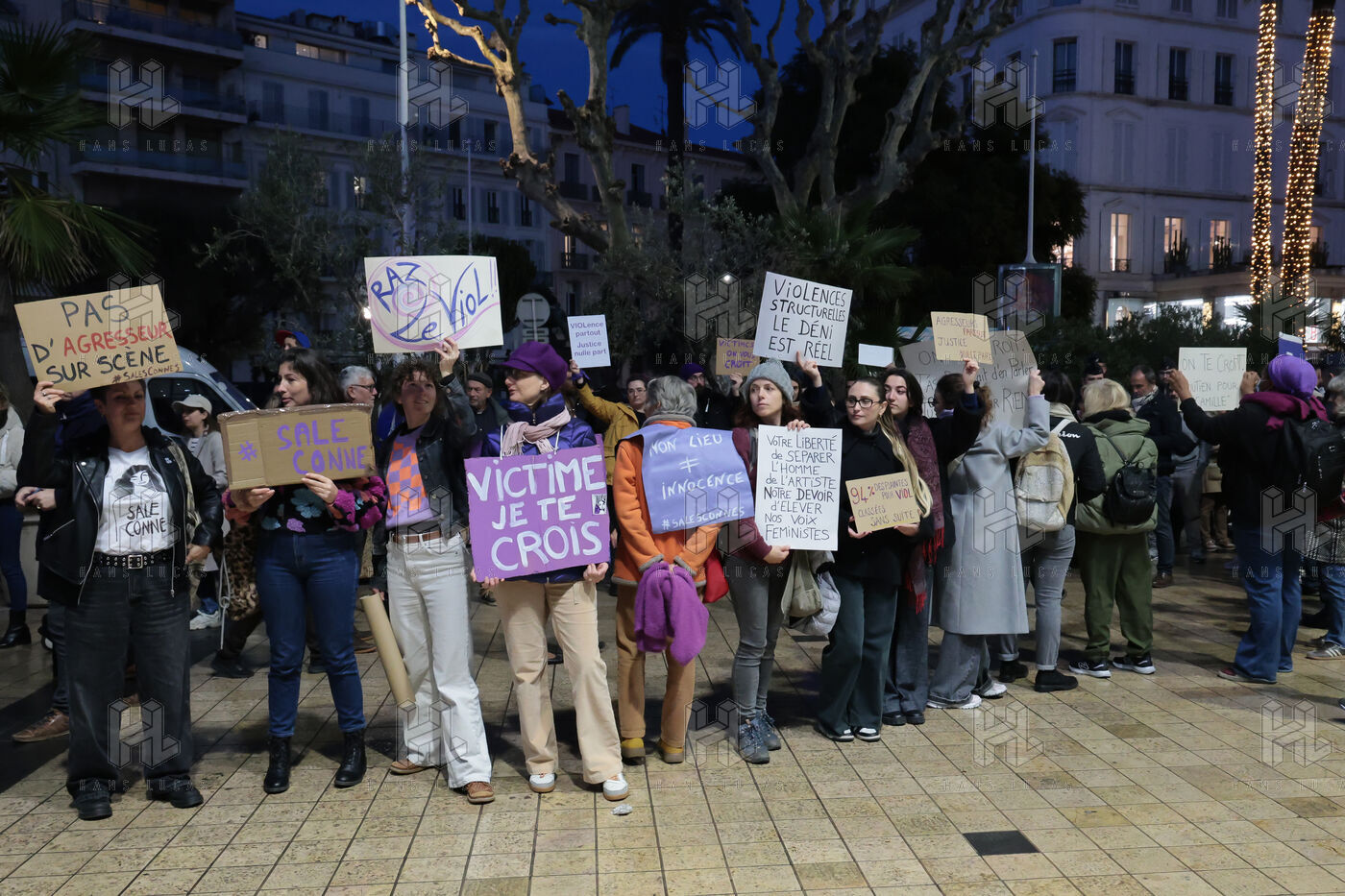 Feminists from the group "Nous Toutes 06" (All of Us 06) demonstrate in front of the Palais des Festivals in Cannes, where Ary Abittan is scheduled to perform, to raise awareness about violence against women. Ary Abittan was accused of rape but was acquitted.