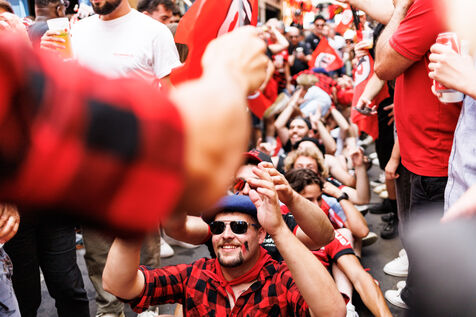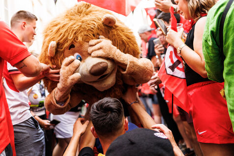 In a warm and friendly atmosphere, the red and black supporters gave their all. Draught beers, sausages, paquitos, waving flags, singing and popular music transformed the chic streets of the district into a joyous pre-match atmosphere.