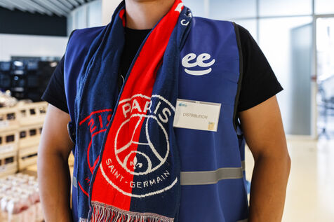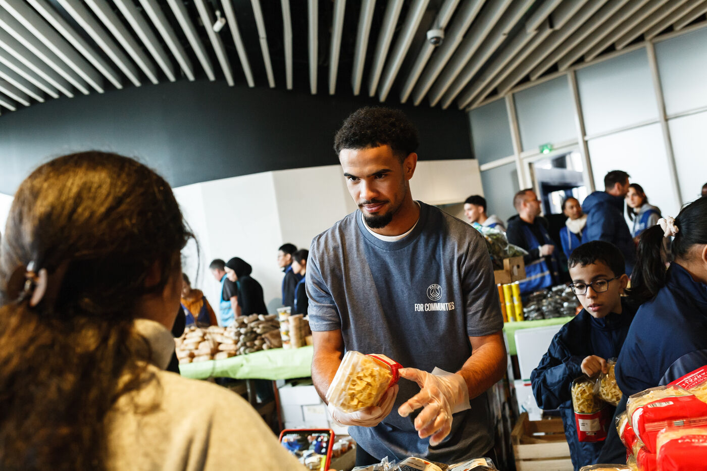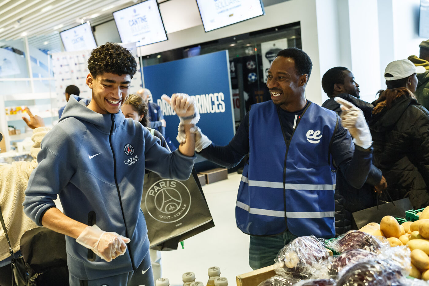 Alongside 250 volunteers, Nasser Al-Khelaïfi, president of Paris Saint-Germain, and athletes Warren Zaïre-Emery (soccer) and Jannick Green (handball) took part in the distribution, demonstrating their commitment to young people.