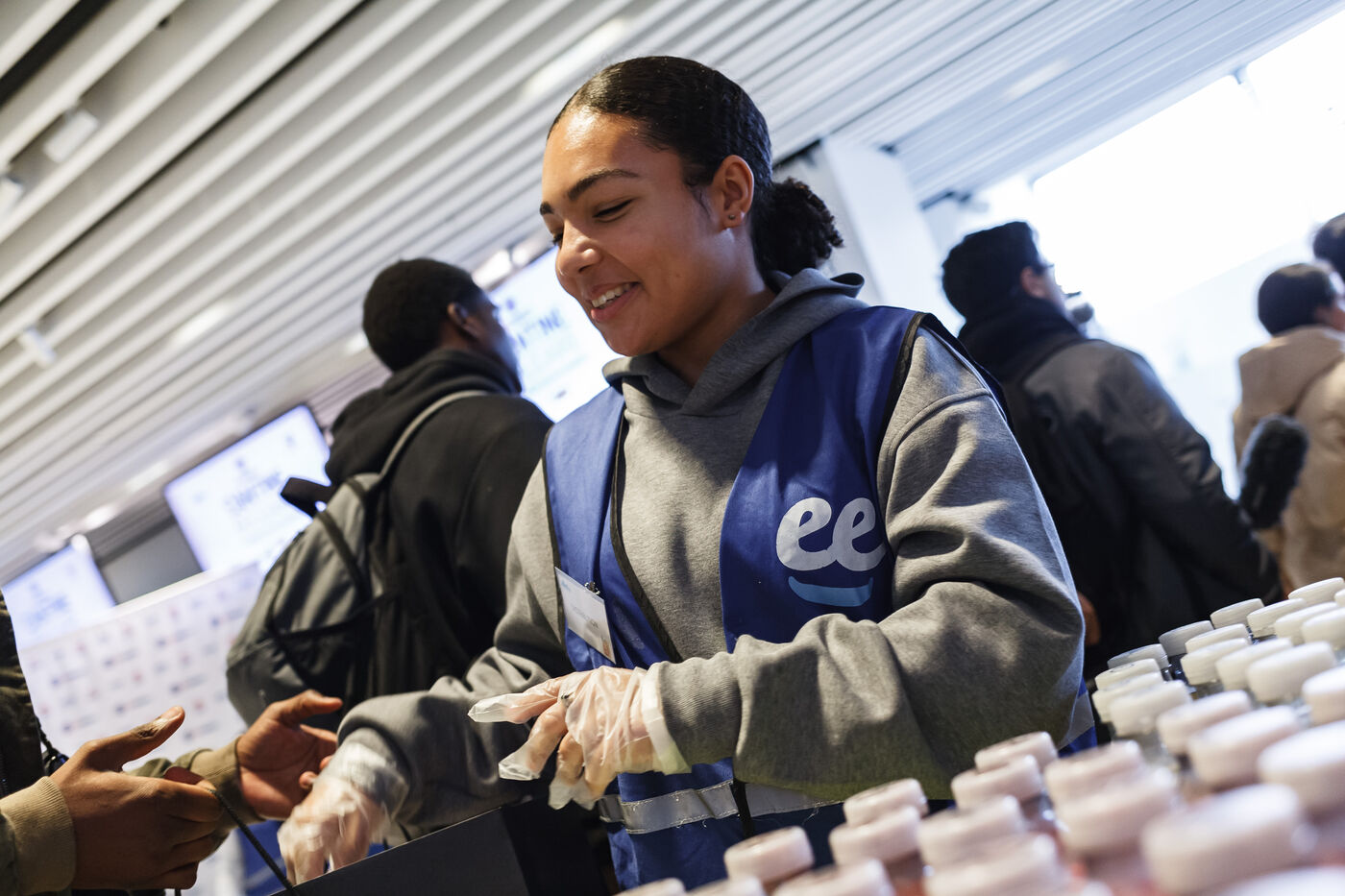 Aux côtés des 250 bénévoles mobilisés, Nasser Al-Khelaïfi, président du Paris Saint-Germain, ainsi que les athlètes Warren Zaïre-Emery (football) et Jannick Green (handball), ont participé à la distribution, témoignant de leur engagement auprès des jeunes.