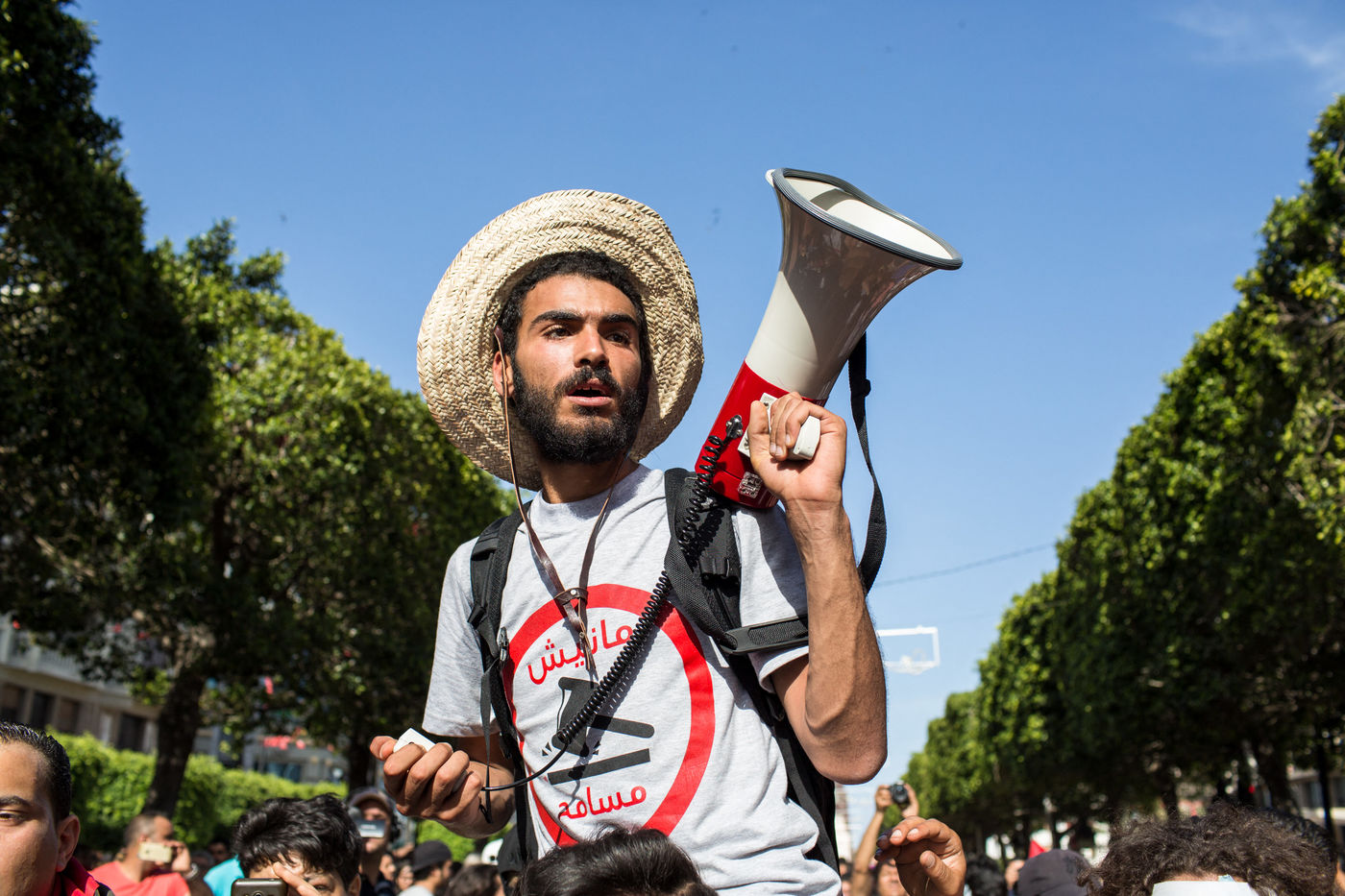 Protesters during a demonstration against the law project of economic and financial reconciliation proposed by the president Beji Caid Essebsi.