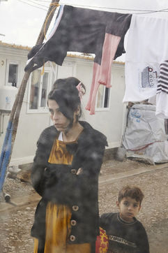 The cars filled with civilians drive towards the impossible mountain of Sinjar, the place of strength and identity of these peaceful people of Mesopotamia. The footsteps of the tired children,the weakened grandparents,They are led like beasts behind the walls of the central administration. The doors close. Breasfed babies are tornaway from the mothers and placed in vans, which drive off, disappearing for ever.