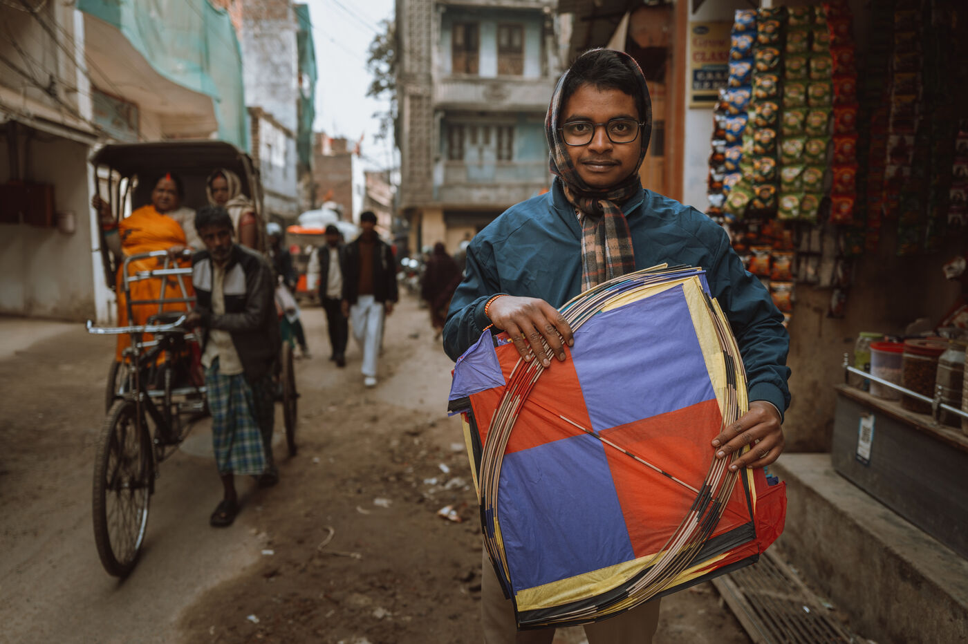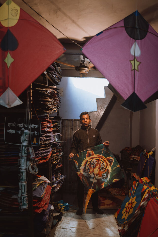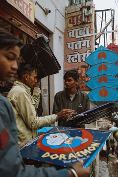 Autour d’eux, les adultes préservent la tradition. Les artisans fabriquent les cerfs-volants selon des techniques transmises de génération en génération, les commerçants guident les jeunes acheteurs parmi les formes et les matériaux, et les familles se rassemblent sur les toits pour partager nourriture, récits et conseils. À Varanasi, Makar Sankranti devient un moment où toute la ville lève les yeux vers le ciel : un ciel dense et vibrant qui reflète une identité culturelle.