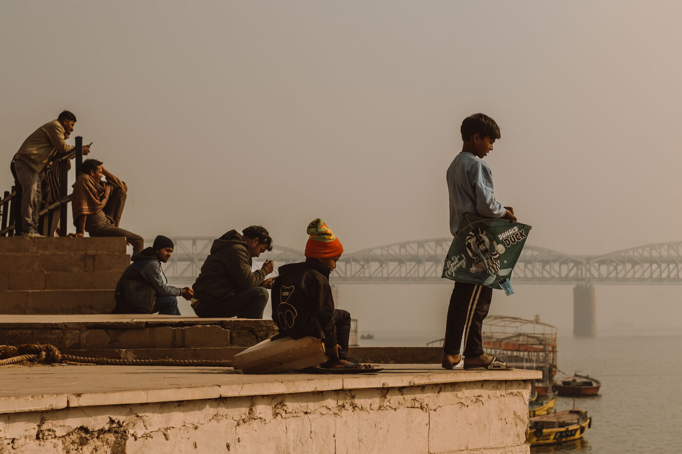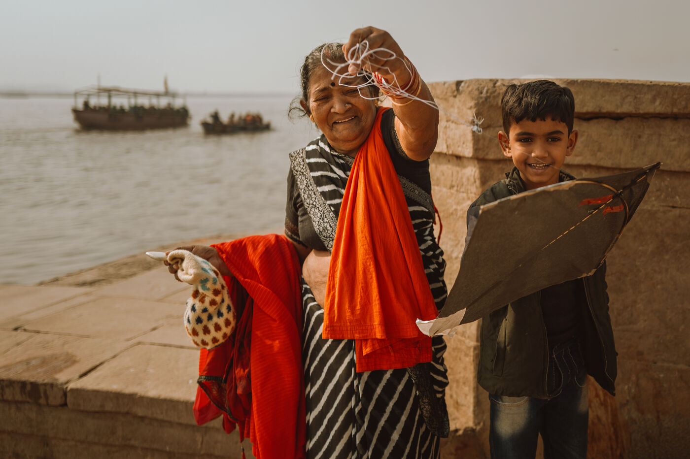 À Varanasi, cette atmosphère devient encore plus intense. La ville sacrée, avec ses ruelles étroites et ses toits dominant le Gange, vit Makar Sankranti comme un rituel collectif mêlant dévotion et jeu. Les familles envahissent les échoppes des vieux quartiers, les enfants courent dans les ruelles avec leurs cerfs-volants fraîchement achetés, et les terrasses se transforment en postes d’observation où chacun étudie le vent. À l’aube, tandis que les ghats résonnent de prières, les garçons testent leurs lignes juste au-dessus du fleuve, affûtent le manjha et s’exercent aux mouvements rapides du poignet nécessaires aux combats.