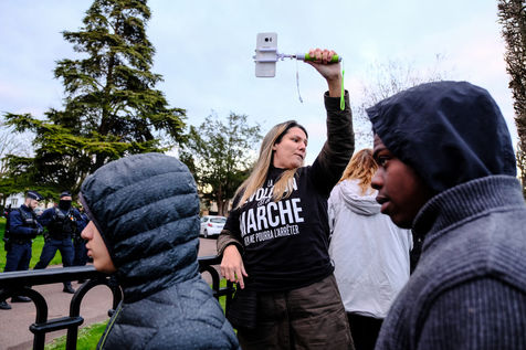 On the morning of 4 April 2018, at the request of the mayor of Aulnay-sous-Bois, Hadama Traoré, co-founder of the movement La Révolution est En Marche, was violently arrested at his home by 30 hooded and armed police officers in front of his wife and children.