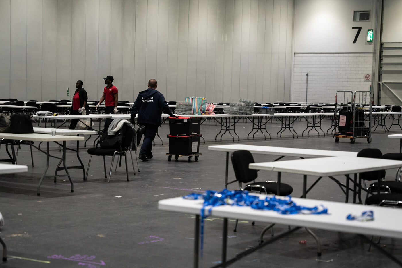 On the night of the UK general elections on 4 July 2024, I documented the vote count for the borough of Tower Hamlets at the ExCeL Centre in London. Normally hidden from public view, this behind-the-scenes process revealed both the logistical complexity and the emotional intensity of an election night. From the arrival of ballot bags to the official announcements, the space filled with staff, party members, journalists and candidates — all navigating anticipation, fatigue, and tension. This series offers a visual record of that long night, where democracy is measured one paper at a time.