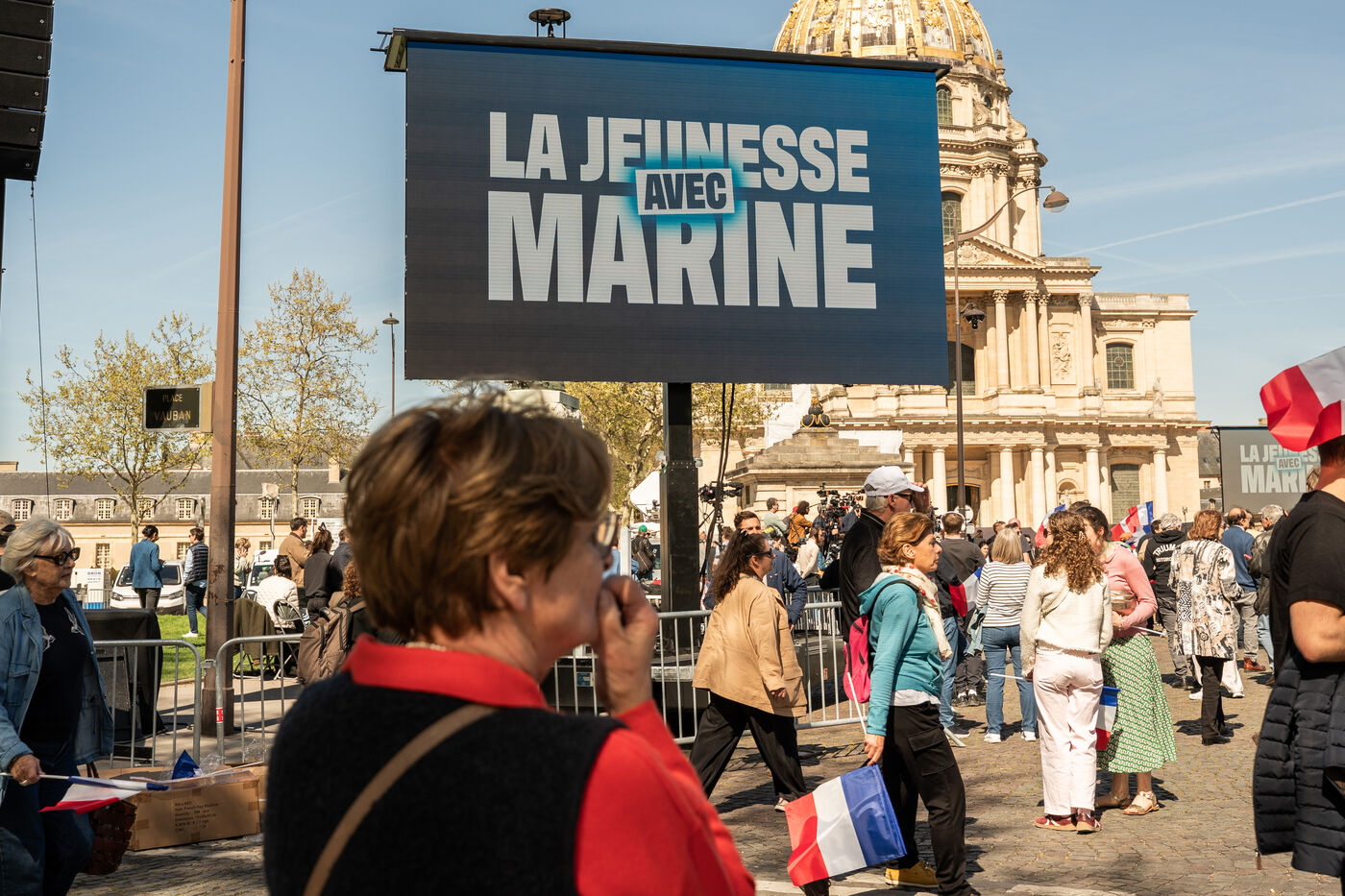 On April 6 2025, the far right party Rassemblement National held a rally at Place Vauban in Paris in response to the sentencing of Marine Le Pen to five years of ineligibility four years in prison, and a 100000 euro fine. Framed as a protest against an alleged attack on democracy the event brought together many RN supporters. Videos of international far-right figures were also broadcast in support.