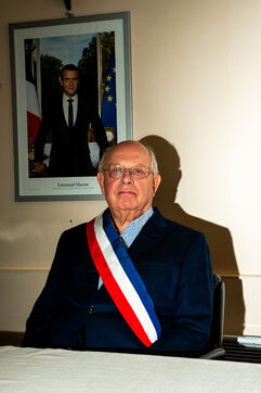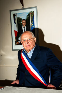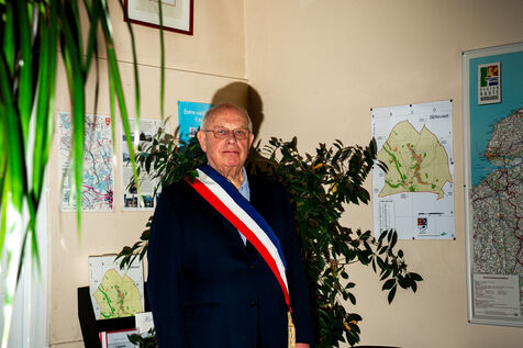 Portrait of François Letierce, mayor of Hébécourt (Somme), a rural village of 650 inhabitants, photographed inside the town hall on 23 April 2025. At 79, this entrepreneur and farmer, also involved in private education and managing a local water syndicate, is completing his fourth term. “I see it as a mission. You can’t just go to mass and not act.” After 43 years of municipal service, he is preparing to hand over: “You have to know when to step aside.”