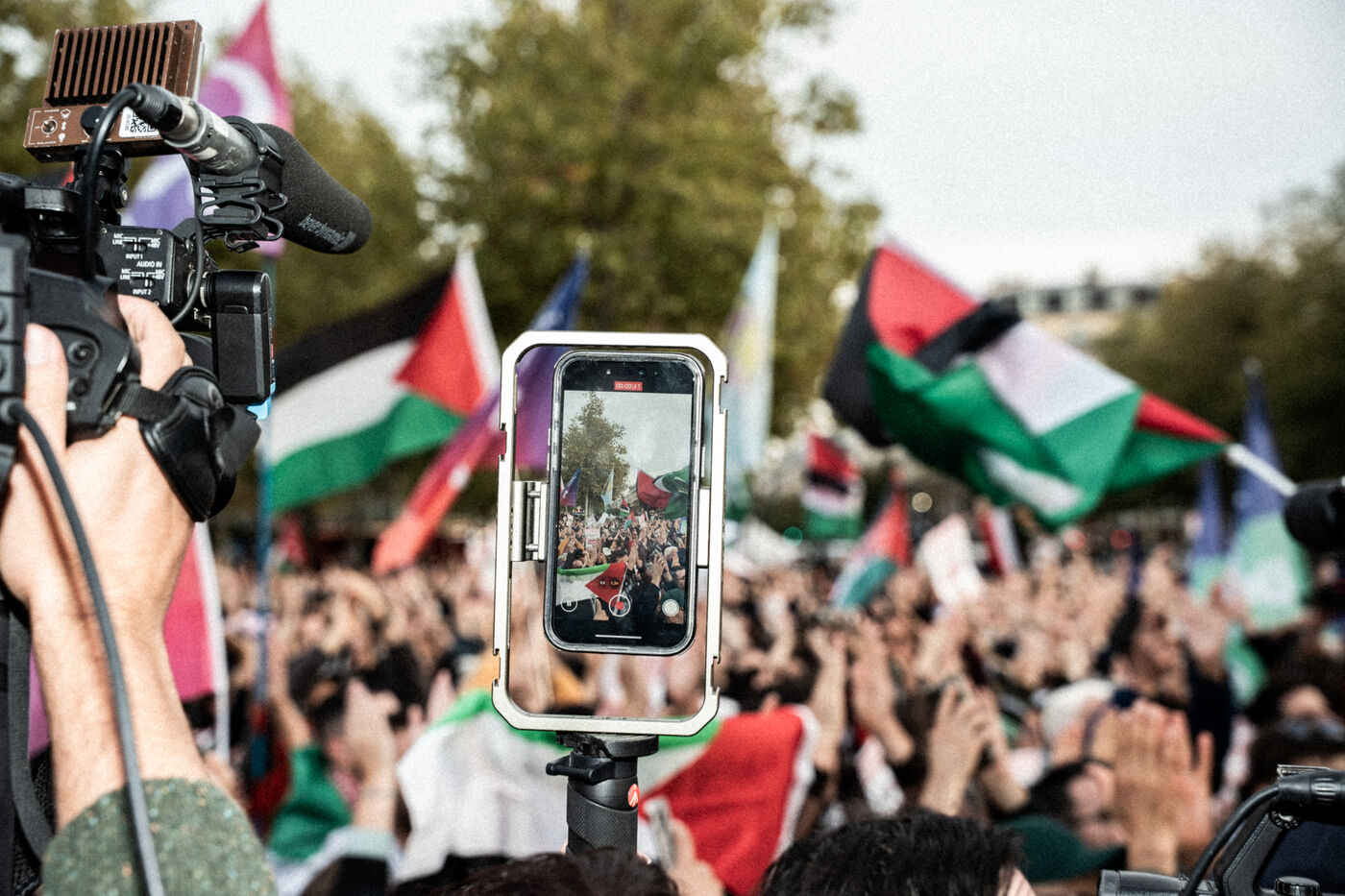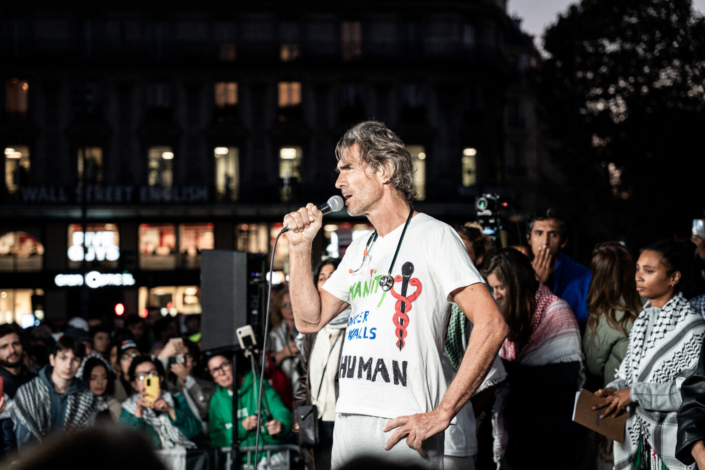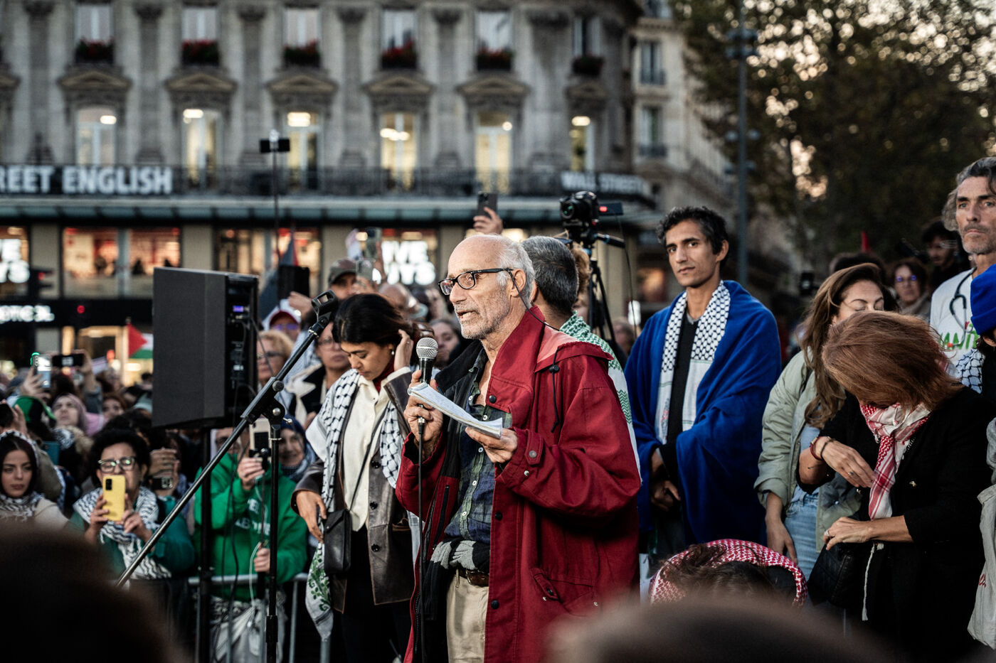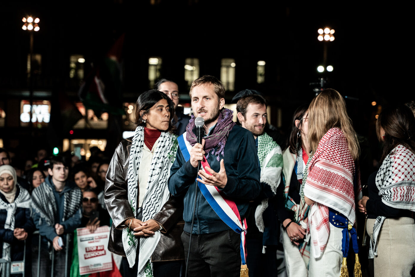 A gathering in support of Palestine took place at Place de la République following the liberation of all members of the Global Sumud Flotilla. The flotilla had attempted to break the blockade of Gaza before being illegally intercepted by the Israeli army, and its participants were detained. The rally brought together all French members of the flotilla, including members of the political party La France Insoumise, who had participated in the crew and related solidarity activities.