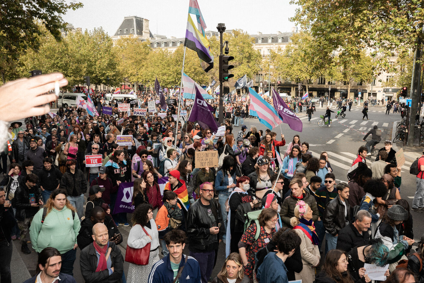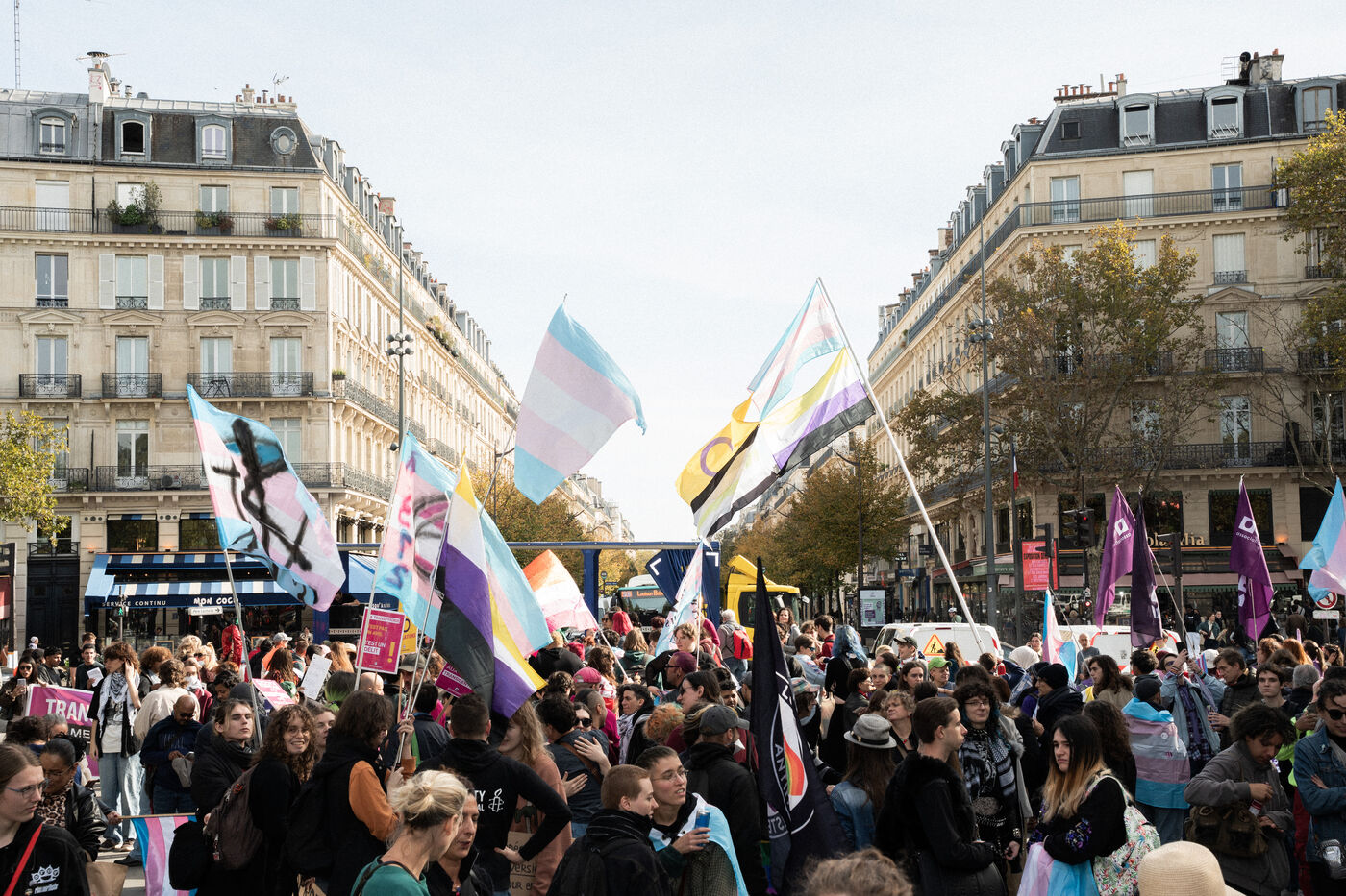 The annual ExisTransInter march took place in the streets of Paris, bringing together thousands of people demanding equality and justice for trans and intersex communities. Organised by associations including Acceptess T, OST and Out Trans, the demonstration called for self-determination, access to healthcare, and an end to transphobia. Between République and Bastille, chants, banners, and colourful expressions of pride and anger filled the streets.