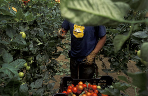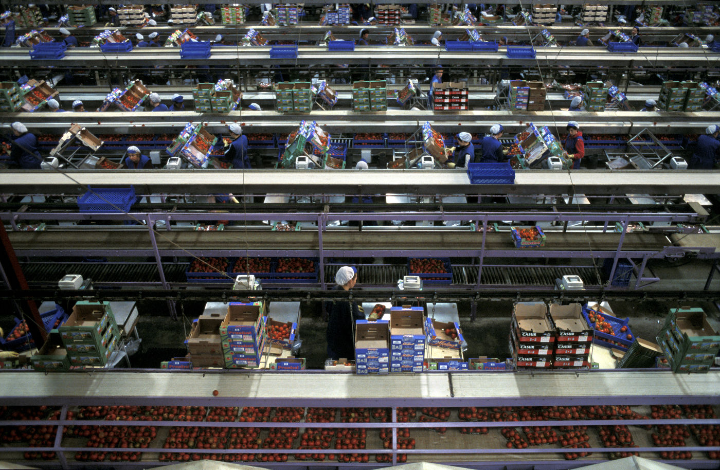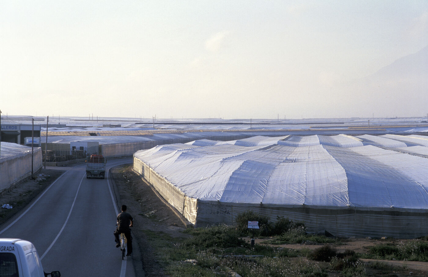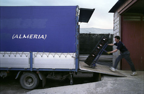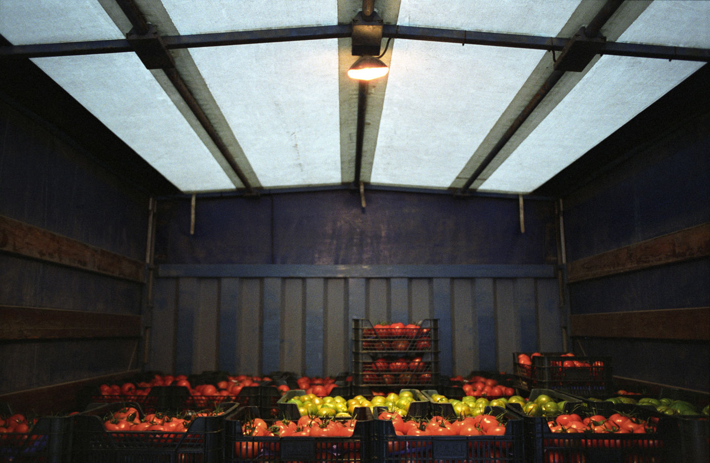 This work was born from the need to think about the consequences of certain consumerist attitudes, by backtracking along the trail of a tomato. The aim is to show an example of delocalisation in Europe. A modern slavery which some hail as an economic model. I ripped out the piece of carton with the address of the tomato I'd just bought and set off for Rungis. I showed my bit of cardboard to the truck driver. We didn't understand one another because of the language barrier, so he decided to call his boss in Spain who speaks French. It was a done deal, I was off to Almeria. I was thus allowed to satisfy my curiosity. I didn't hold out much hope for the quality of these imperishable tomatoes, nor for the factors that led them to be imported from so far away. The invitations turned quickly into threats when I asked to meet the workers. Bullied out of cities, it was possible to never see any, even though there are more than 20 000 of them who live and work in the 35 000 hectares of hot-houses which have colonised a former desert "the plastic sea". Today they are Moroccans without papers, but already mixed with a work force from Eastern Europe.