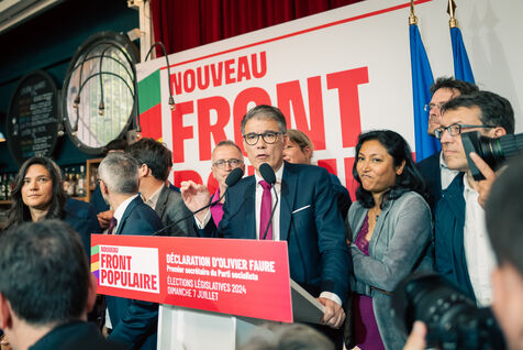 Au soir des résultats du second tour des législatives, les militants du Parti Socialiste se sont réunis à la Bellevilloise à Paris. Olivier Faure à pris la parole après l'annonce de la victoire du nouveau Front Populaire devant les militants PS très émus.