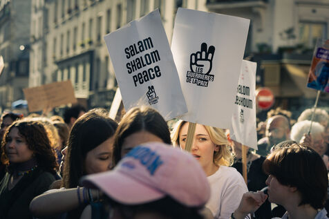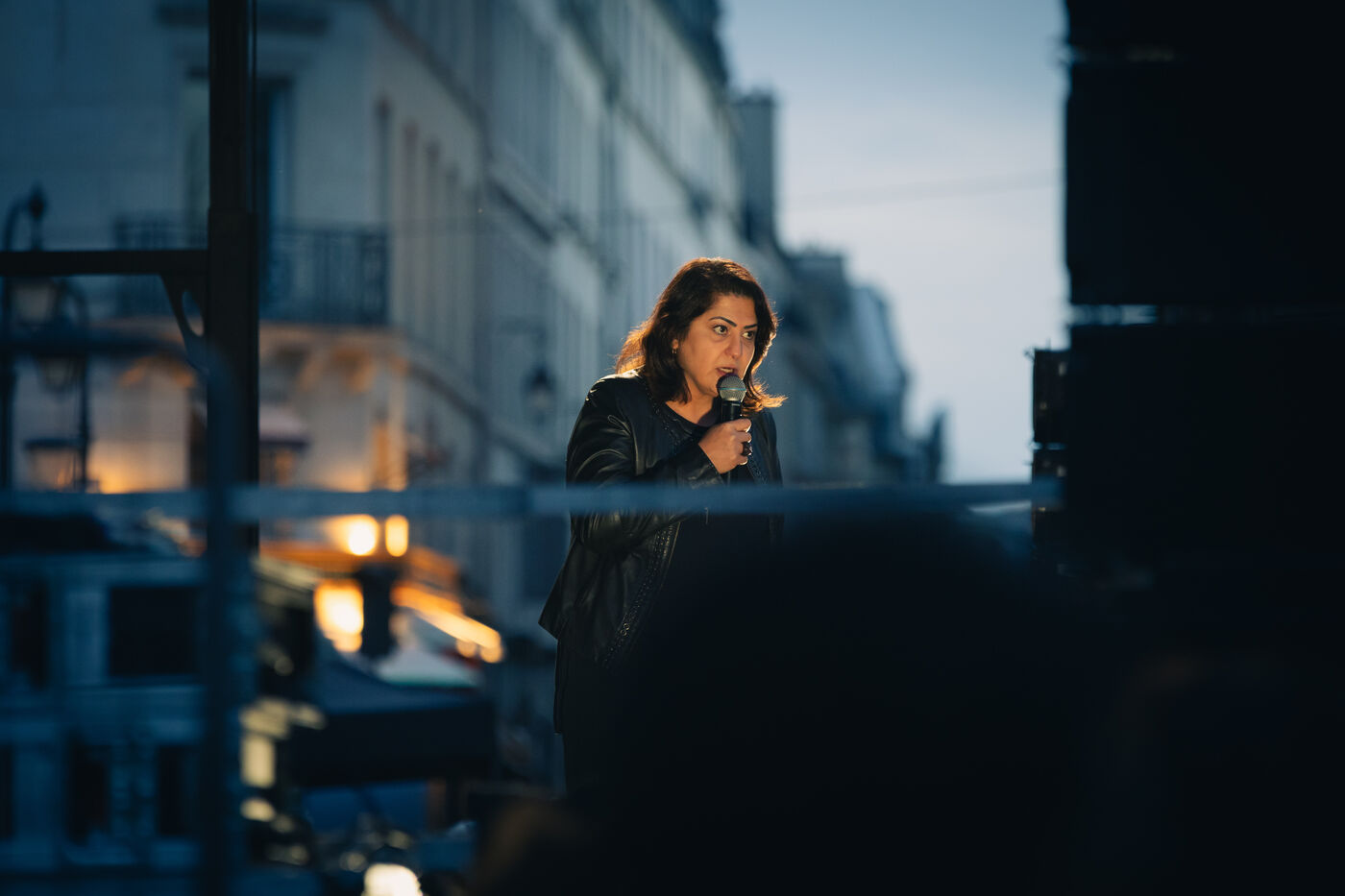 Following the march for women's rights on 8 March, the collective Les Guerrières de la Paix, led by Hanna Assouline, spoke in front of the Mairie de Paris Centre. Women from all over the world shared their stories and their struggles for peace, raising their voices against violence and injustice. It was a moment of sisterhood and commitment, at the crossroads of feminist and pacifist struggles.