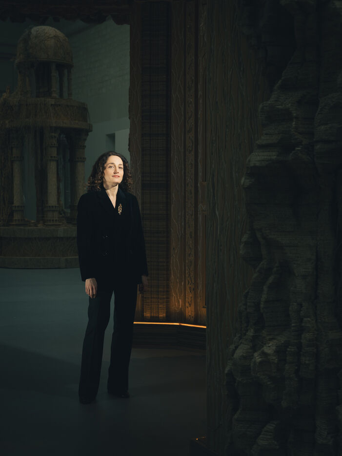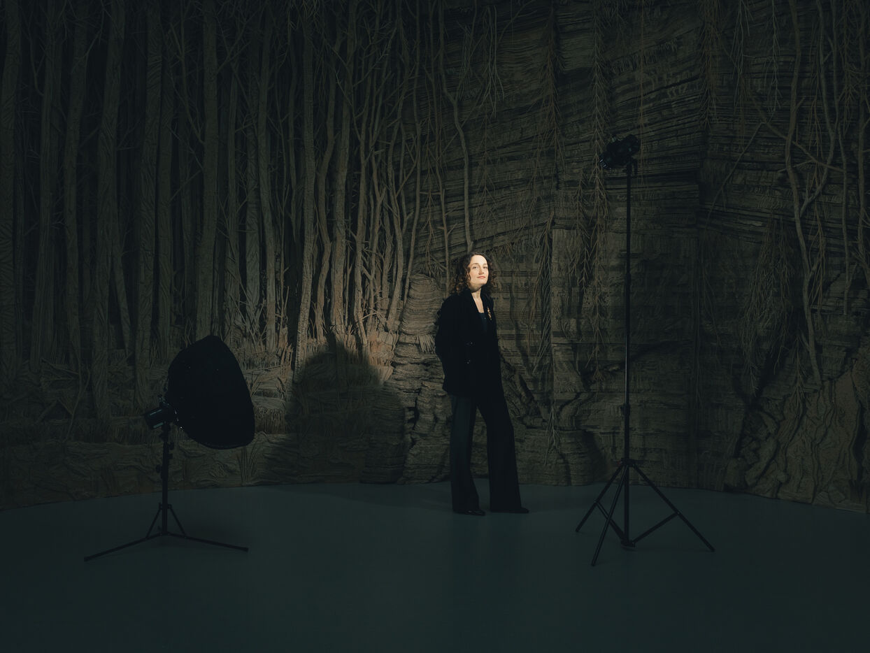 Portraits of Eva Jospin, a French visual artist whose work explores nature, grottoes and imaginary architectures. She is known for her monumental installations created using materials such as cardboard, wood and bronze. These portraits were made during her exhibition Grottesco at the Grand Palais.