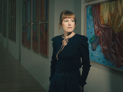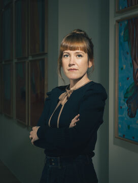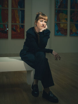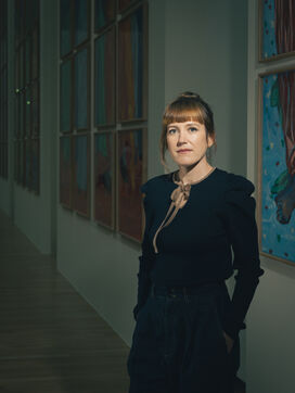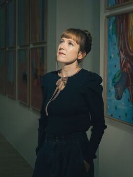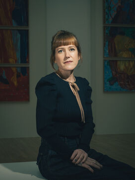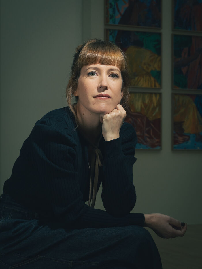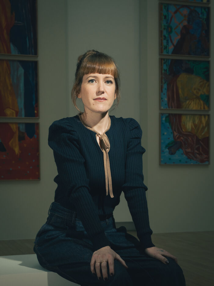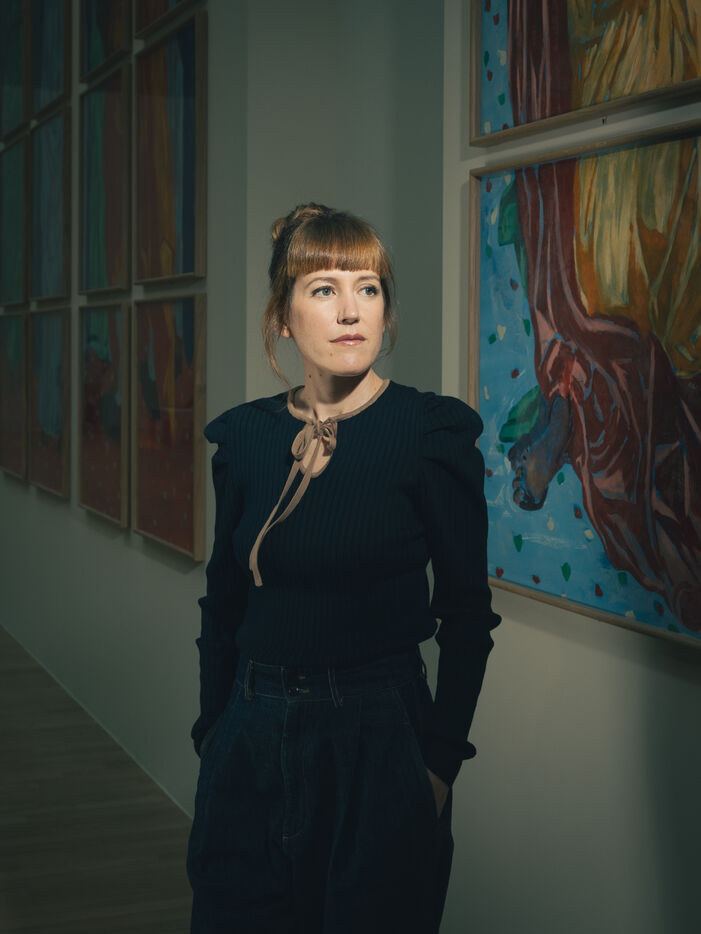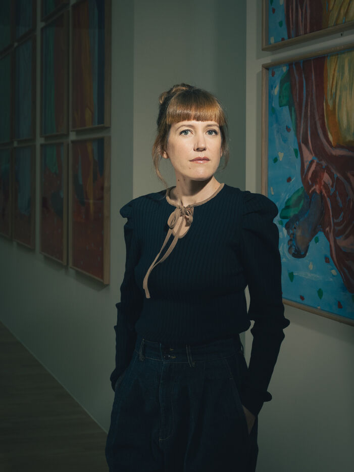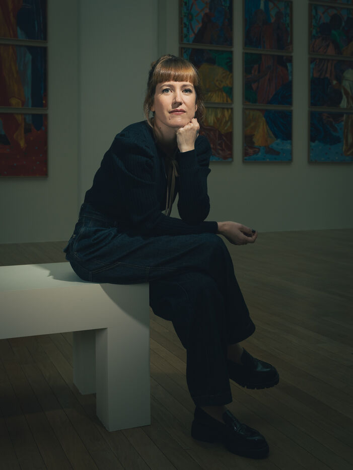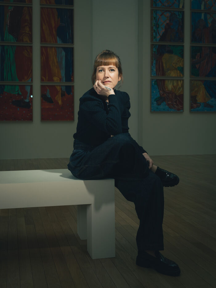 Paris, France – Portrait of artist Claire Tabouret during her exhibition at the Grand Palais. A major figure in contemporary figurative painting, Claire Tabouret explores themes of intimacy, memory, and human connections, with her work shown internationally. In 2024, she was commissioned to create contemporary stained glass for the chapels of Notre-Dame Cathedral in Paris.