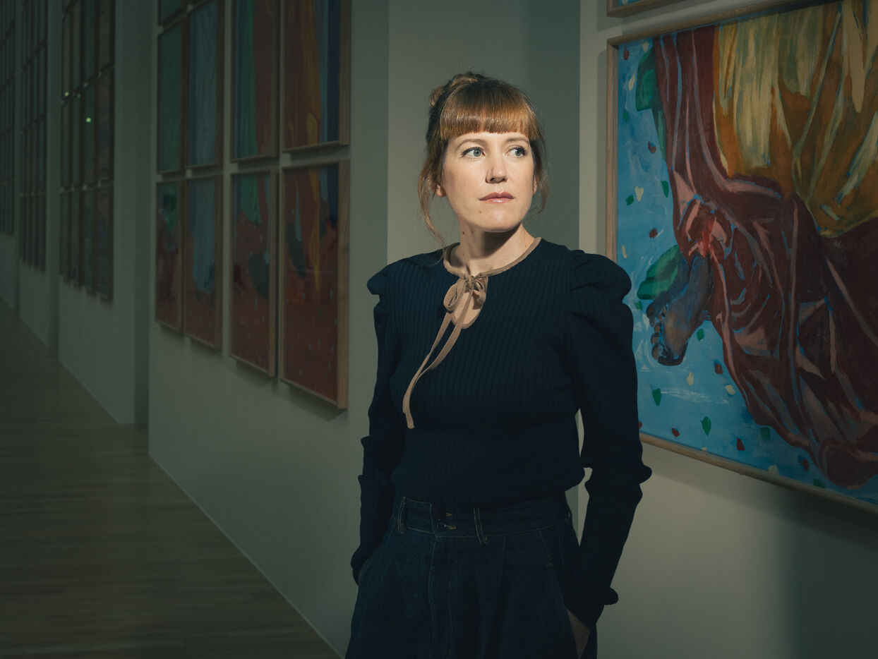 Paris, France – Portrait de l’artiste Claire Tabouret lors de son exposition au Grand Palais. Figure majeure de la peinture figurative contemporaine, Claire Tabouret explore l’intime, la mémoire et les liens humains, avec une œuvre exposée à l’international. En 2024, elle a été choisie pour réaliser des vitraux contemporains pour les chapelles de la cathédrale Notre-Dame de Paris.