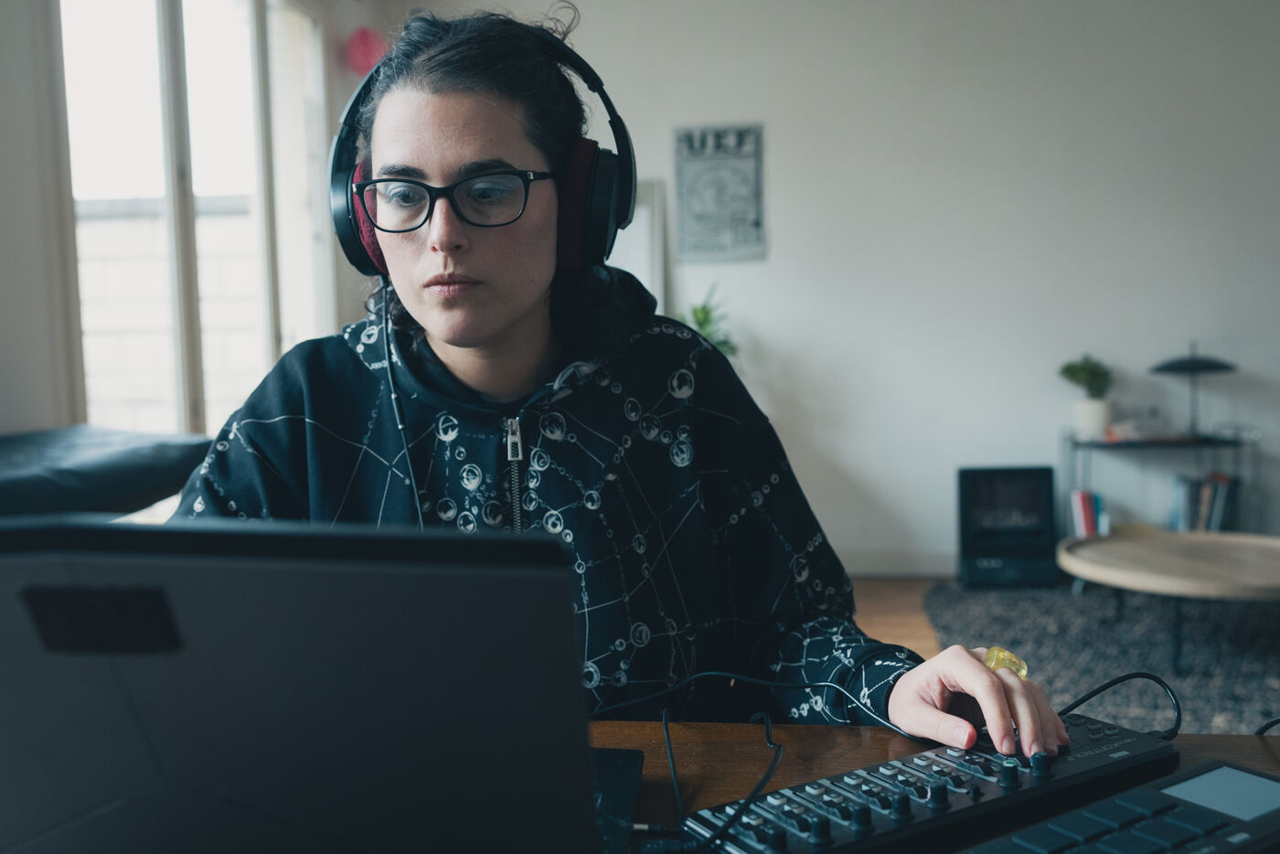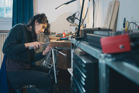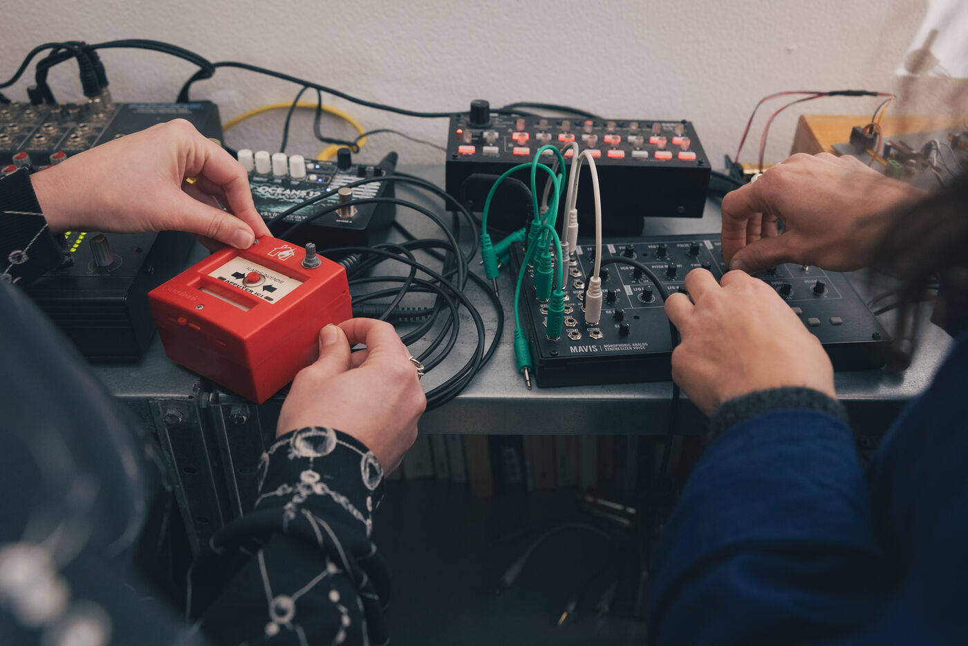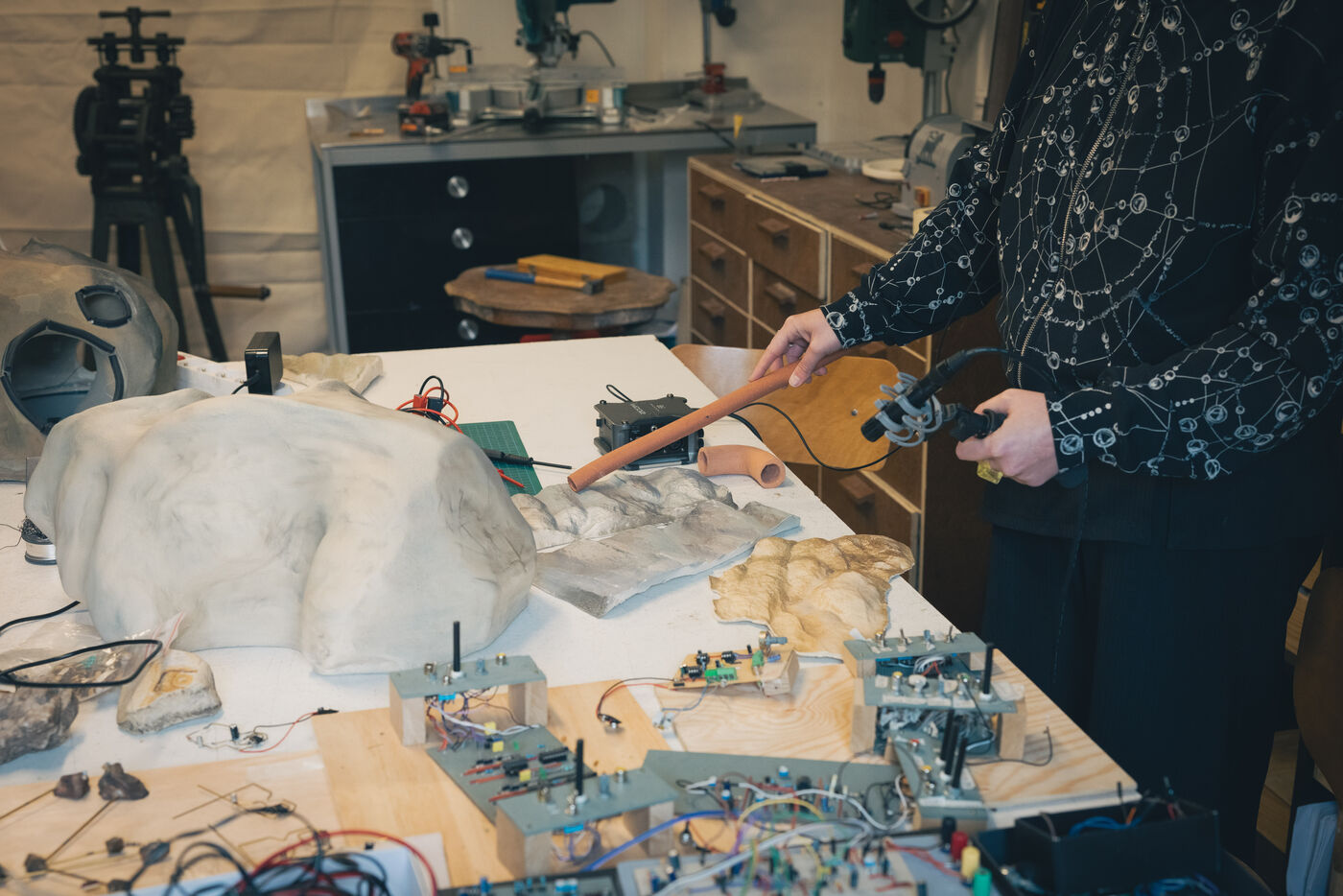 Paris, France – Portrait of artists Sonia Saroya and Fanny Testas during their Le sable se caractérise par sa capacité à s’écouler installation. Visual and sound artists Sonia Saroya (born 1993) and Fanny Testas (born 1994), based in Aubervilliers, work at the intersection of sculpture, sound and technology, exploring geological, ecological and material narratives through installations that merge documentary investigation and poetic drift, presented in exhibitions and residencies supported by FoRTE and cultural institutions.