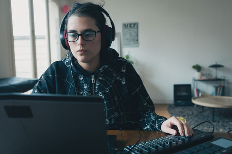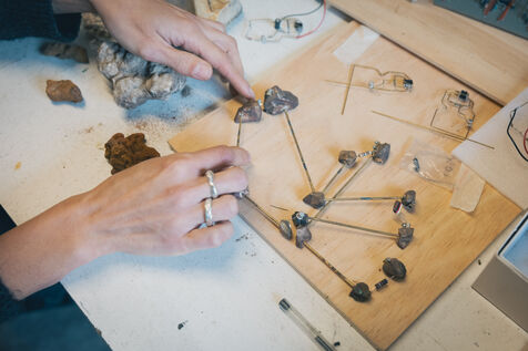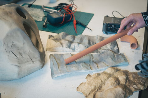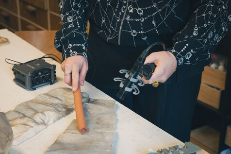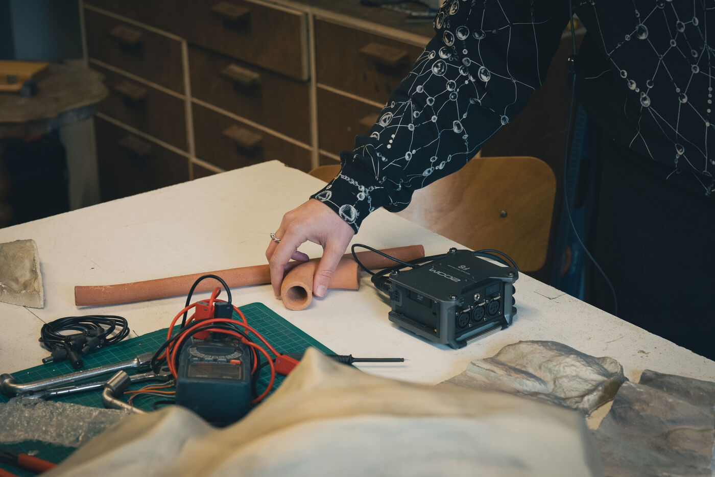 Paris, France – Portrait des artistes Sonia Saroya et Fanny Testas lors de leur installation Le sable se caractérise par sa capacité à s’écouler. Artistes visuelles et sonores basées à Aubervilliers, Sonia Saroya (née en 1993) et Fanny Testas (née en 1994) mêlent sculpture, son et technologies dans des installations qui explorent des récits géologiques, écologiques et matériels à travers une enquête et une dérive poétique, présentées dans des expositions et résidences soutenues par FoRTE et des institutions culturelles.