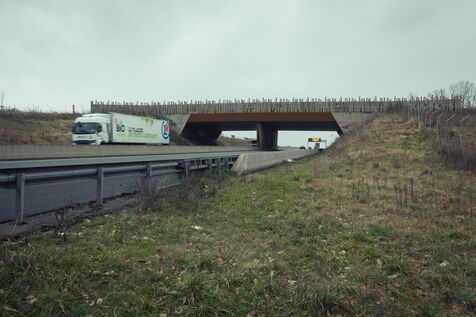 France. The transformation of the N1 into the A16 motorway included the construction of a wildlife crossing at Bois Carreau, designed to restore ecological continuity between the Carnelle and L’Isle-Adam forests. The overpass allows animals to safely cross the motorway, helping to preserve biodiversity and maintain the connection between natural habitats fragmented by infrastructure.