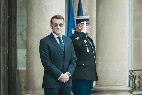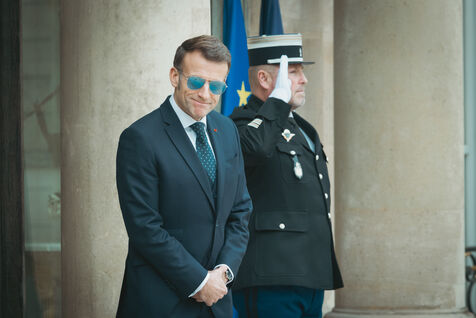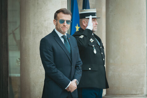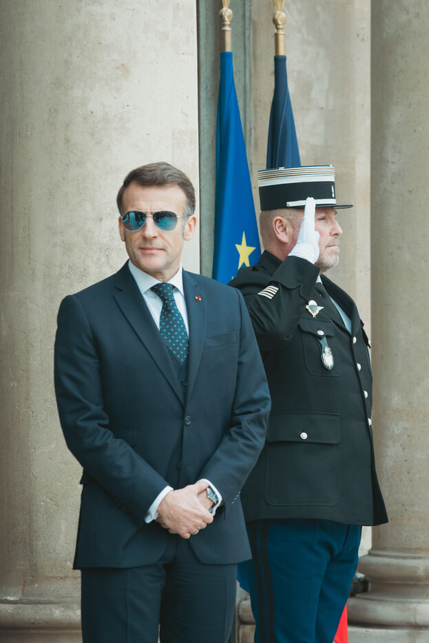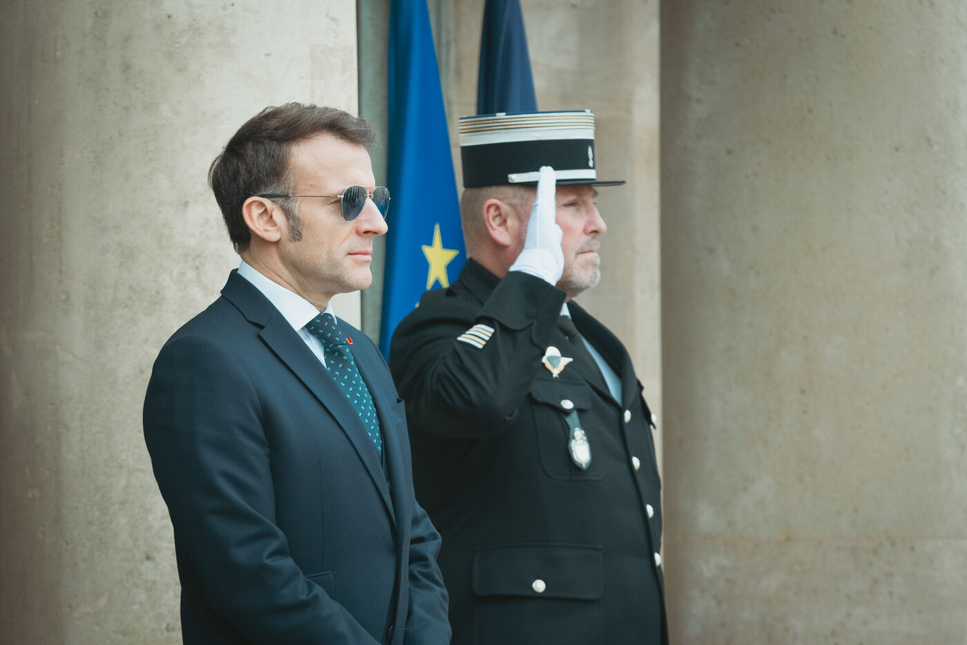 Le président français Emmanuel Macron s’exprime aux côtés de la Première ministre danoise Mette Frederiksen et du Premier ministre du Groenland Jens Frederik Nielsen lors d’une rencontre à Paris, déclarant que le récent bras de fer avec les États-Unis autour du Groenland constitue un « appel au réveil stratégique pour toute l’Europe » et réaffirmant la solidarité de la France. Paris, France.