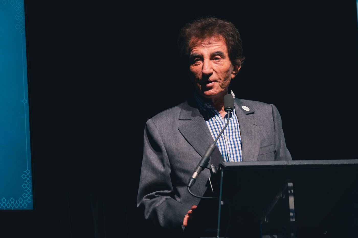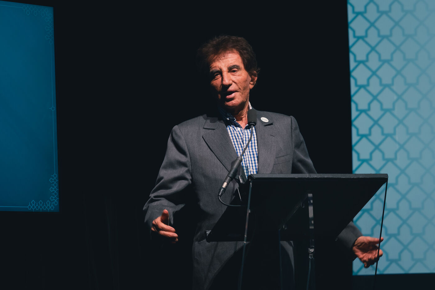 Jack Lang speaks at the podium of the Institut du Monde Arabe in Paris, France, on September 16, 2022, during a conference held at the institute.
