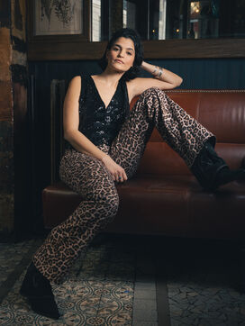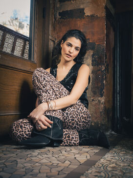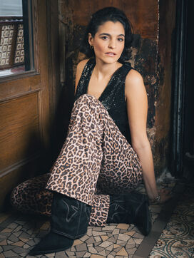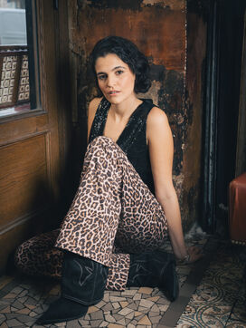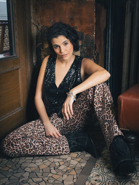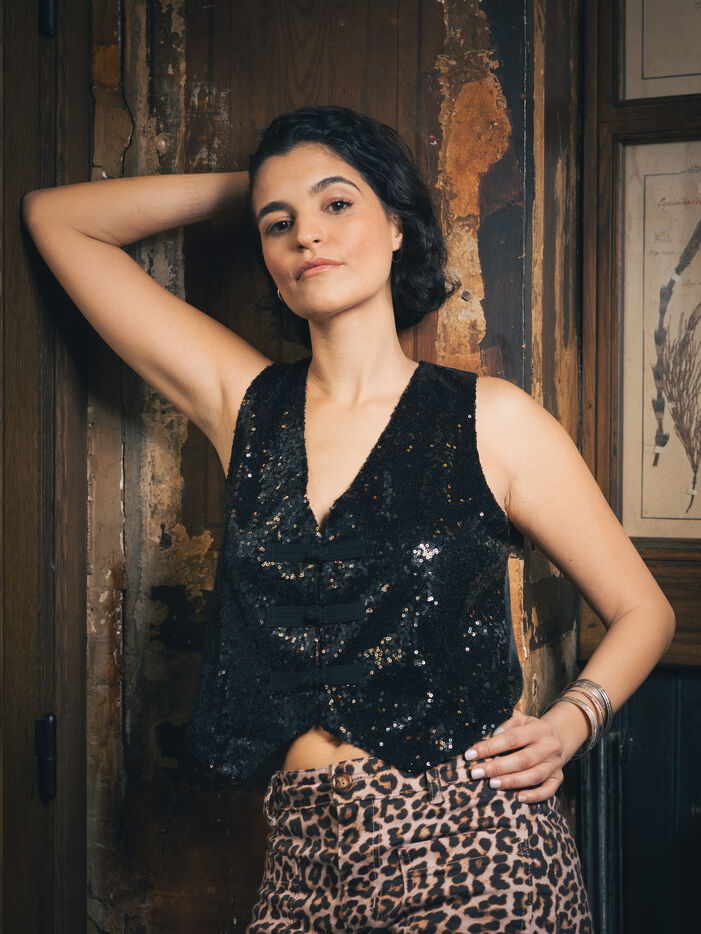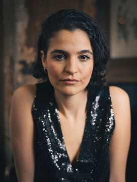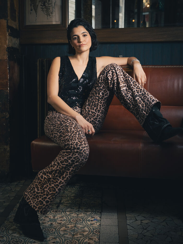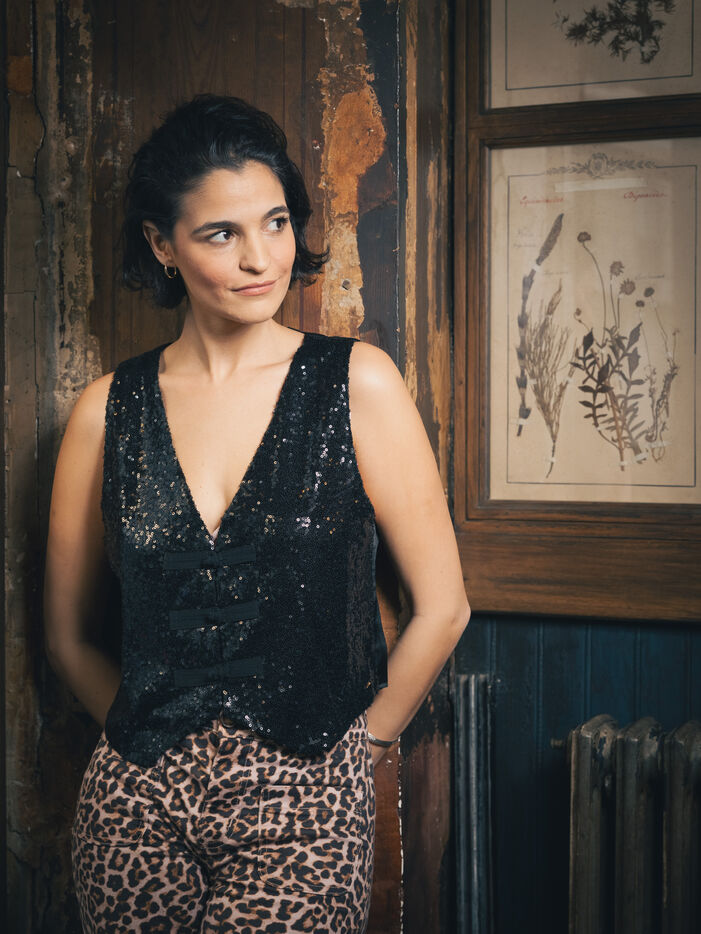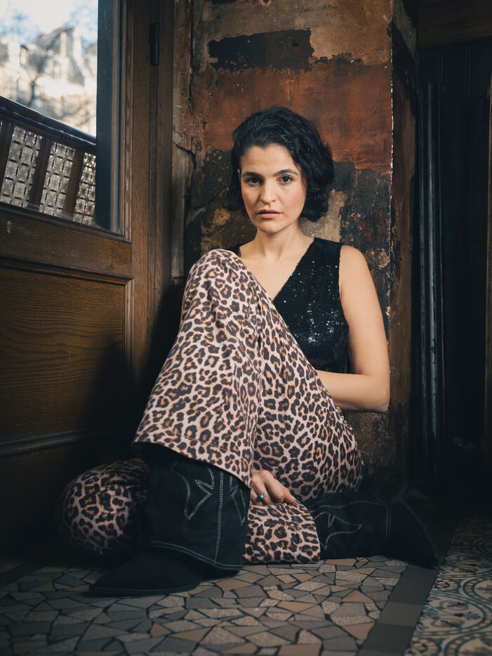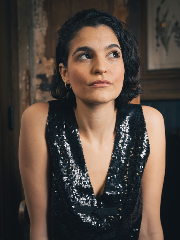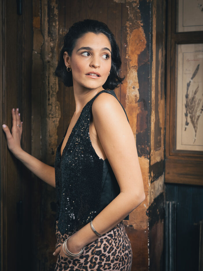 Portrait of French actress Eya Bouteraa in a bar near République, Paris, on February 17, 2026, shortly after the presentation of the film "À voix basse" at an international film festival.