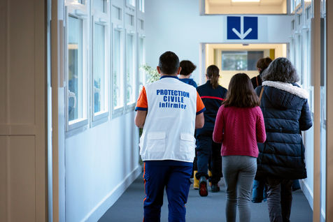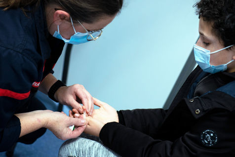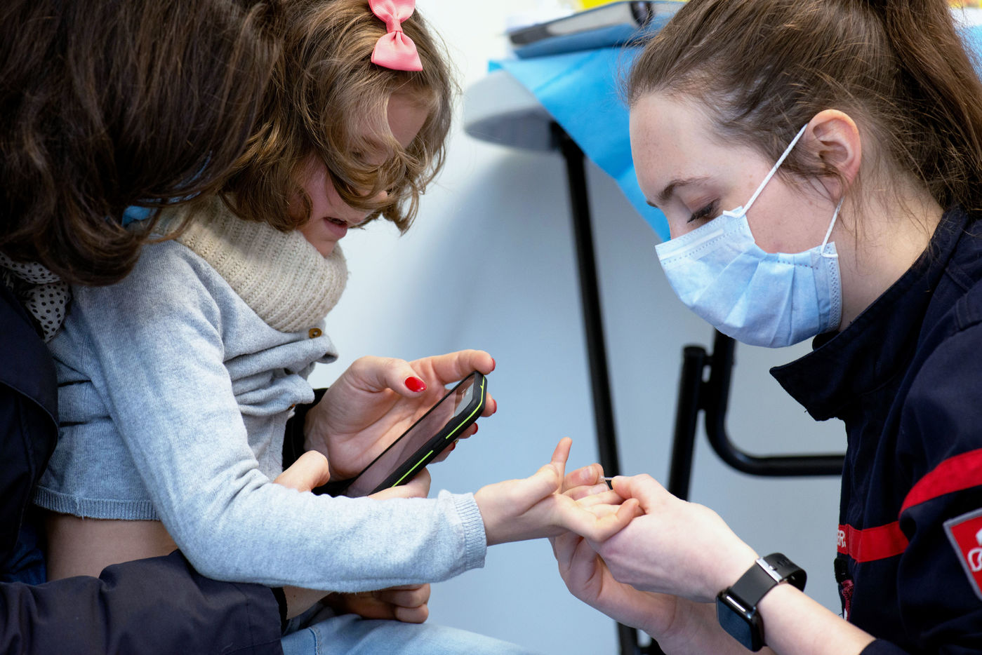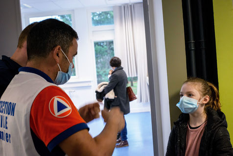 Vaccination des enfants de 5 à 11 ans contre le Covid 19, dans un centre de vaccination en Bretagne, encadrée par la protection civile des Côtes d'Armor.
